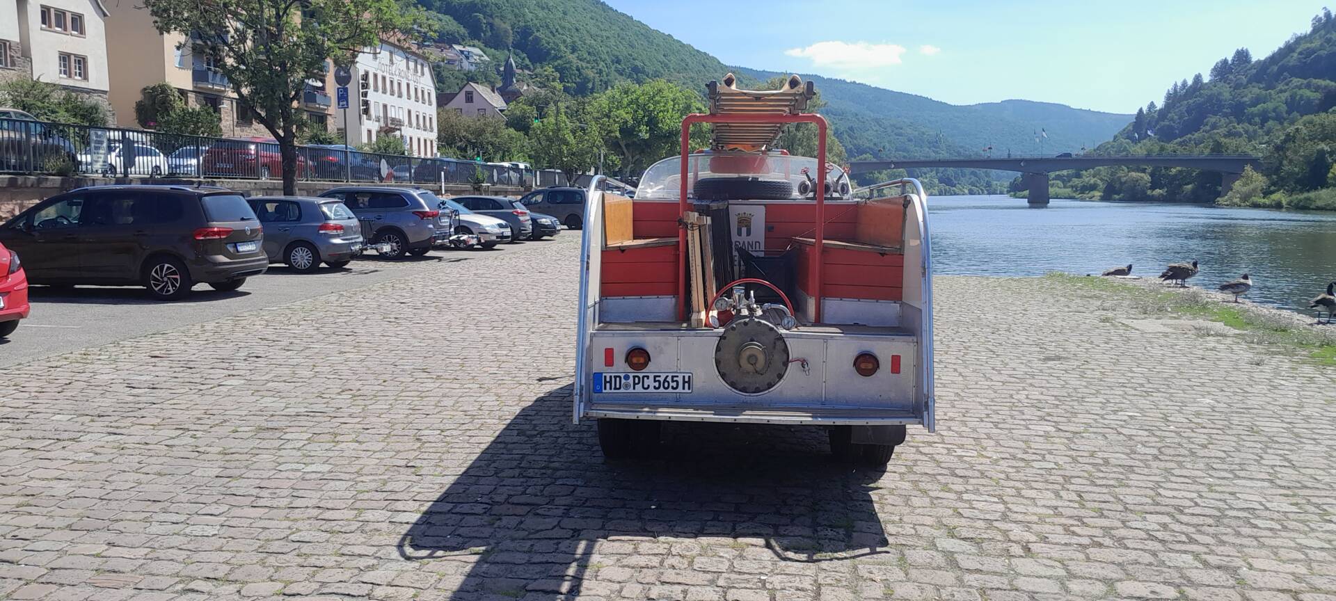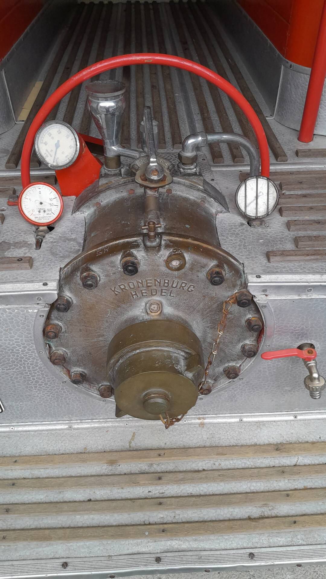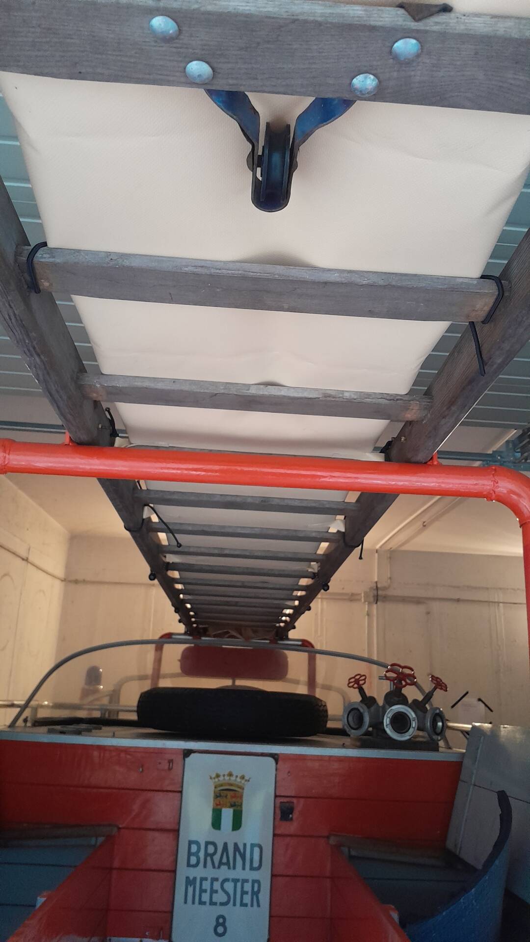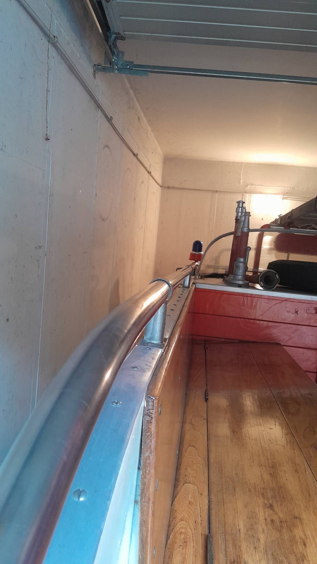 · Blaulicht und zwei unterschiedliche Sirenen sowie original Feuerwehrschläuche, Leiter und Spritzen sind an Bord.
