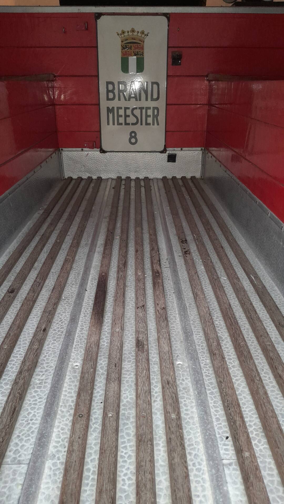 Der hintere Holzaufbau ist mit Blech beplankt.