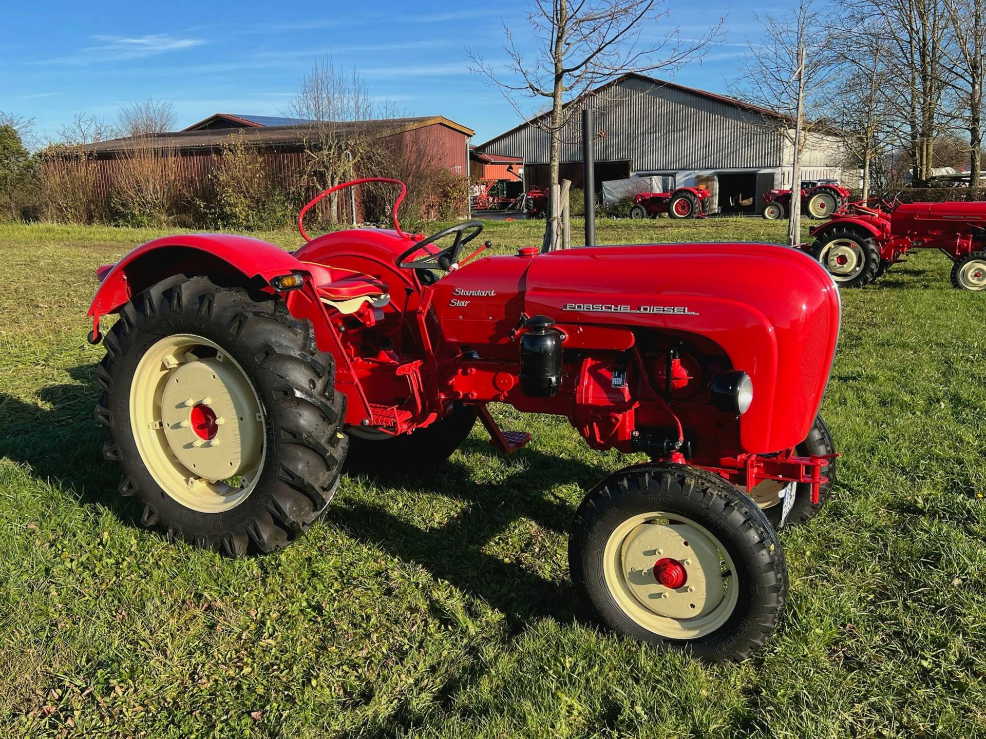 ✨ Highlights Der Porsche Standard Star 238 aus dem Baujahr 1962 verkörpert die klare Linie und technische Robustheit der frühen Porsche-Traktoren. Ausgestattet mit einem luftgekühlten Zweizylinder-Dieselmotor und 19 kW Leistung, präsentiert sich dieses Exemplar nach einer umfassenden, professionellen Restaurierung sowohl technisch als auch optisch in sehr gutem Zustand. Das Fahrzeug ist mit Hydrauliksystem, Zapfwelle, Beifahrersitz und aktueller TÜV-Abnahme sowie Straßenzulassung ausgestattet. Ein aktuelles Wertgutachten liegt vor und bestätigt Originalität und Zustand. 🏛️ Allgemeines zum Fahrzeug / Modellhistorie Mit dem Standard Star 238 setzte Porsche in den frühen 1960er-Jahren einen selbstbewussten Akzent im Segment der leichten bis mittleren Schlepper. Die Porsche-Diesel-Modelle waren von Anfang an als zuverlässige und wartungsfreundliche Arbeitsgeräte konzipiert – gebaut für Generationen. Der Standard Star 238 knüpft an die Grundwerte der Marke an: robuste Konstruktion, einfache Bedienbarkeit und ein hohes Maß an technischer Alltagstauglichkeit. Unterschiedlichen Quellen zufolge zählt der Star 238 heute zu den gesuchteren Modellen der Porsche-Diesel-Baureihe, da er eine ideale Mischung aus Leistung, kompakten Abmessungen und Wartungsfreundlichkeit bietet. Die klare Formsprache – eine Reminiszenz an das Industrie-Design jener Epoche – sorgt dafür, dass dieser Traktor auch außerhalb des landwirtschaftlichen Umfelds als authentischer Klassiker wahrgenommen wird. Dieses Fahrzeug Das angebotene Exemplar wurde 1962 gefertigt und in den vergangenen Jahren einer vollständigen, fachgerechten Restaurierung unterzogen. Die Arbeiten umfassten sowohl die Technik als auch die Optik: Die Haube wurde sorgfältig aufgearbeitet, der gesamte Traktor fachmännisch neu lackiert und sämtliche Komponenten auf Funktion und Originalität geprüft. Der luftgekühlte Zweizylinder-Dieselmotor mit 19 kW wurde im Zuge der Restaurierung überholt, das Hydrauliksystem sowie die Zapfwelle auf aktuellen Stand gebracht. Auch der Beifahrersitz, bei Porsche-Traktoren dieser Baureihe keineswegs selbstverständlich, ist vorhanden und unterstreicht die praxisorientierte Ausstattung. Sämtliche Arbeiten wurden nachvollziehbar dokumentiert, was sich im aktuellen Wertgutachten widerspiegelt. Das Fahrzeug ist TÜV-geprüft, voll straßenzugelassen und wird mit vollständigen Papieren angeboten. Exterieur: Professionell lackiert, aufbereitete Haube, gepflegte Gesamterscheinung. Interieur: Praktische Ausstattung, Beifahrersitz, originale Instrumentierung. Technik: Überholter Motor, funktionsfähige Hydraulik, Zapfwelle, laufruhiger Antrieb. Historie: Laut Verkäufer Teil einer privaten Sammlung, regelmäßig gewartet und bewegt. Service/Dokumente: Restaurationsnachweise, aktuelles Wertgutachten, TÜV und Zulassung liegen vor. Zusammenfassung / Fazit Der Porsche Standard Star 238 ist mehr als nur ein Arbeitsgerät – er steht für den Anspruch, Technik und Langlebigkeit auf zeitlose Weise zu verbinden. Die fachgerechte Restaurierung und der dokumentierte Zustand heben dieses Exemplar deutlich von durchschnittlichen Angeboten ab. Für Sammler wie auch aktive Nutzer bietet dieser Traktor eine seltene Kombination aus Alltagstauglichkeit, Originalität und klassischem Design – ein authentischer Vertreter der Porsche-Diesel-Tradition, bereit für den nächsten Lebensabschnitt. Kommentar / persönlicher Eindruck Der Star 238 war in meiner Sammlung nie Dekoration, sondern verlässlicher Begleiter – regelmäßig gewartet, immer einsatzbereit und mit der Zeit fast so etwas wie ein Familienmitglied. Wer ihm ein neues Zuhause gibt, wird schnell spüren, wie viel Erfahrung und Substanz in diesem kompakten Klassiker steckt. Besichtigung nach Absprache möglich, auch eine Lieferung ist gern zu organisieren.