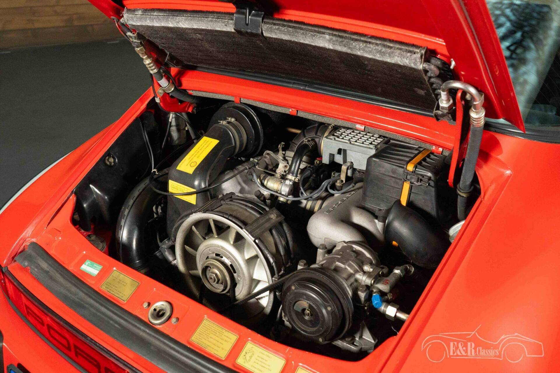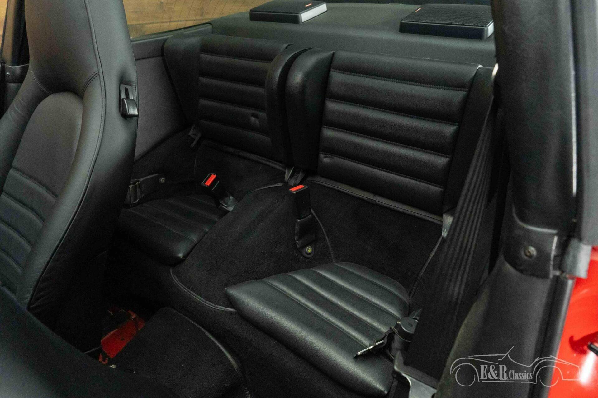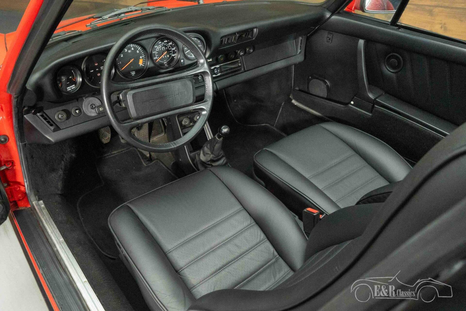 The exterior is characterized by striking red paintwork that contrasts beautifully with the black accents and the classic black Fuchs wheels. The wide hips and recognizable lines of the 911 are perfectly showcased in this version. The removable Targa roof allows you to switch from a coupe to an open-top driving experience in an instant. The interior is finished in stylish black and is in neat condition, featuring comfortable electrically adjustable seats and a clear dashboard fully focused on the driver. The combination of the red exterior and the black interior gives this Porsche a timeless and sporty appearance.