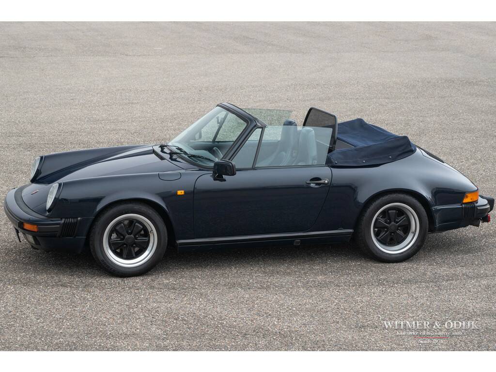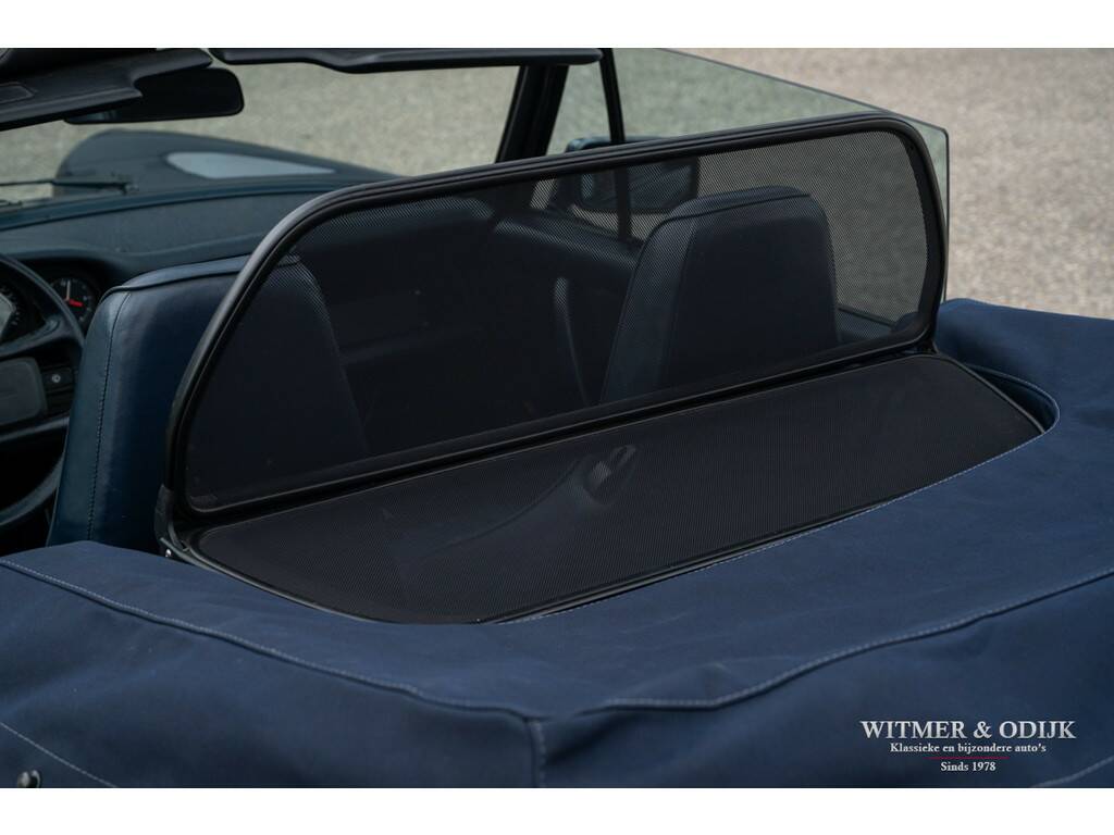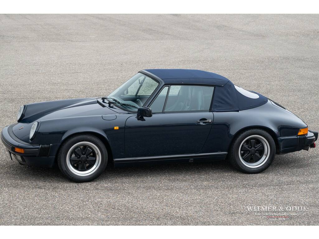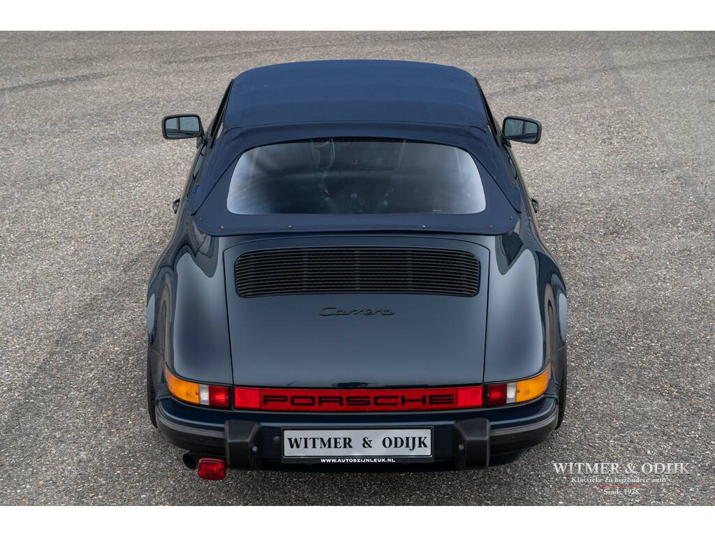 Misschien wel de ultieme klassieke 911, de 3.2 Carrera serie in de bijzonder fraaie cabriolet uitvoering. Net voordat Porsche enkele jaren later besluit het model bijna volledig te herzien ziet deze Carrera Cabriolet het levenslicht. Dit nadat men in Stuttgart inmiddels meer dan vijfentwintig jaar had gewerkt aan de perfectionering van de 911. Met de kap open de mooiste autobeleving op aarde…het karakteristieke motorgeluid achterin, de precieze besturing en het indrukwekkende koppel wat u open rijdend aanzienlijk beter ervaart dan gesloten. Weinig auto's bieden zoveel plezier en zijn ook nog eens géén dief van uw portemonnee. Want als er iets waardevast is dan is het wel een luchtgekoelde Porsche. De relatief zeldzame cabriolet, uit een van de meest geliefde series 911, is dan het mooiste bezit. Het hier aangeboden exemplaar voldoet aan alle voorwaarden waar een verantwoorde investering aan moet voldoen. Deze 911 3.2 Carrera is origineel en schadevrij, bijzonder fraai in de foutloze diep donkerblauwe lak, keurige onbeschadigde cabriokap die zich volledig elektrisch laat bedienen en voorzien van 16 inch Fuchs velgen met uitstekende Bridgestone banden. Optioneel zijn verder nog elektrische stoelbediening en aircoconditioning aanwezig De carrosserie is echt roestvrij en geheel onbeschadigd, zelfs geen steenslag op te vinden. Uitstekend rijdend, soepel schakelend en een motor waar geen oliedruppels aan hangen. Compleet onderhoudsdossier en origineel serviceboekje aanwezig, zeer goed onderhouden. Ook deze 911 leveren wij rijklaar af inclusief nieuwe APK, garantie en onderhoudsbeurt.