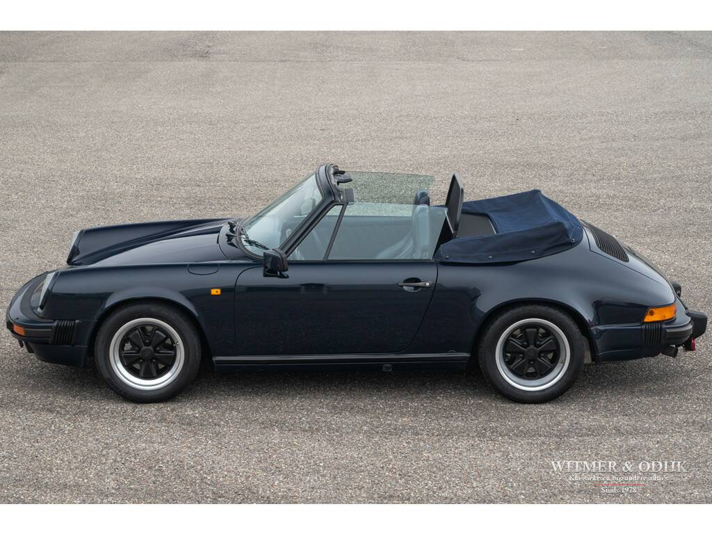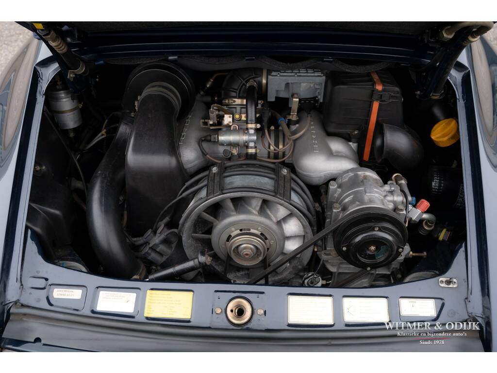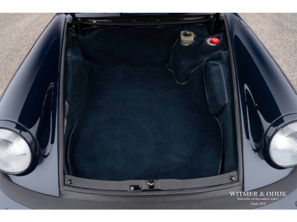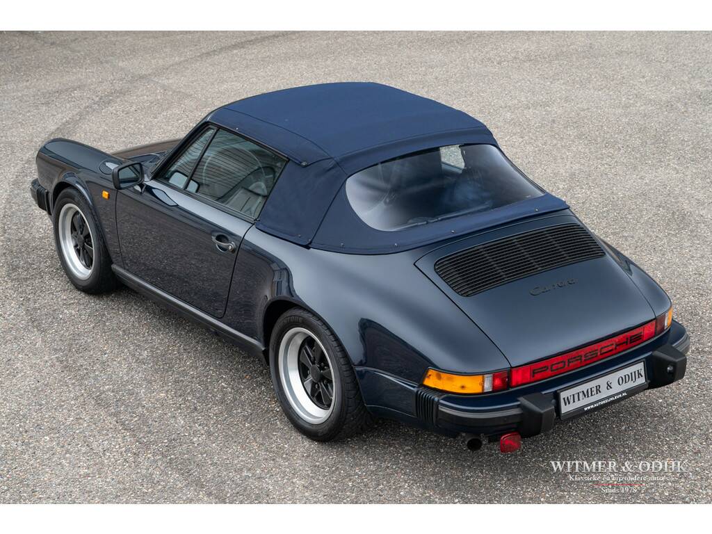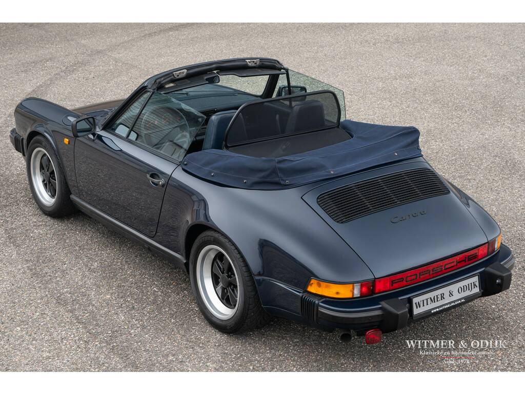 Misschien wel de ultieme klassieke 911, de 3.2 Carrera serie in de bijzonder fraaie cabriolet uitvoering. Net voordat Porsche enkele jaren later besluit het model bijna volledig te herzien ziet deze Carrera Cabriolet het levenslicht. Dit nadat men in Stuttgart inmiddels meer dan vijfentwintig jaar had gewerkt aan de perfectionering van de 911. Met de kap open de mooiste autobeleving op aarde…het karakteristieke motorgeluid achterin, de precieze besturing en het indrukwekkende koppel wat u open rijdend aanzienlijk beter ervaart dan gesloten. Weinig auto's bieden zoveel plezier en zijn ook nog eens géén dief van uw portemonnee. Want als er iets waardevast is dan is het wel een luchtgekoelde Porsche. De relatief zeldzame cabriolet, uit een van de meest geliefde series 911, is dan het mooiste bezit. Het hier aangeboden exemplaar voldoet aan alle voorwaarden waar een verantwoorde investering aan moet voldoen. Deze 911 3.2 Carrera is origineel en schadevrij, bijzonder fraai in de foutloze diep donkerblauwe lak, keurige onbeschadigde cabriokap die zich volledig elektrisch laat bedienen en voorzien van 16 inch Fuchs velgen met uitstekende Bridgestone banden. Optioneel zijn verder nog elektrische stoelbediening en aircoconditioning aanwezig De carrosserie is echt roestvrij en geheel onbeschadigd, zelfs geen steenslag op te vinden. Uitstekend rijdend, soepel schakelend en een motor waar geen oliedruppels aan hangen. Compleet onderhoudsdossier en origineel serviceboekje aanwezig, zeer goed onderhouden. Ook deze 911 leveren wij rijklaar af inclusief nieuwe APK, garantie en onderhoudsbeurt.