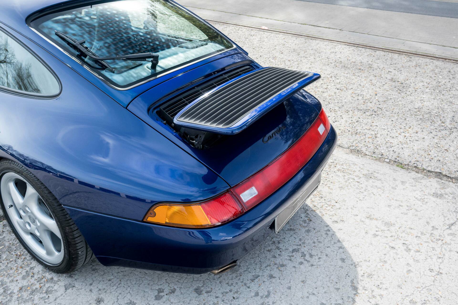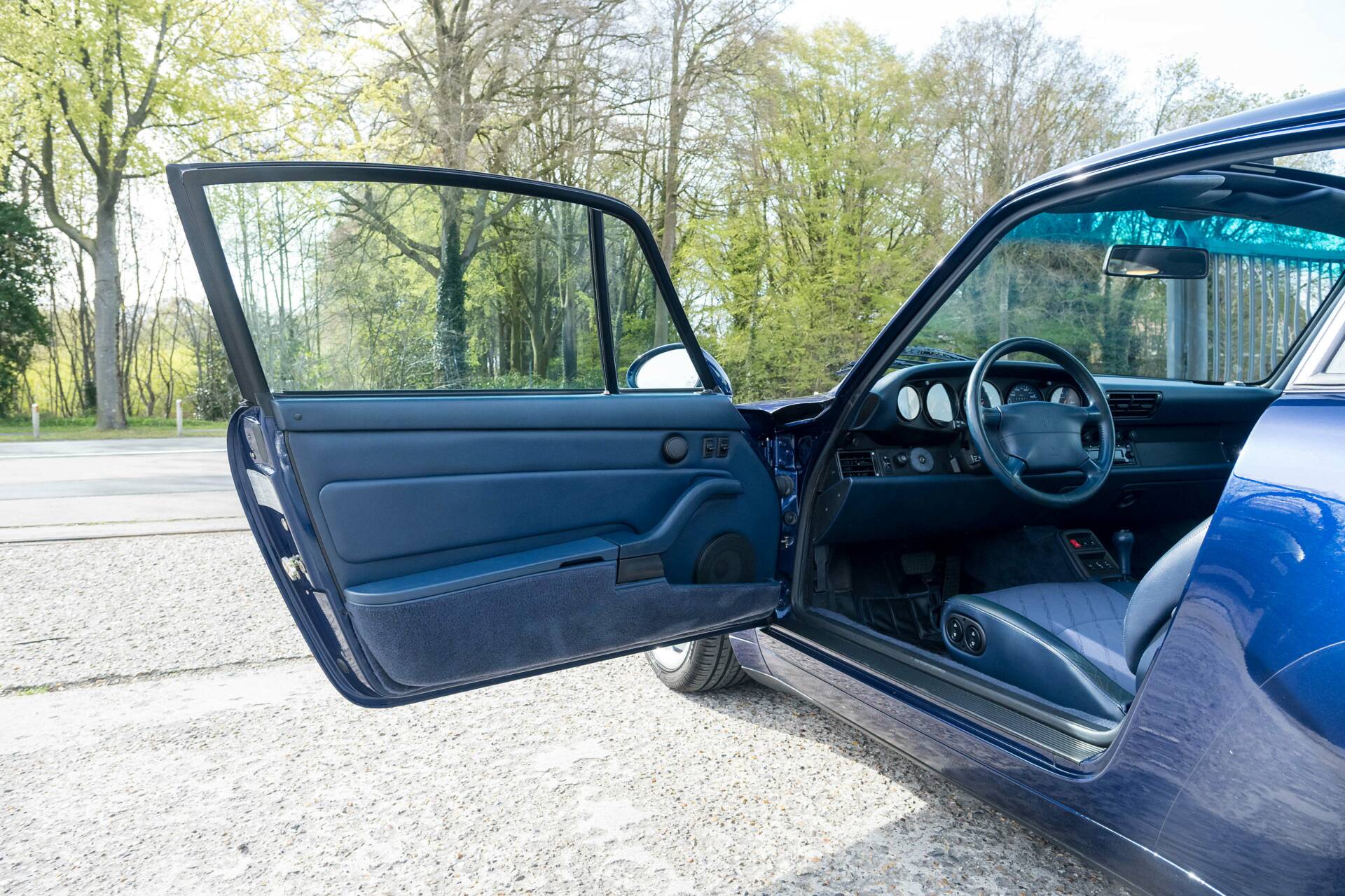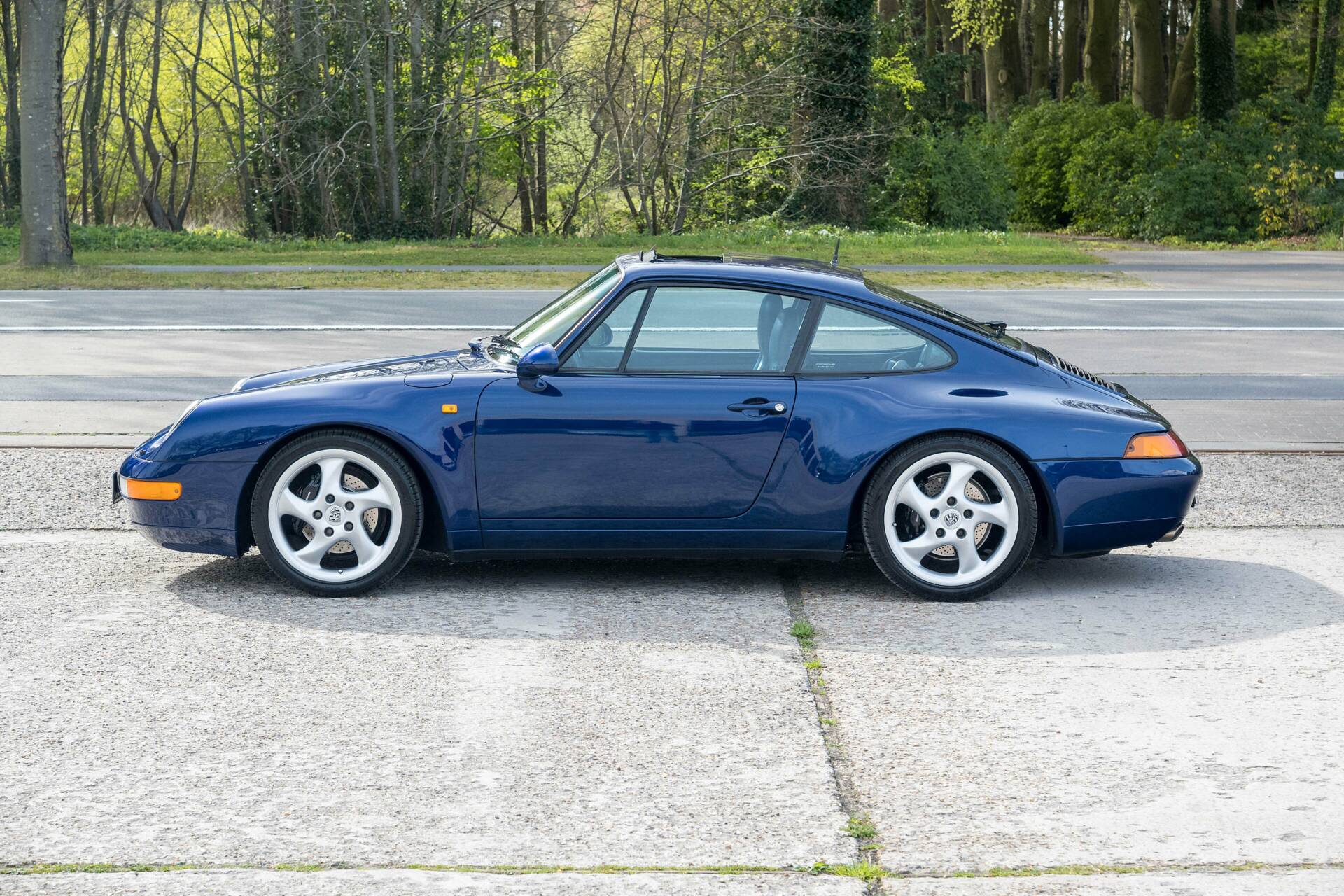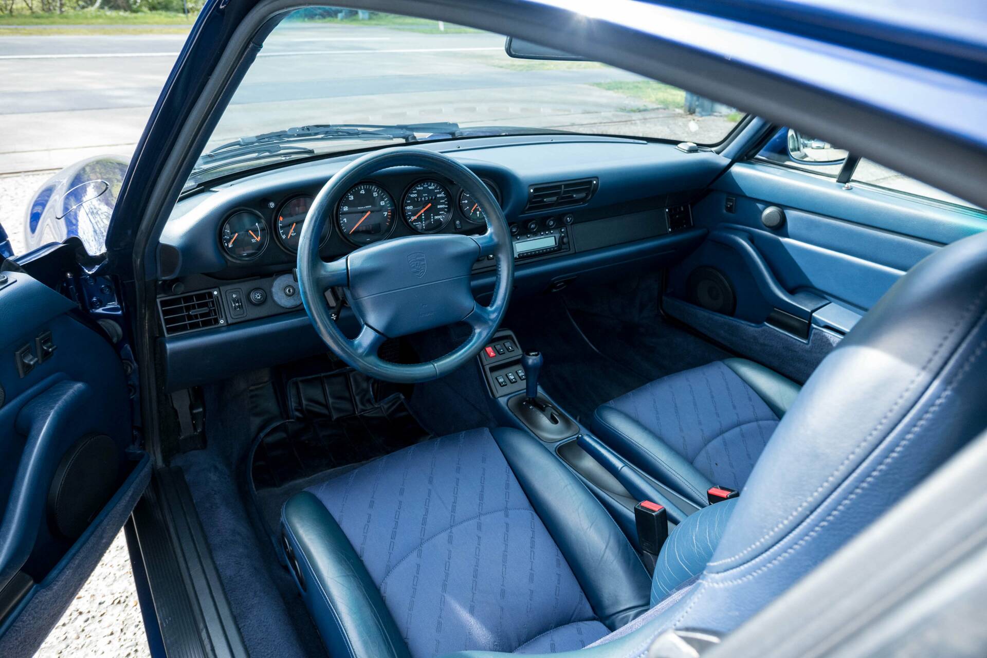 Our beautiful 1994 Porsche 911 Carrera was delivered new in Germany through Porsche Zentrum Berlin, forming the basis of a transparent and highly documented history from day one. Finished in the rare and highly attractive Iris Blue Metallic (L39U), this example immediately stands out and suits the elegant lines of the 993 exceptionally well. It is paired with a blue interior (code FJ), featuring the original Porsche script cloth seat inserts. This is a rarely seen factory specification, full of period charm, and exceptionally comfortable to sit in.