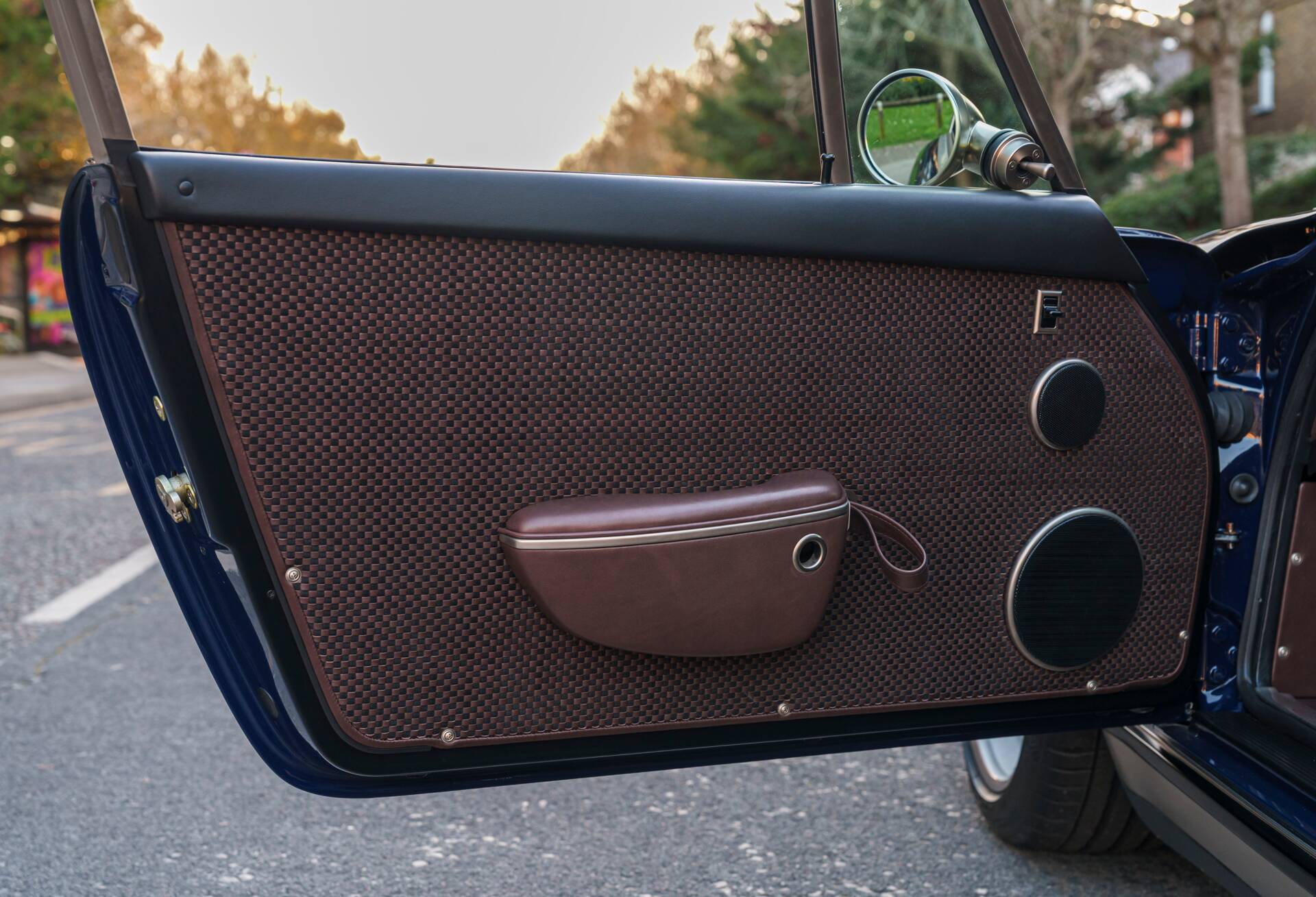 Finished in Paint-to-Sample Oxford Blue over Allspice leather interior