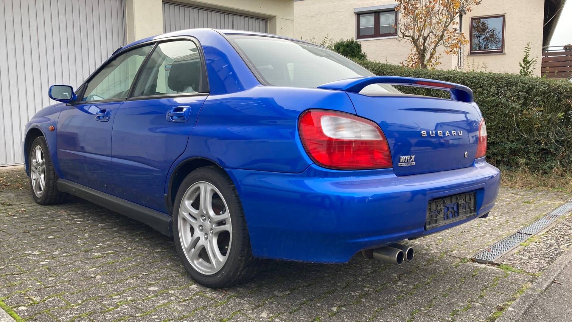 Te koop aangeboden: een Subaru Impreza WRX uit 2001 in de klassieke kleur WR Blue Mica (code 02C). De auto werd in 2014 afgemeld maar is daarna af en toe gereden om de techniek in beweging te houden.