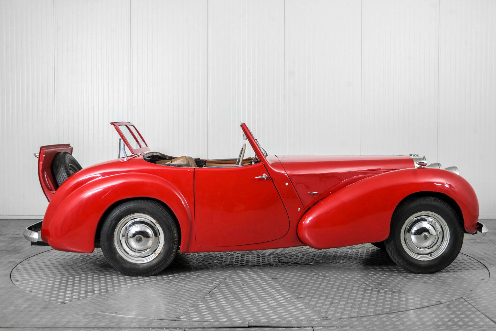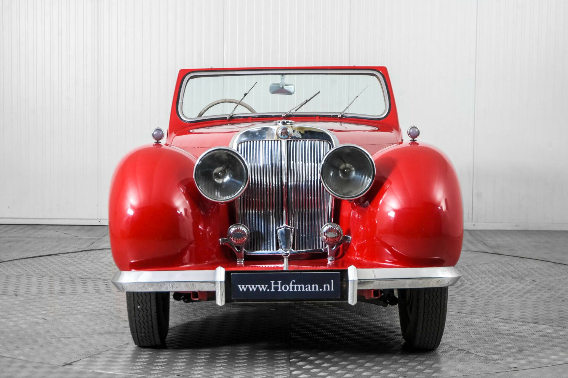 Onder de lange motorkap lag de betrouwbare 1.8 liter viercilinder met circa 65 pk, gekoppeld aan een handgeschakelde vierversnellingsbak. Daarmee reed de Triumph vlot en soepel voor zijn bouwjaar, met het karakteristieke geluid en de beleving die alleen een klassieker kan bieden. De Triumph 1800 valt op door zijn elegante vormgeving: een statige grille, vloeiende spatborden en sierlijke rondingen maken dit een auto met echte Britse allure. Het interieur is smaakvol uitgevoerd met klassieke details en houten afwerking, waardoor je bij elke rit een stap terugzet in de tijd. Deze Triumph is niet alleen een verzamelaarsobject, maar ook een unieke kans om zelf het gevoel van een vroege naoorlogse auto te ervaren. Door zijn beperkte productieaantallen en historische waarde is de 1800 een uitstekende investering voor de toekomst en is het een stijlvolle, zeldzame en karaktervolle klassieker die zowel op shows als tijdens een zonnige rit bewonderende blikken zal trekken. De 2000cc 4 cilinder motor is vervangen door een 2.4 Jaguar 6 cilinder motor, welke een prachtig geluid produceert, met de bijbehorende 4 bak met overdrive versnellingsbak, waardoor hij nu prima mee kan komen in het moderne verkeer. Bij de auto is een nieuw dak aanwezig welke nog gemonteerd moet worden.