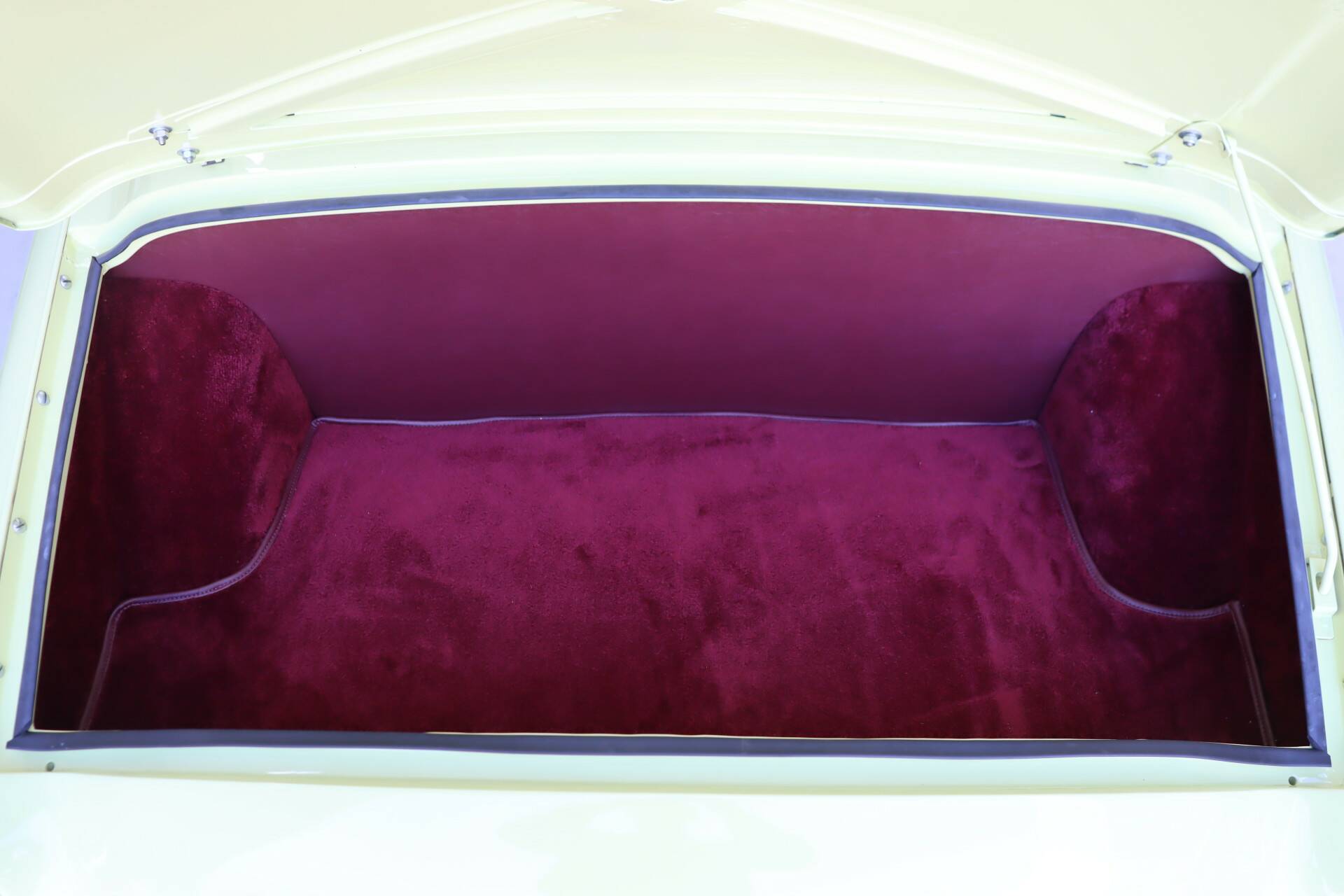 The interior, side screens and soft top were newly supplied by a specialist company and are therefore in excellent condition. The seats and rear bench are upholstered in leather and the rest of the interior and boot are upholstered in velour. Everything is in beautiful, as good as new condition. The same applies to the boot, which can accommodate the soft top, tonneau cover and original tools. The tonneau cover and soft top are from Mercedes Classic line and are of high quality. Modern seat belts have been fitted for safety.