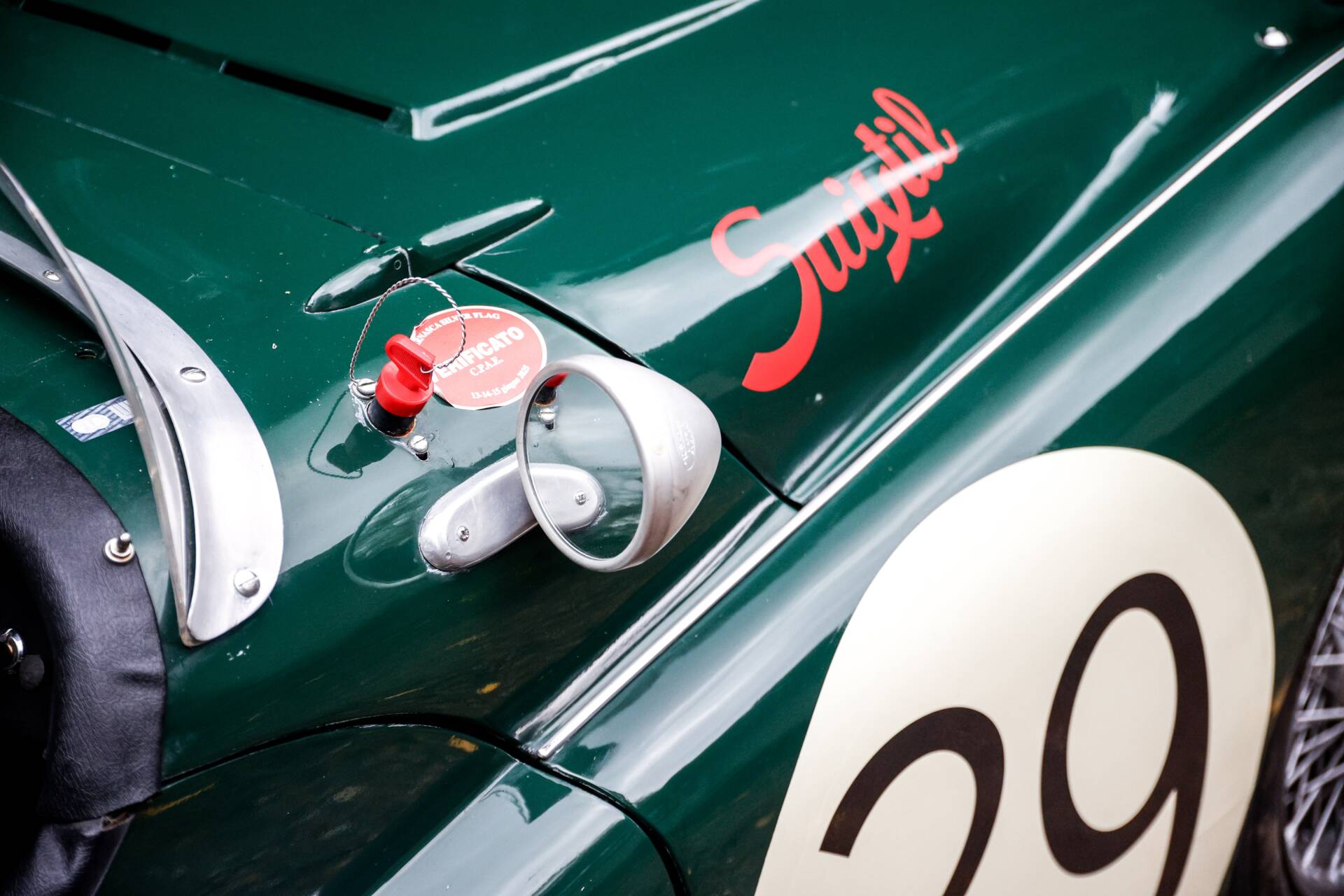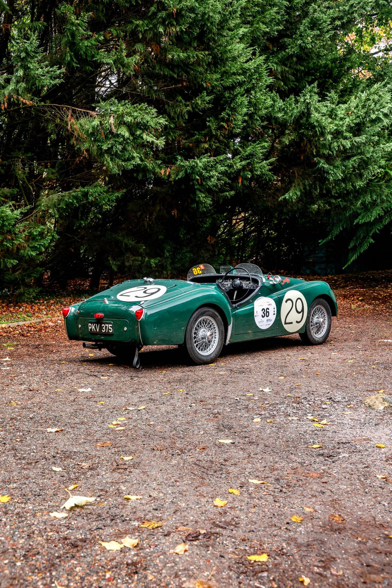 The following year Standard-Triumph Ltd decided to enter a 'Works' team of three cars to compete at the 24-hours, all finished in British Racing Green with wire wheels and carrying consecutive registrations 'PKV 374', 'PKV 375' and 'PKV 376'. We are incredibly proud to be offering one of these team cars, 'PKV 375' for sale. The team cars were not exactly standard customer cars at the time, as they were fitted with uprated experimental front disc brakes, long range fuel tanks and high-port cylinder heads, effectively making them prototypes, however, it wasn't long before these modifications became standard fitment on customer cars. 374 and 375 were fitted with Girling disc brakes at the front and 11-inch Alfin drums at the rear, they also featured a long-range fuel tank and high-port cylinder heads, effectively making it a prototype for future standard fitments.