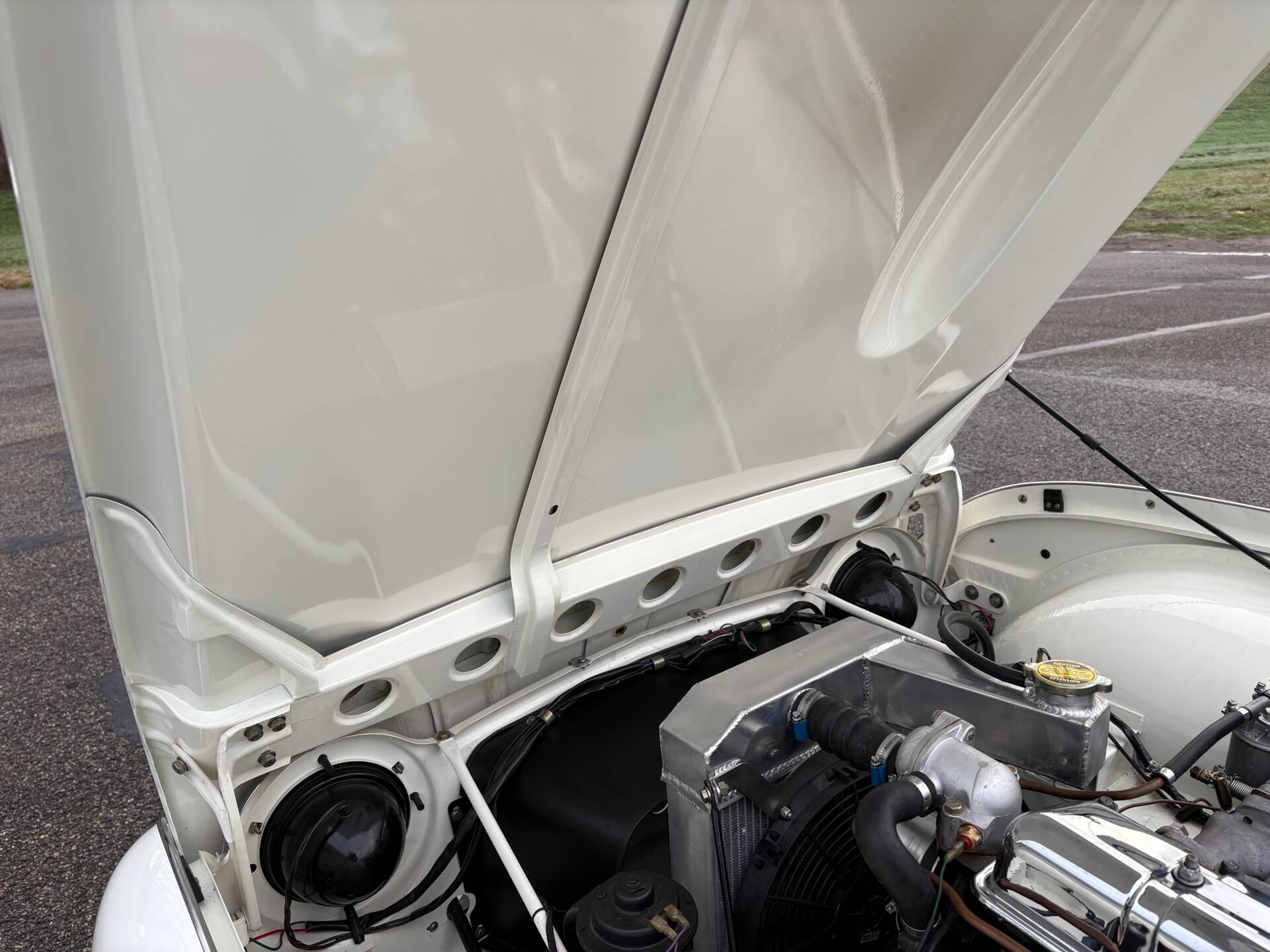 De TR4 is voorzien van een originele Surrey-Top en prachtige American Racing velgen.