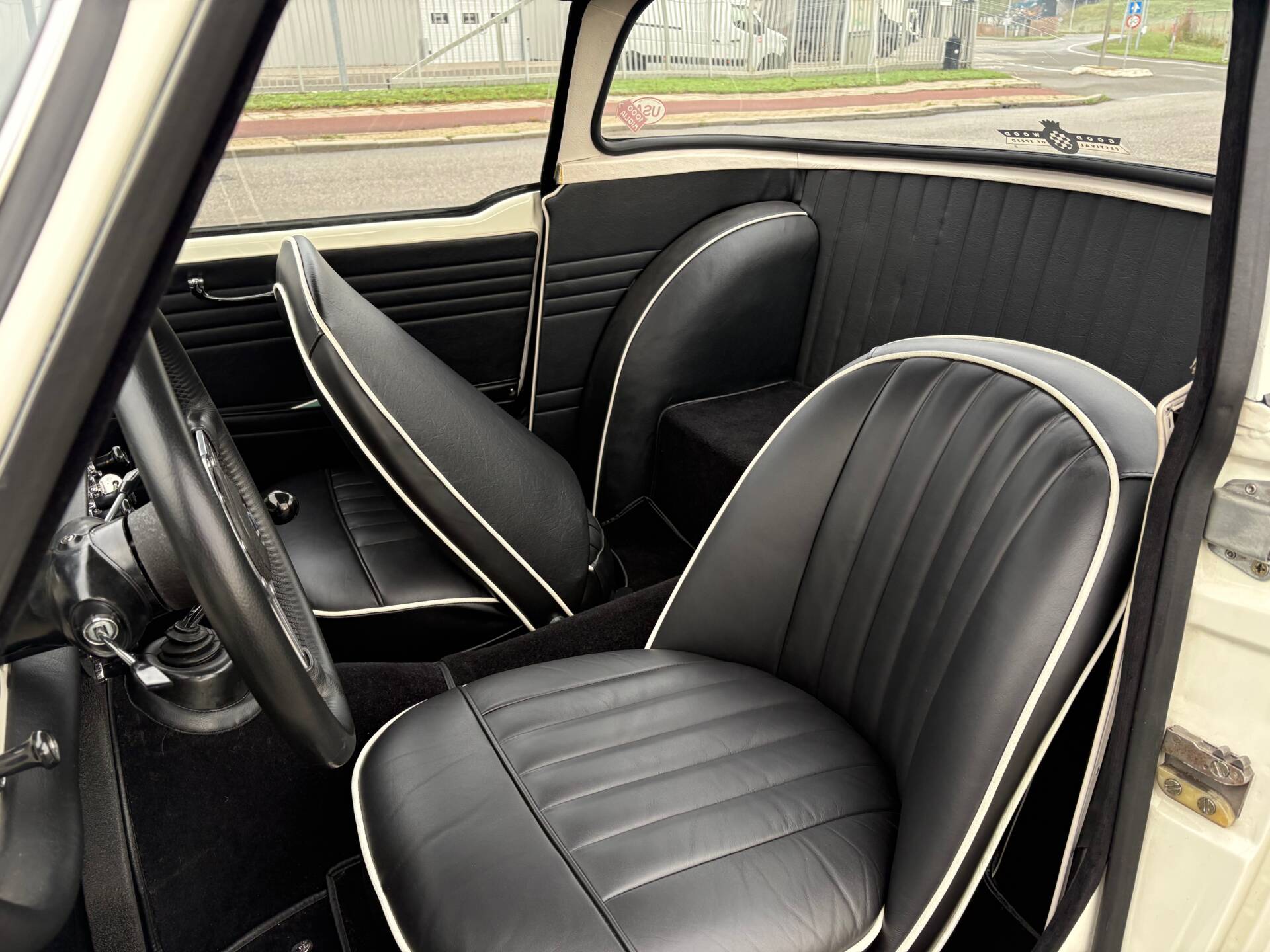 Old English White met een zwart interieur.
