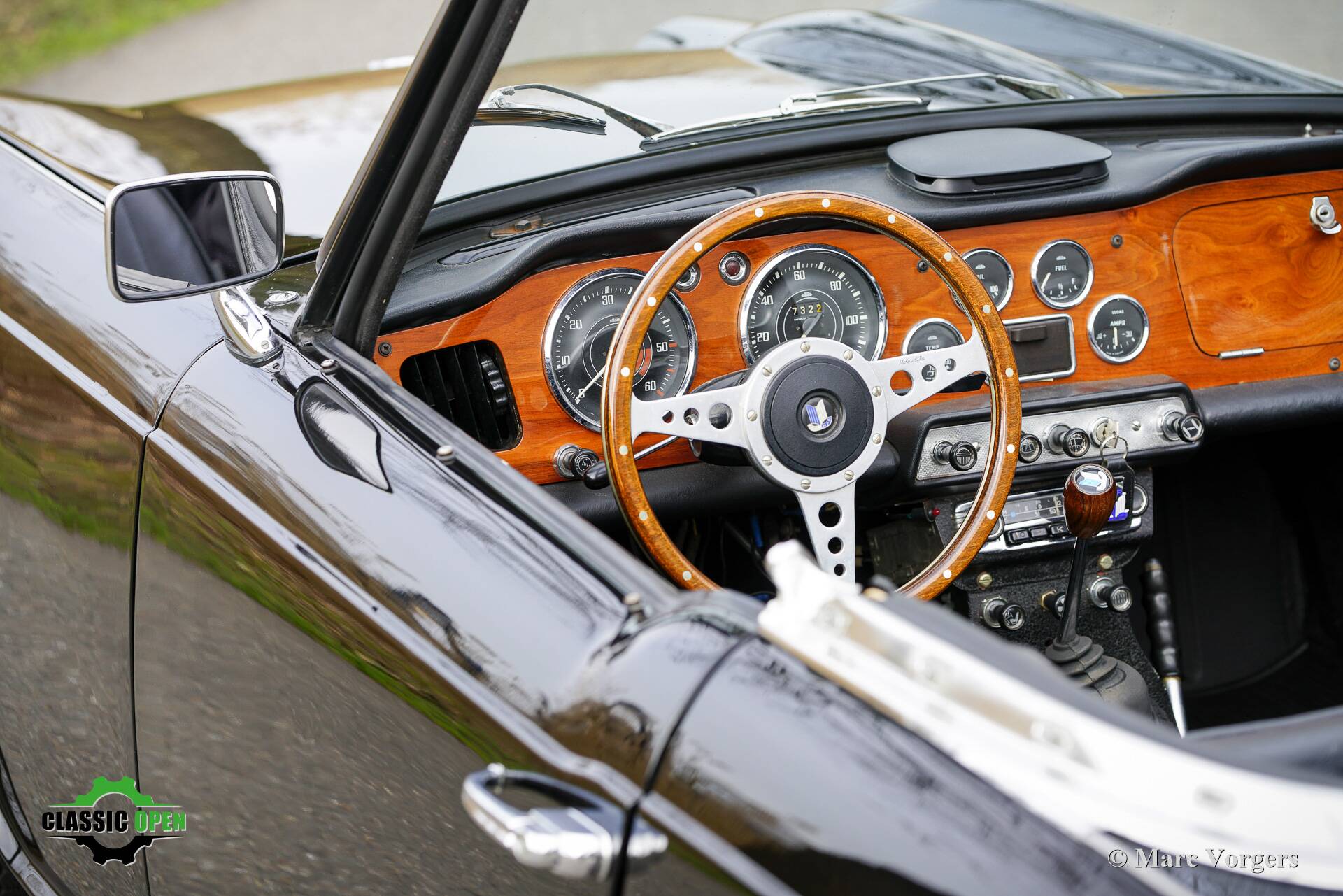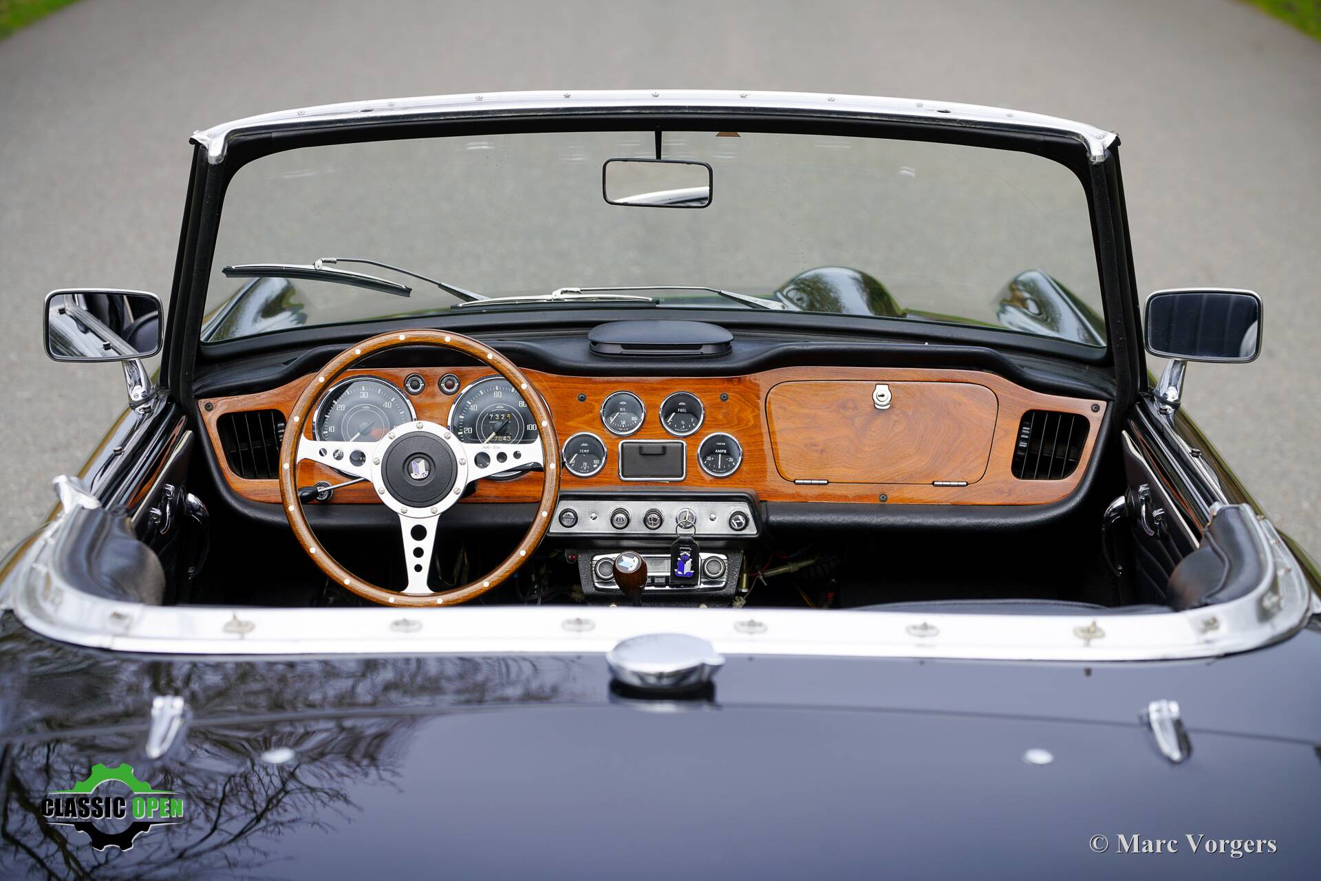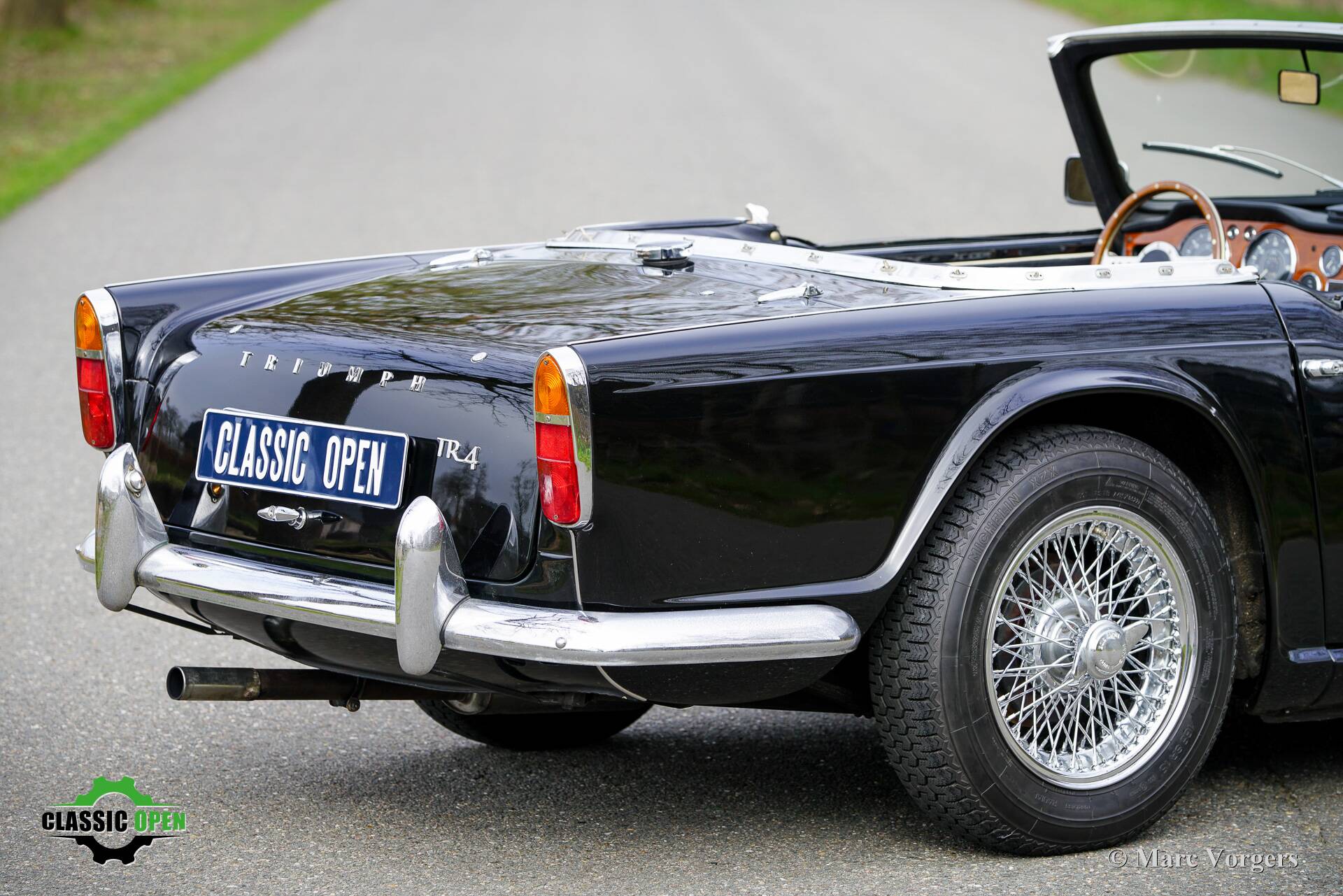 De TR4 is uitgerust met vele aantrekkelijke opties, waaronder een Overdrive, chromen spaakwielen, een hoogglans gelakt houten dashboard en een Moto-Lita sportstuur met houten rand (het originele stuurwiel wordt meegeleverd).