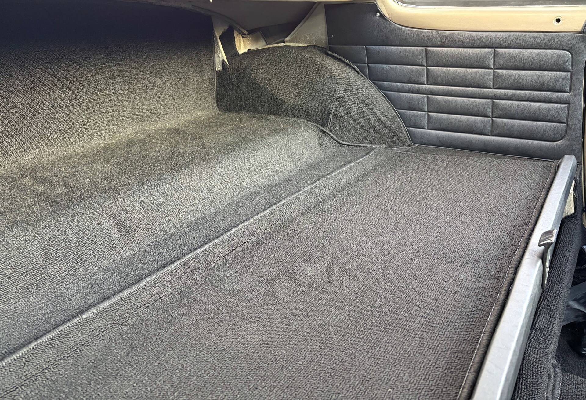 The entire interior is also in excellent condition. The seats and bench have been reupholstered and refilled. The dashboard is beautiful, and the original steering wheel looks like new. The floor covering and door trim are new, including the beautiful map pockets. Under the bonnet, everything is neatly painted. A clean and tidy engine compartment, just as it should be! The boot and front luggage compartments are also beautifully upholstered and finished.