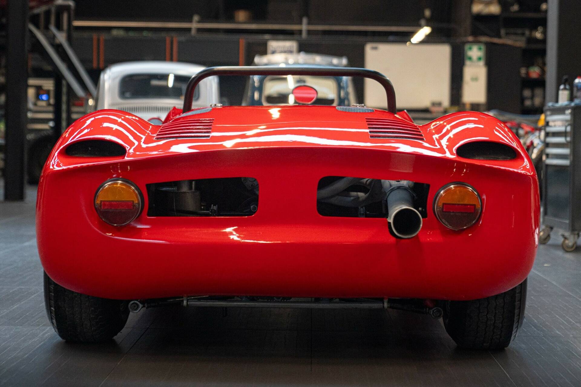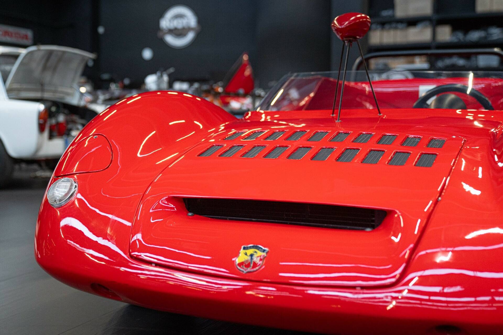 In 1966, Abarth reached a turning point with the SE04 project—the Fiat Abarth 1000 SP—where "1000" refers to the engine displacement in cubic centimeters, and "SP" stands for Sport Prototype. The 1000 Sport Prototype was equipped with yet another evolution of the Abarth twin-cam engine, built around the Fiat 600’s engine block. This centrally positioned unit produced 105 HP at 8,000 rpm. Given its displacement of less than a liter (982 cm³), this meant it exceeded 100 HP per liter—an impressive figure for the time, especially considering that the 1000 SP was designed to excel in both short hill climb races and long, demanding endurance events. Its lightweight chassis and polyurethane and fiberglass body kept the overall dry weight at just 480 kg, allowing it to reach a top speed of over 220 km/h. The 1000 SP quickly began racking up victories, even competing in prestigious endurance races. Thanks to numerous updates and modifications, the car remained in competition for over a decade, bringing great satisfaction to private drivers—some of whom were willing to wait a long time to receive their Abarth-ordered car. Built in 1966, it raced with several private drivers until 1984, when it was acquired by its last owner, who has preserved it to this day. The bodywork remains in a well-preserved state, while the mechanical components were fully restored in 1985 by the specialist “Falorni” of Castelfiorentino (FI). This magnificent 1000 SP, still fully functional today, was equipped with a "Colotti" gearbox—a highly appreciated choice among drivers at the time. The car is ready for historic revivals, classic races, and, most notably, is eligible for Le Mans Classic.