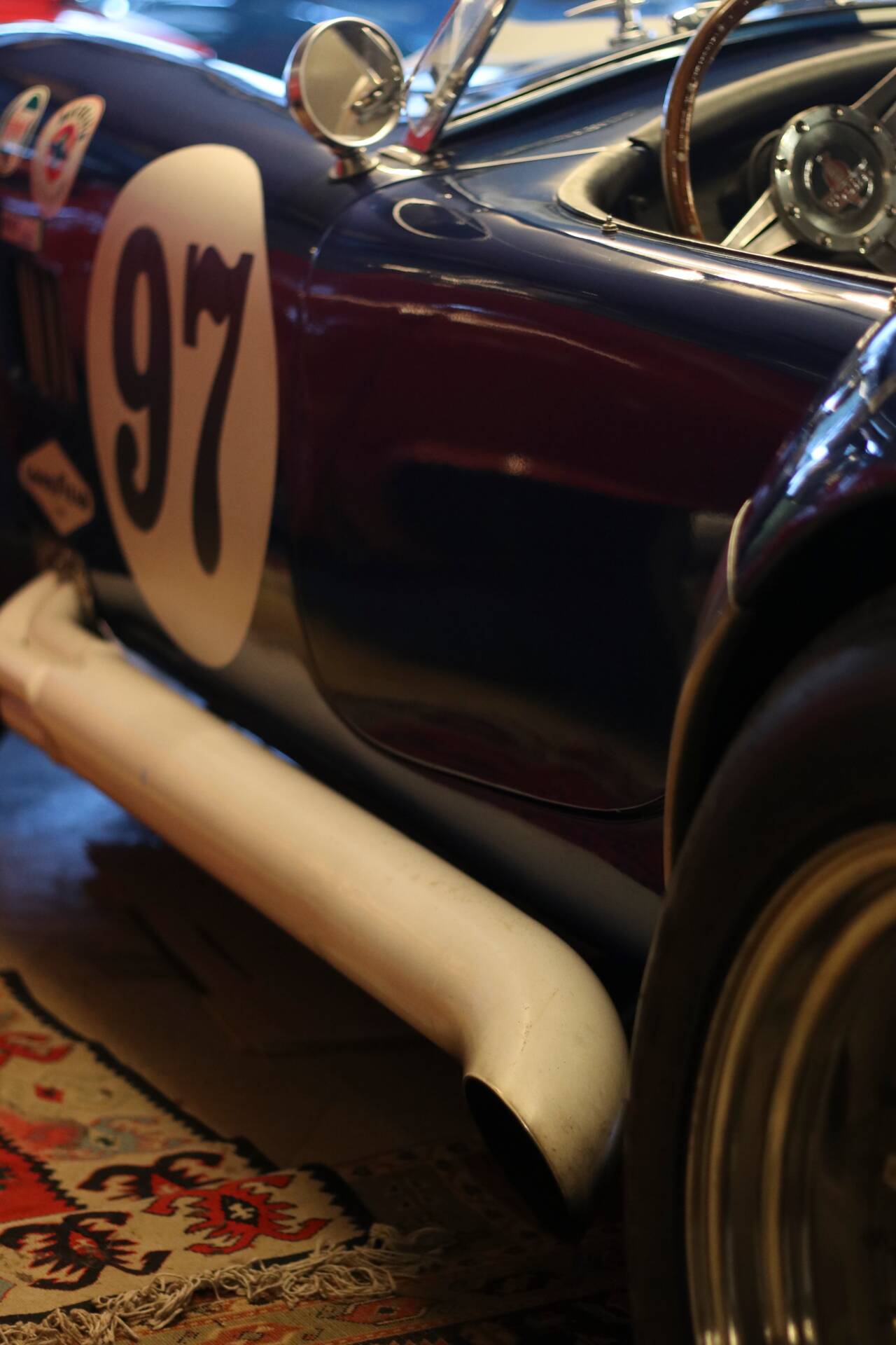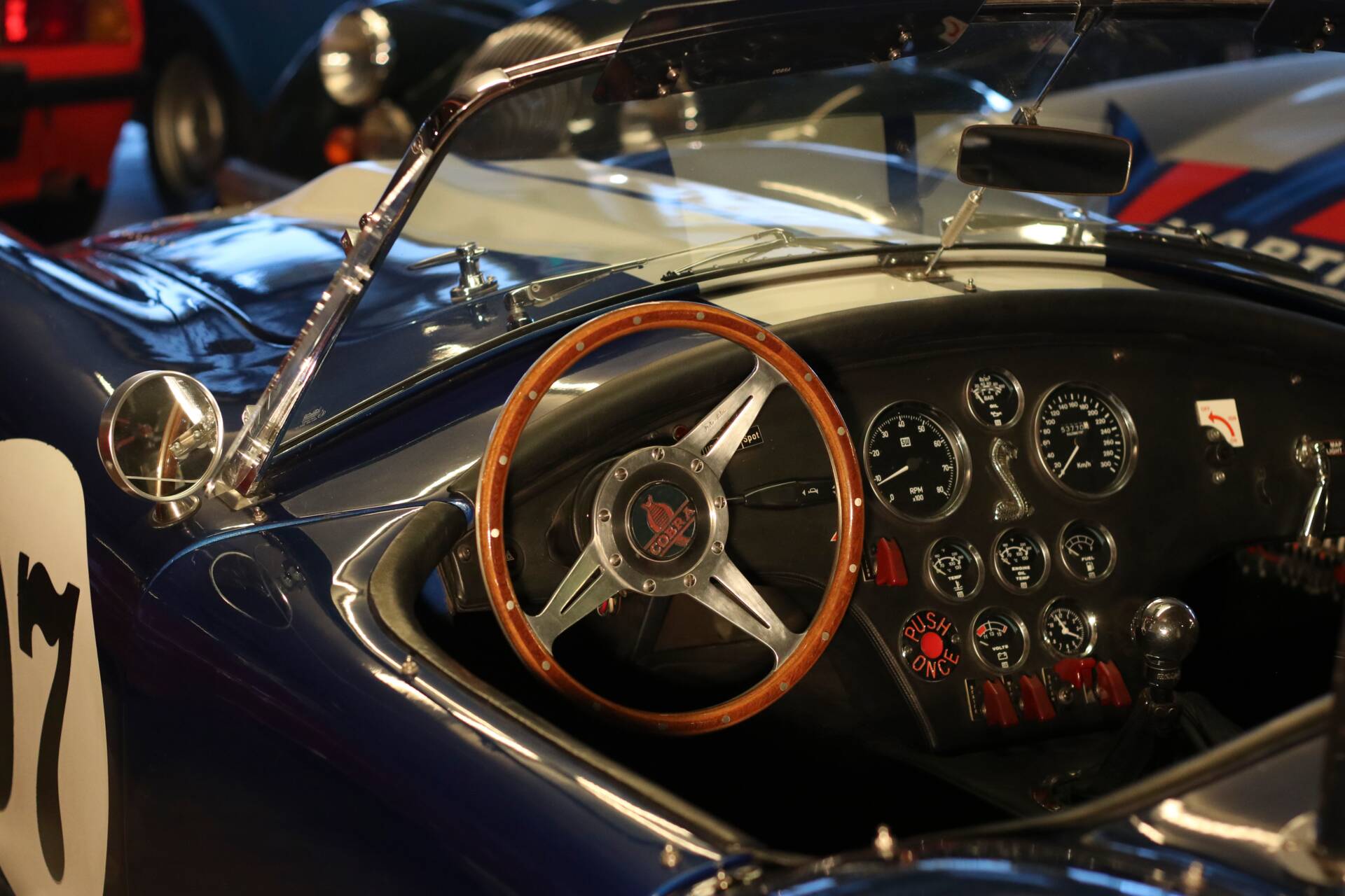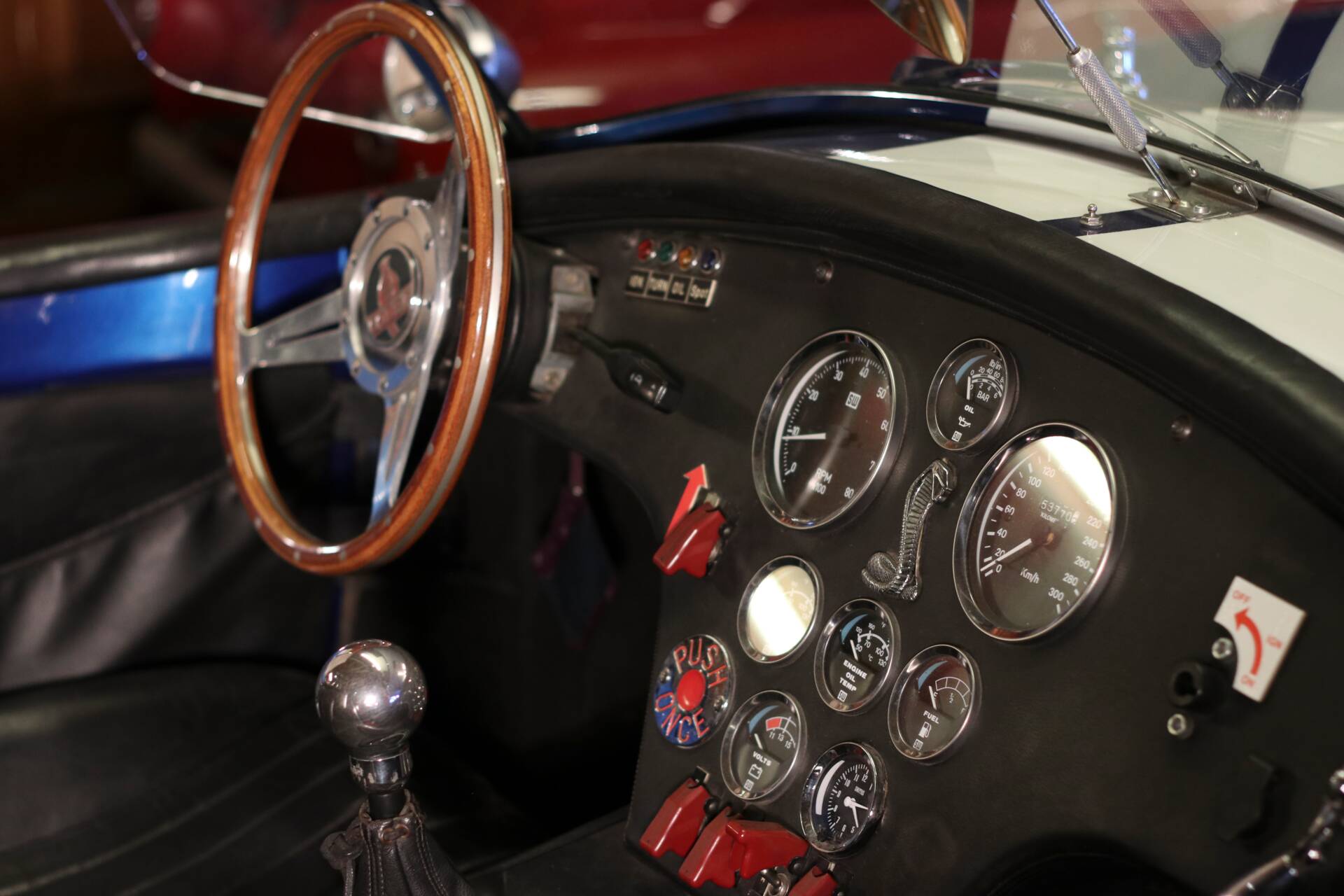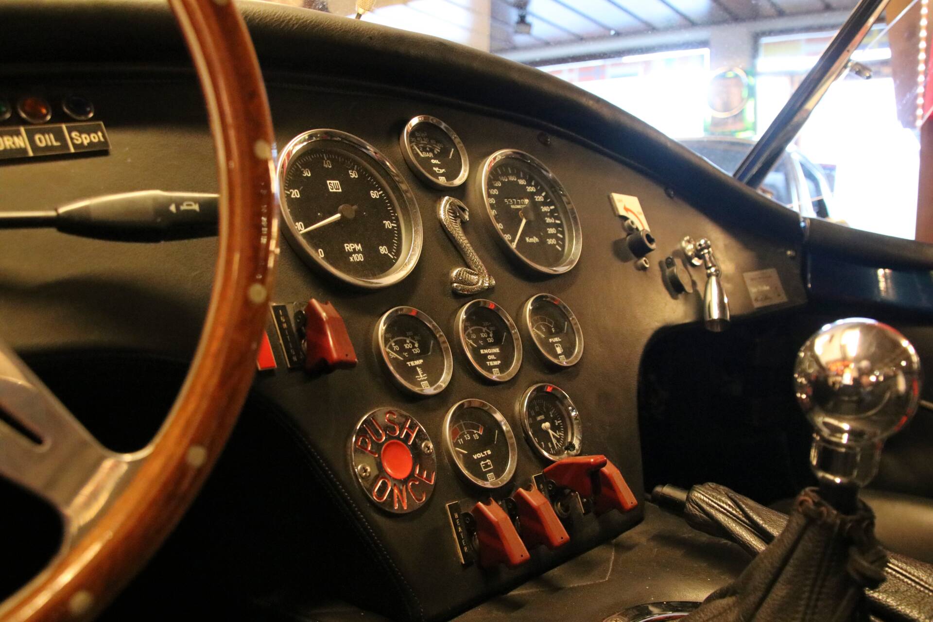 Im Innenraum setzt das Moto-Lita-Holzlenkrad einen wunderbar zeitgenössischen Akzent. Es passt hervorragend zur analogen, reduzierten Idee dieses Fahrzeugs: wenig Filter, viel Kontakt zur Maschine. Gerade in einem Cobra-Konzept lebt das Cockpit nicht von Komfortfeatures, sondern von Haltung, Materialität und dem Gefühl, dicht am Geschehen zu sitzen. Weitere Ausstattungsdetails wurden mit „uvm.“ angegeben, was auf zusätzliche Individualisierungen schließen lässt; eine vollständige Auflistung liegt in den vorliegenden Angaben allerdings nicht vor.
