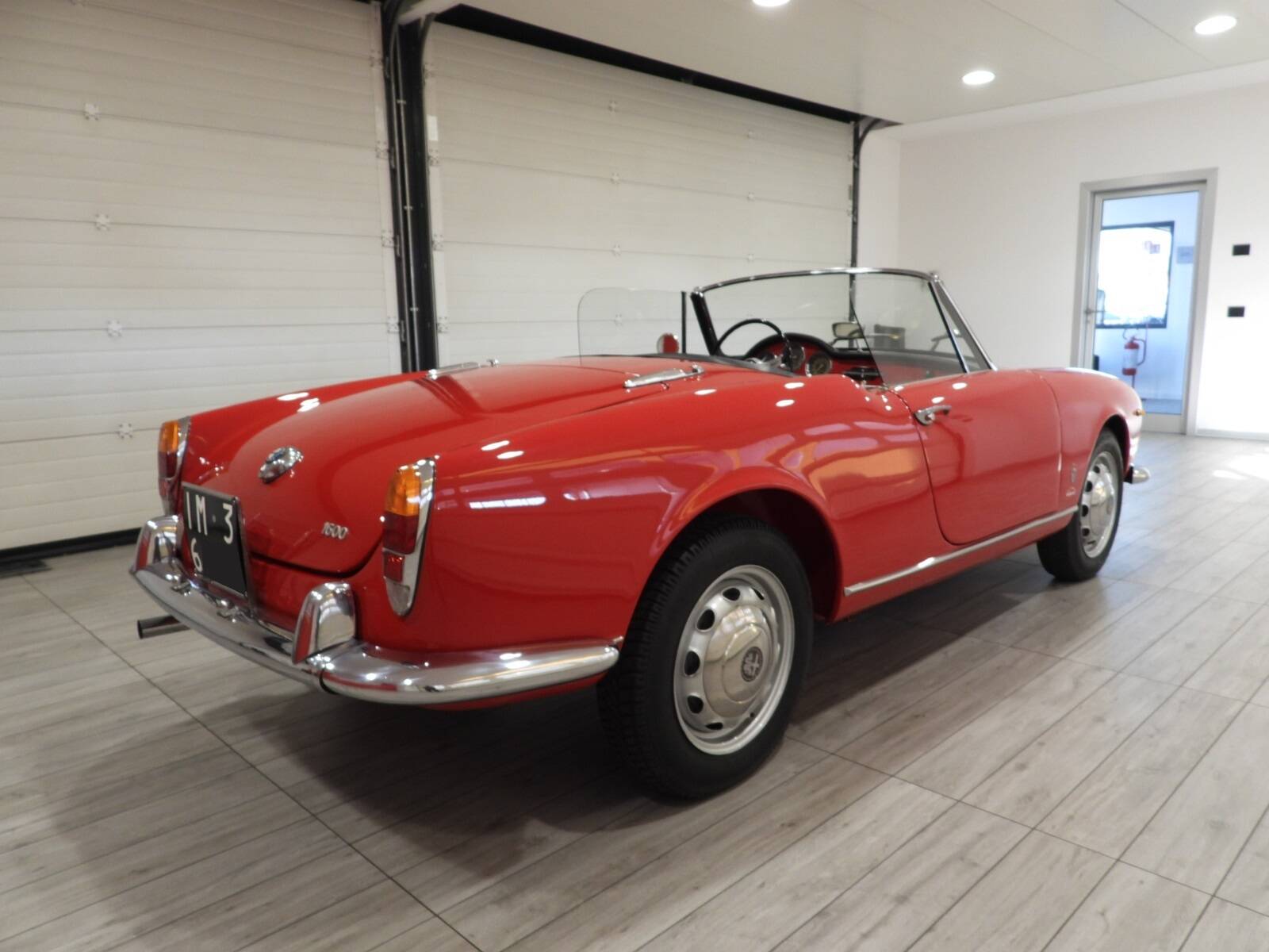 EXCELLENT EXAMPLE OF THE "ALFA ROMEO GIULIA SPIDER 1600" CREATED AS AN EVOLUTION OF THE GIULIETTA SPIDER IT HAD SOME DIFFERENCES FROM THE LATTER, SUCH AS THE AIR INTAKE ON THE HOOD (NECESSARY TO ACCOMMODATE THE NEW ENGINE) AND THE "1600" WRITING ON THE TAIL. OTHER SMALL DIFFERENCES CAN BE NOTED IN THE STEERING WHEEL, NOW WITH THREE SPOKES, AND IN THE INSTRUMENT GRAPHICS.