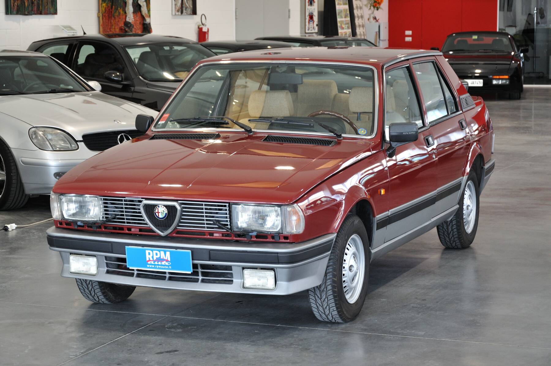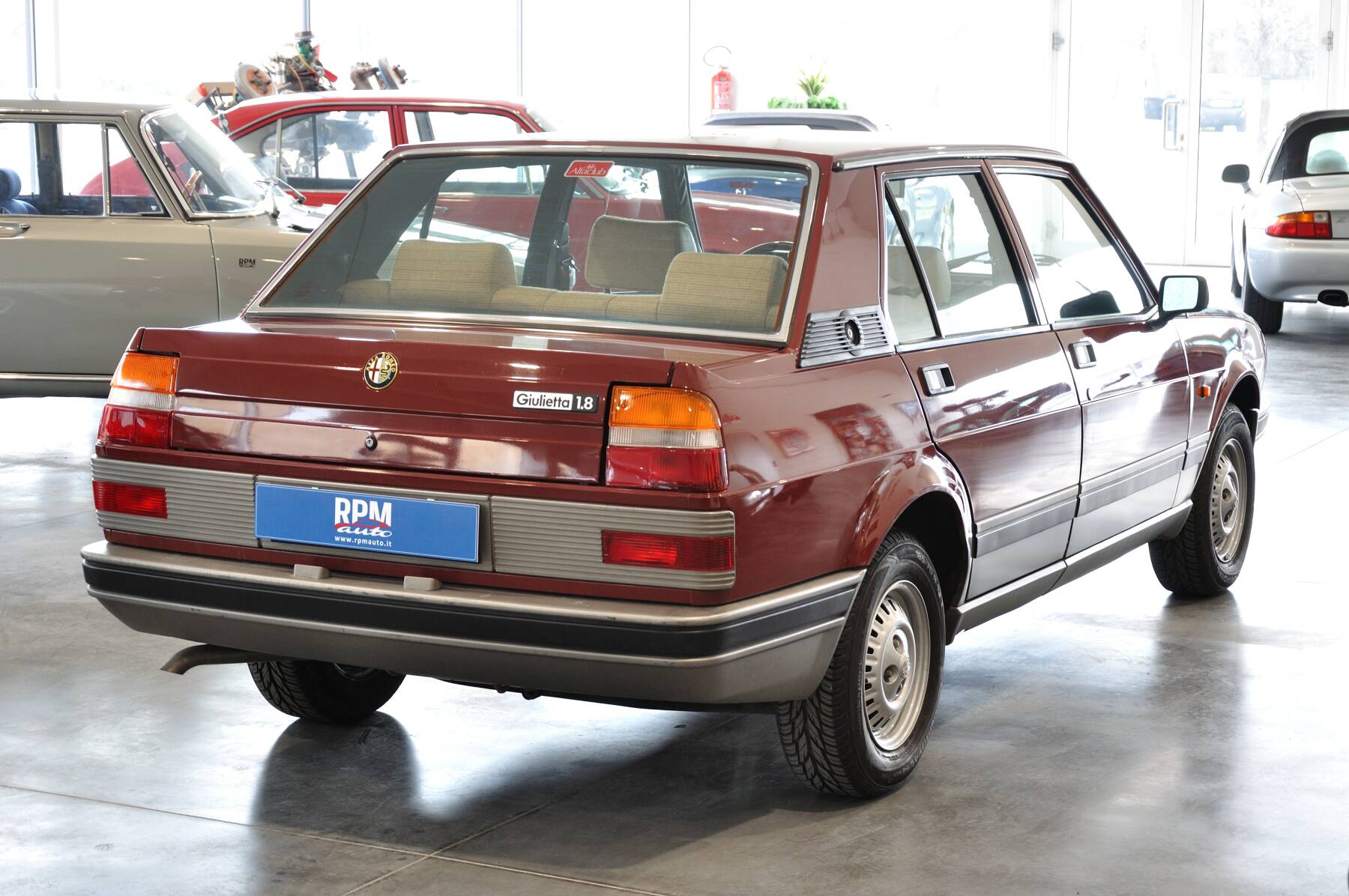 ALFA ROMEO Giulietta 1.8 tipo 116AA, Rosso Veneziano, 63.000km da nuova, IMMACOLATA! Targhe bianche con provincia e libretto originali del 1985, set completo di doppie chiavi, libro uso e manutenzione, TOTALMENTE prima vernice (misurata con spessimetro tra i 90 e i 120 micron) conservata perfettamente ed appena lucidata. Interni intonsi con ancora il cellophane sulla moquette e i tappetini originali della concessionaria Alfa.