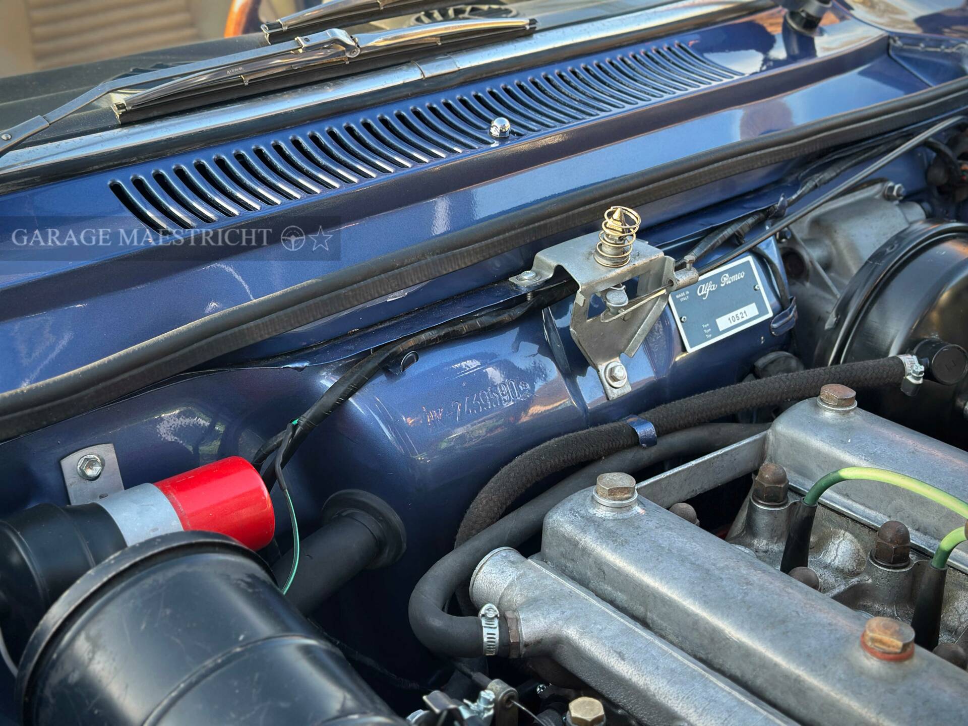 Although the exact date of the car's restoration is unknown, experience tells us it is about a decade or so old. After having sourced and acquired this example in late 2025, we subsequently ordered a meticulous going-over by experts in Italy and the Netherlands. Although the Alfa presented in beautiful restored condition to start off with, it was in need of some technical attention to get her "on-the-button" to Garage Maestricht standards.All parts & work are on invoice in the history file. The recommissioning was specifically targetting the following technical aspects amongst others: Carburettors rebuilt (refurbishing kit, ultrasonic cleaning), driveshaft rebuilt and balanced (new CV joints, pendant bearing, Hardy disc), brakes rebuilt (calipers, hoses, new servo, fresh fluid, handbrake cable, handbrake shoes), fuel system serviced (filter, gasket, lines, etc.), new clutch kit, new tie-rod ends, Eibach lowered (40mm) springs, the usual bushes and rubbers that were in need of replacing, exhaust system overhaul incl. new mounts and heat shield. Last but not least a large service was carried out: fresh fluids all-round, filters, spark plugs, HT leads, alternator belt, new oil & water reservoir caps and new rear wheel bearings. A fresh set of Hankook Ventus XL tires have been fitted on the brand new GTA-style wheels with matching GTA wheel nuts (because details, right?).