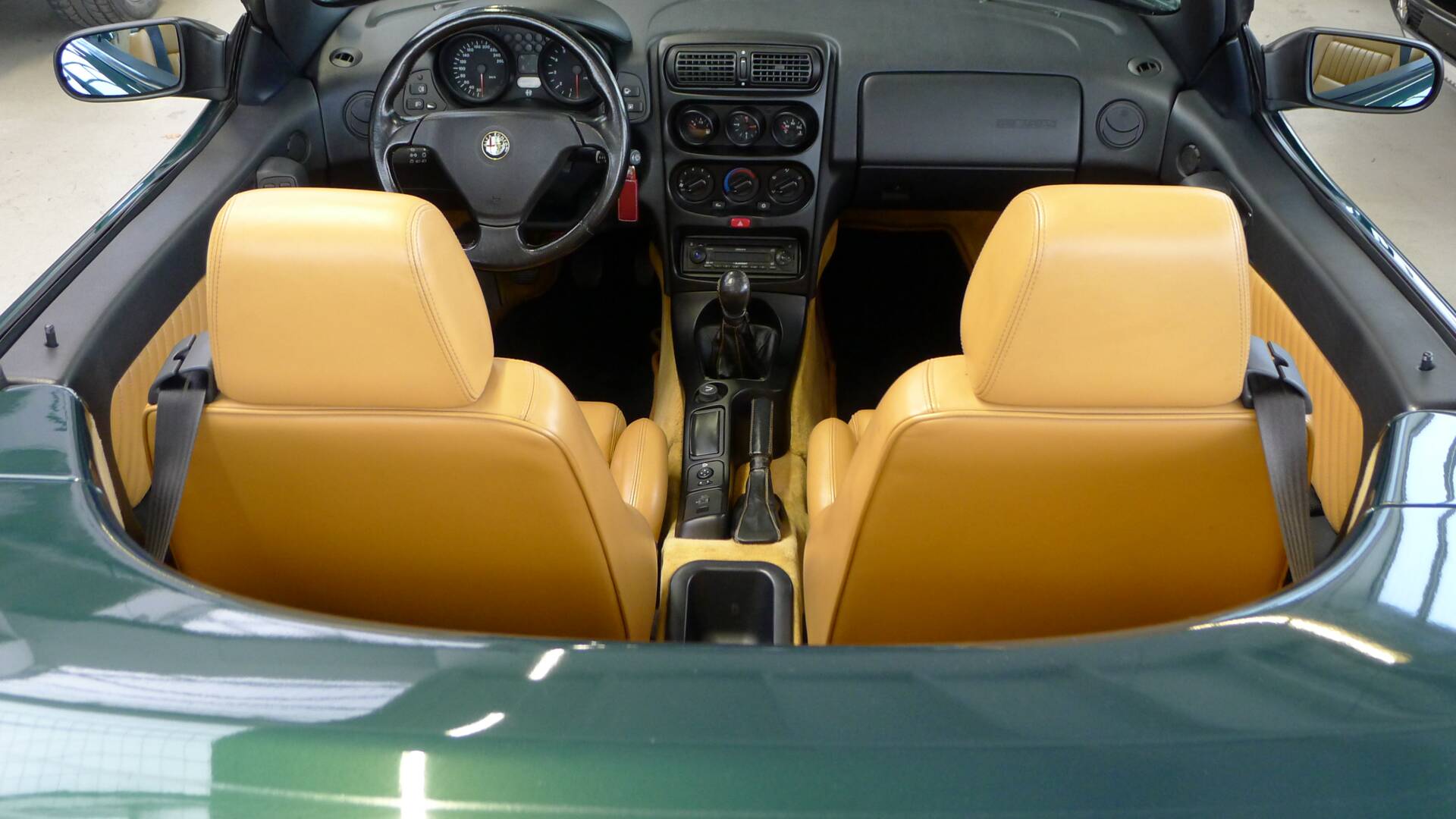 Frisch reingebrummt ist dieser wunderschöne Alfa Romeo Spider der 916er Baureihe mit dem begehrten 3.0 Liter V6 12v in verde tropico metallizzato mit Leder beige aus dem Baujahr 1997 ( 1.Serie ) mit erst 122.780 Kilometern.