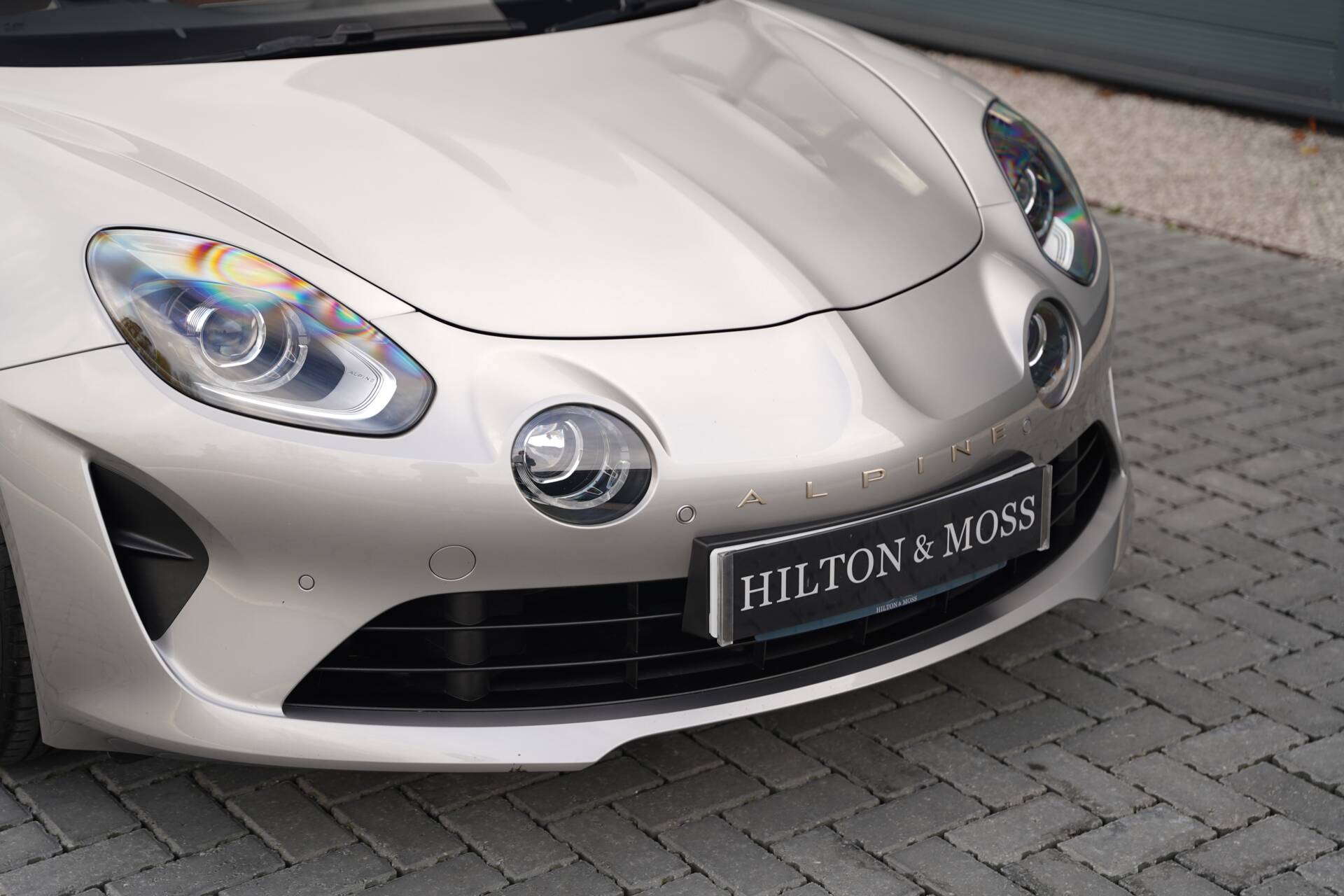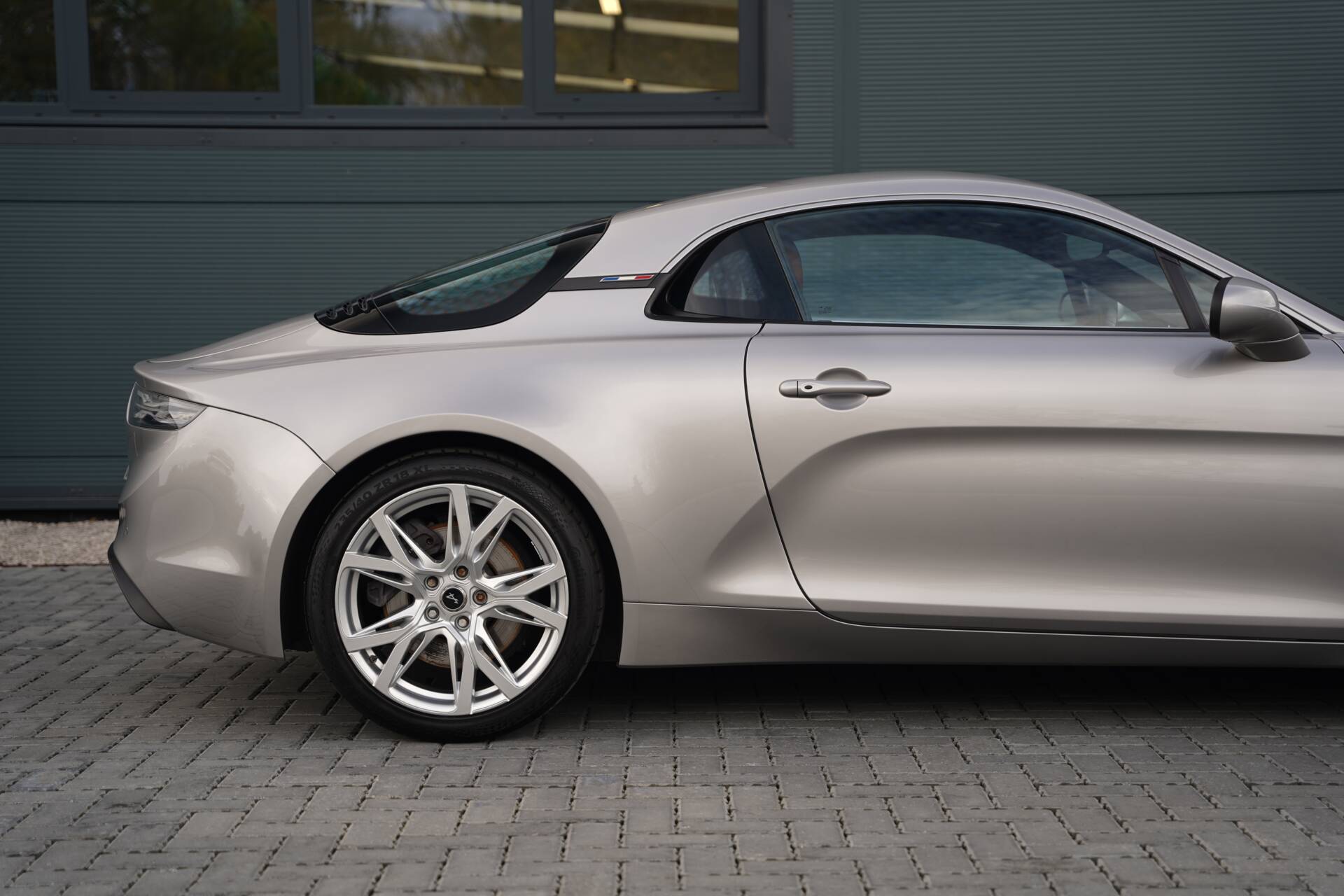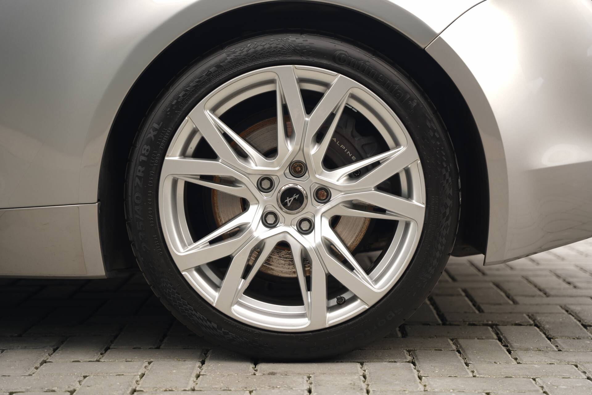 Finished in Mercury Silver over a wonderful Amber Brown leather interior, the cabin of this Alpine is a fantastic place to be. Carbon fibre accents to the air vents, dash binnacle and centre console complement the car and the contrast stitch continues leather the colour throughout. The Focal audio system provides fantastic audio and of course the usual features such as navigation, cruise control and optional heated seats are present. The exterior is complimented with freshly refurbished, all silver 18-inch Serac multi-spoke wheels and black brake calipers.
