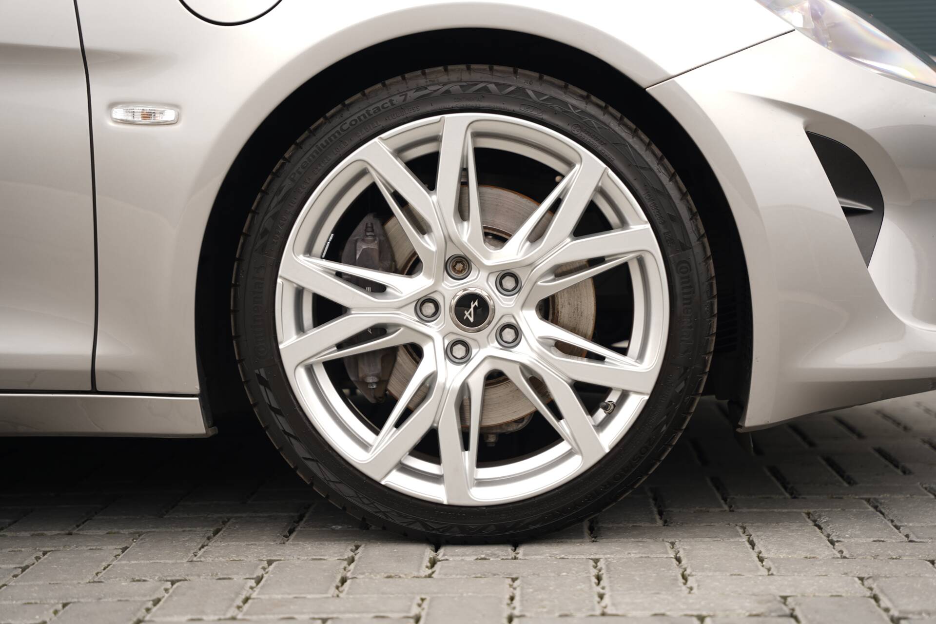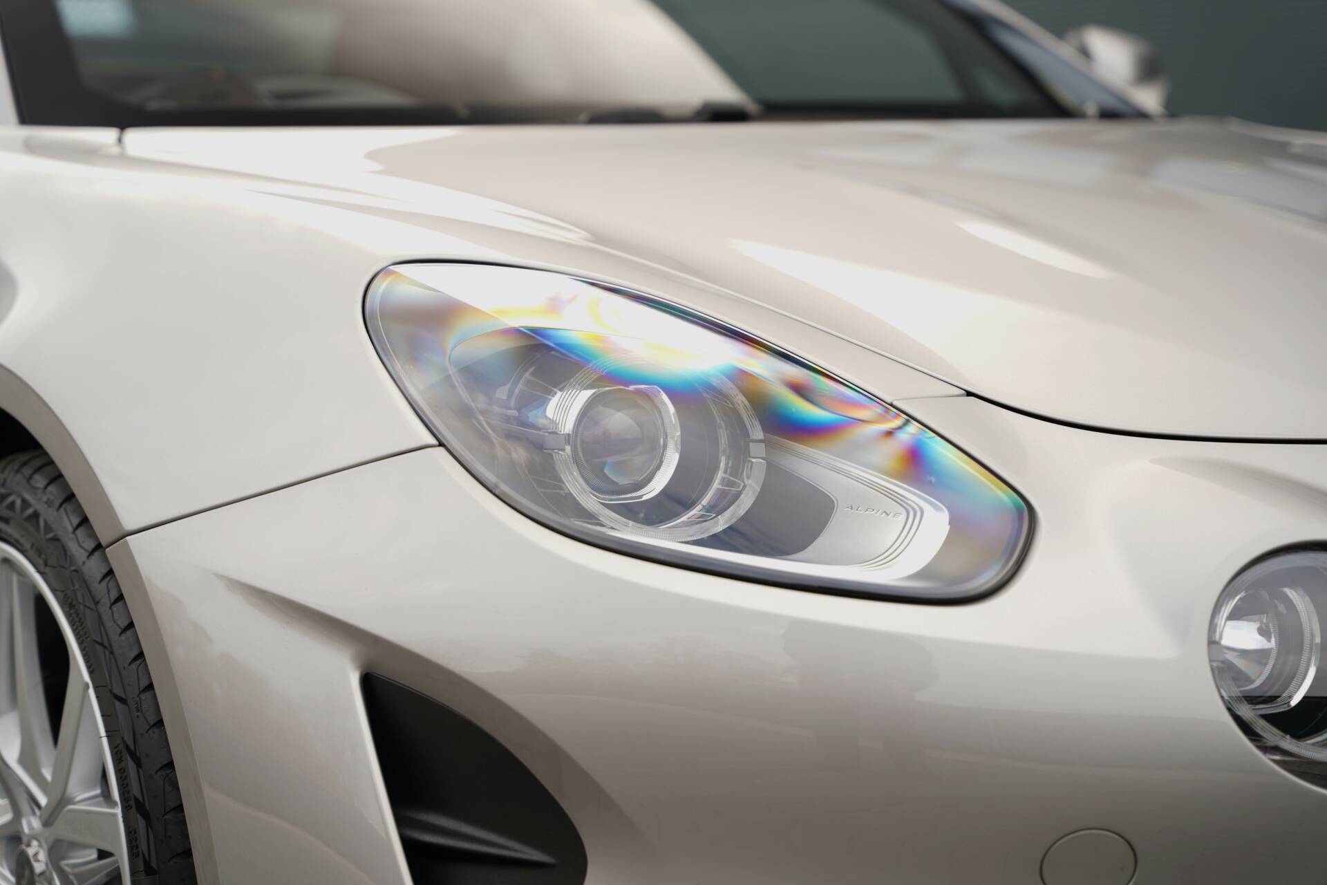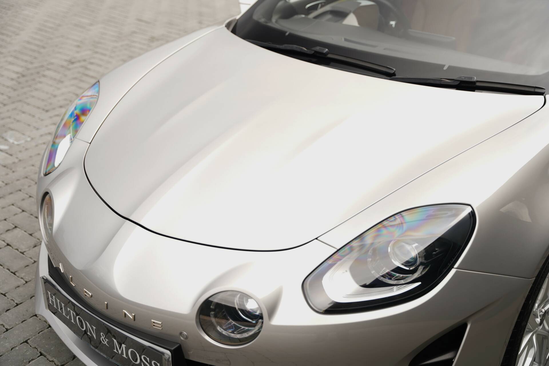 Finished in Mercury Silver over a wonderful Amber Brown leather interior, the cabin of this Alpine is a fantastic place to be. Carbon fibre accents to the air vents, dash binnacle and centre console complement the car and the contrast stitch continues leather the colour throughout. The Focal audio system provides fantastic audio and of course the usual features such as navigation, cruise control and optional heated seats are present. The exterior is complimented with freshly refurbished, all silver 18-inch Serac multi-spoke wheels and black brake calipers.
