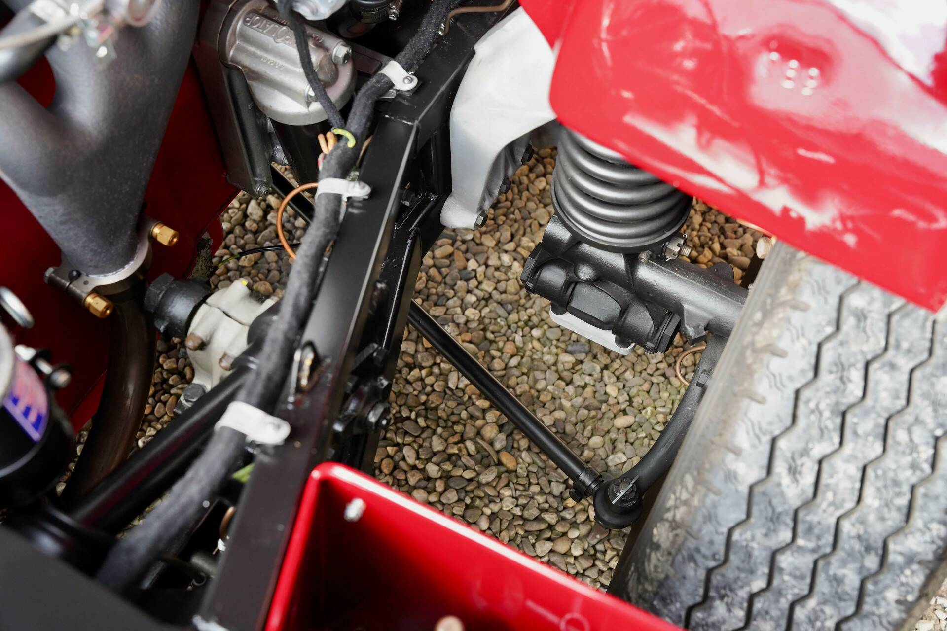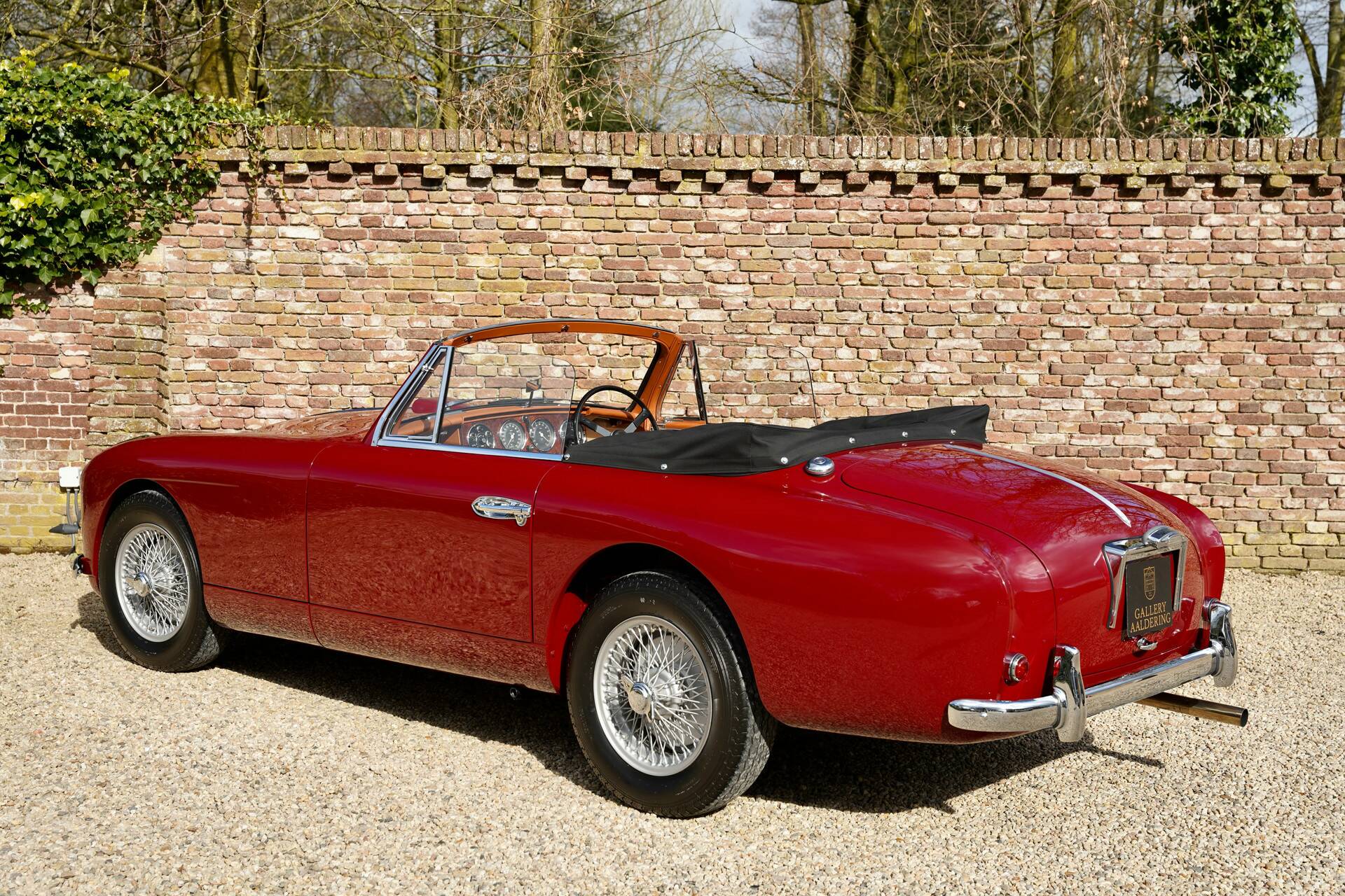 The bodywork, finished in the sophisticated and deep Imperial Crimson, displays exceptional depth and an incredible gloss. The paintwork has been applied with the utmost precision — true craftsmanship of the highest level. The elegant lines, subtle curves, and iconic grille make it clear why this Aston Martin was considered one of the most prestigious British sports cars of its time.