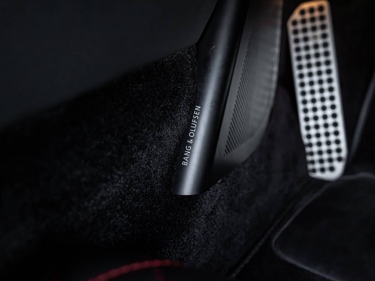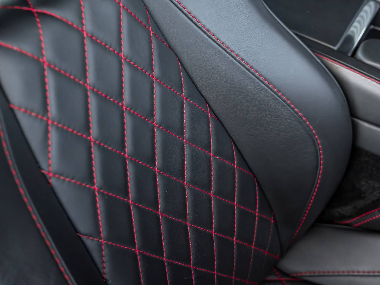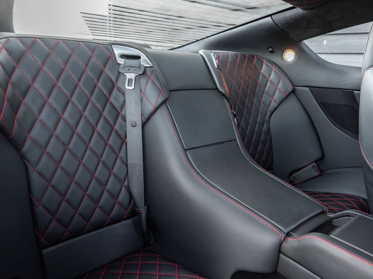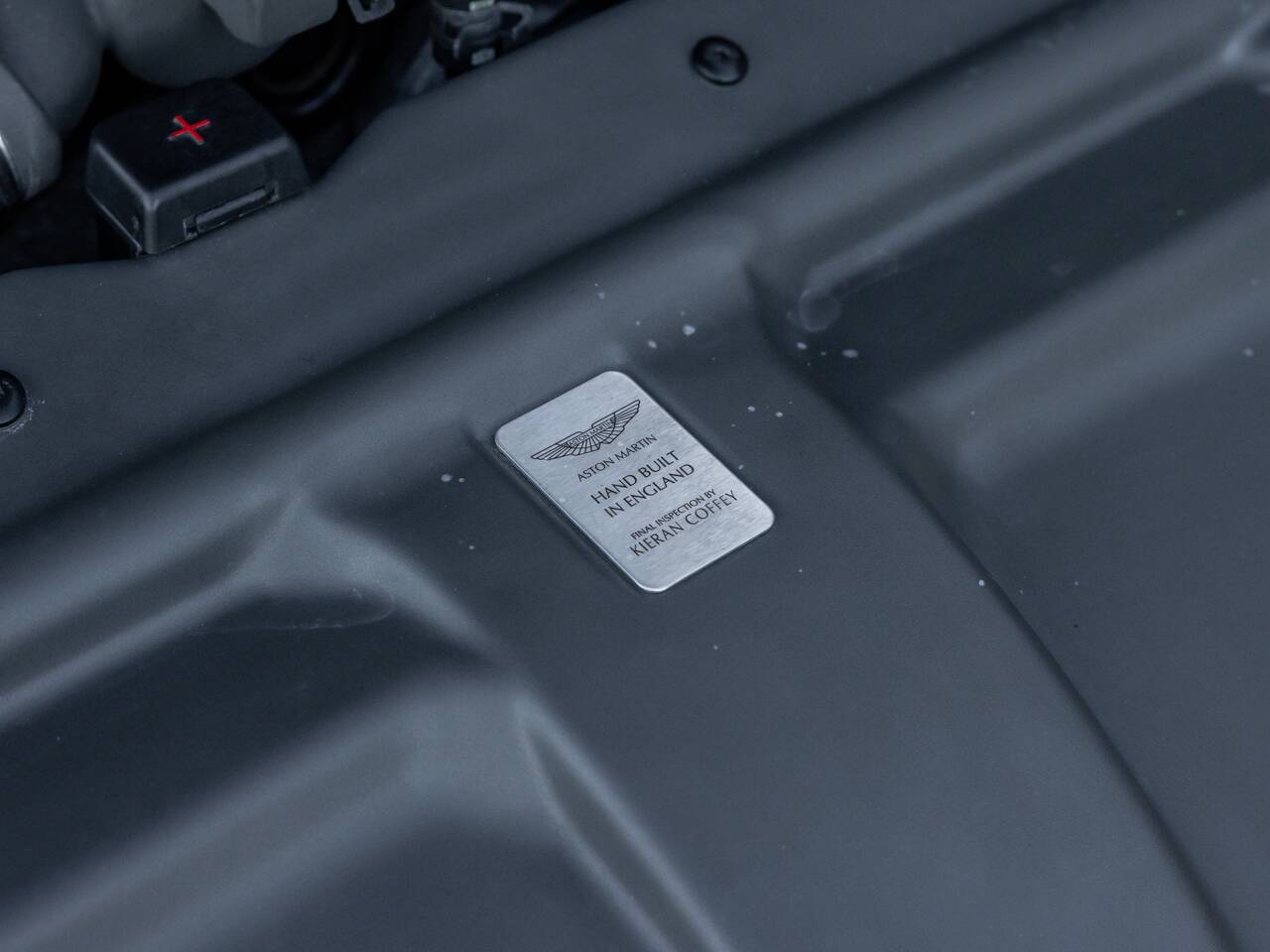 This example, #18 of 100 is finished in Quantum Silver with Obsidian Black hides with Red stitching. In addition to the standard ‘Ultimate’ specifications, optional extras specified include; Red Brake calipers, Gloss black decklid panel, carbon fibre veneer, DBS headrest embroidery and Gloss Black Diamond turned alloy wheels.