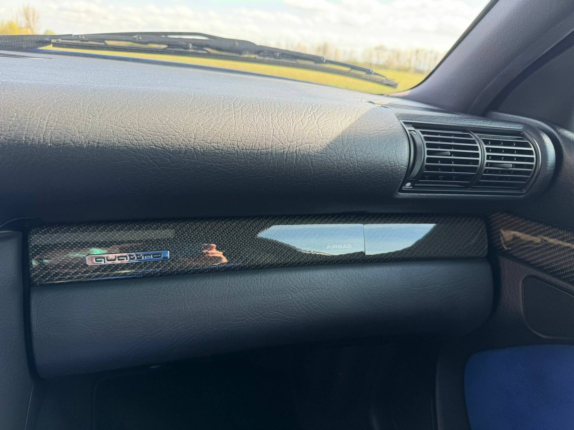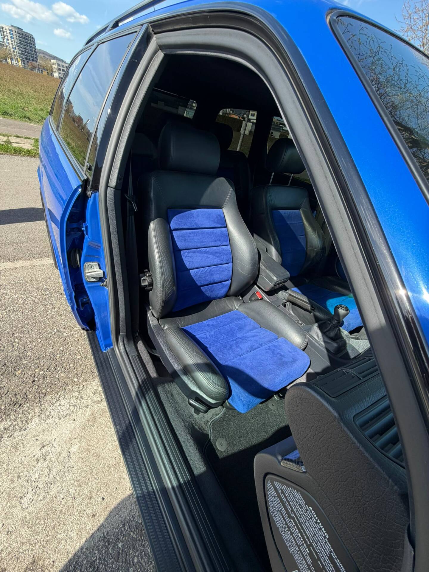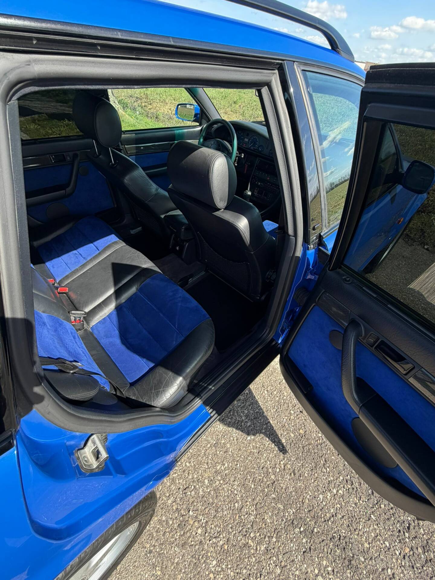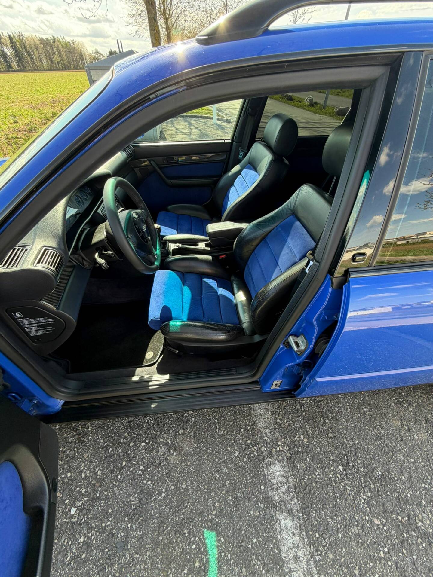 Der Innenraum ist geprägt von einer sportlich-luxuriösen Ausstattung, wie sie für den S6 Plus typisch war. Besonders hervorzuheben ist die Kombination aus blauer Alcantara-Ausstattung und Carbonleisten, die dem Interieur eine eigenständige, zeittypische Note verleiht. Ergänzt wird dies durch elektrische Fensterheber, Schiebedach, elektrische Spiegel sowie zusätzliche Komfortdetails wie Rollos.