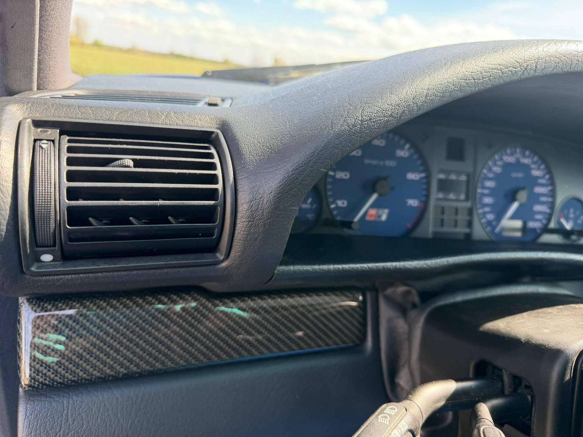 Das charakteristische Kombiinstrument mit bis 300 km/h skaliertem Tacho sowie das Drei-Speichen-Sportlenkrad unterstreichen den sportlichen Anspruch des Fahrzeugs. Hinweise auf altersbedingte Gebrauchsspuren liegen nahe, konkrete Details zum Zustand einzelner Komponenten sind jedoch nicht vollständig dokumentiert.