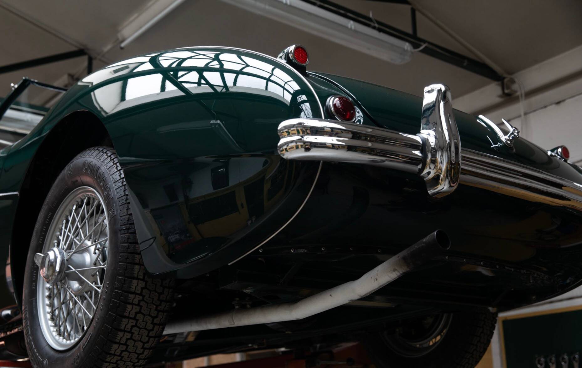With many years of experience, honing his craft purely with British sports cars, the passion and skill is evident in every detail. No corners were cut; no compromise was made. Every nut, bolt, and panel has been painstakingly rebuilt and restored to concours standards, resulting in a car that presents as a jewel-like example of the marque. From the perfect shut-lines of the bodywork to the precision work on the drivetrain, the Austin Healey exudes the feel of a car built by an individual who cares deeply about authenticity and quality.