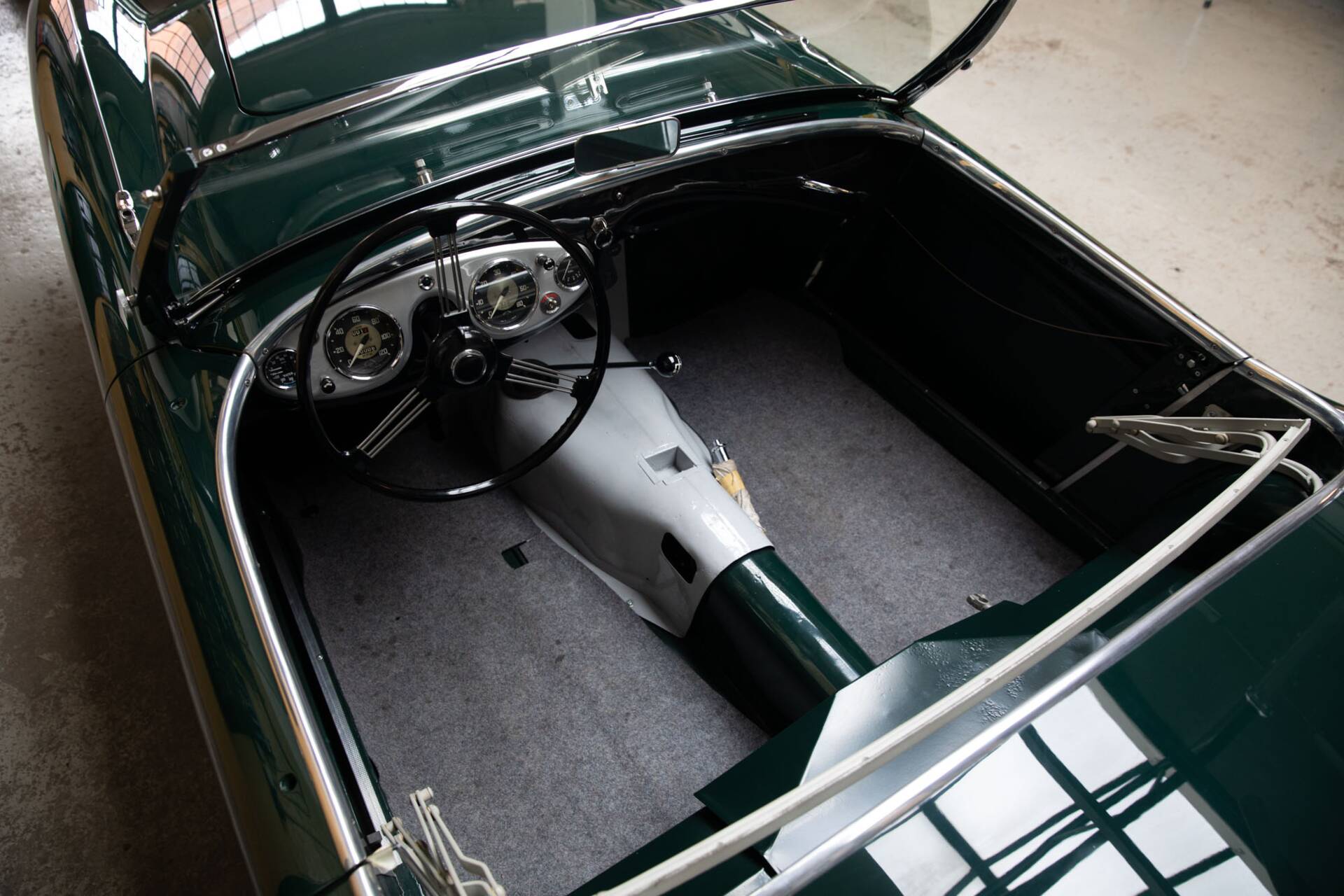 The car is complete and restored in all respects: the engine, mechanics, paintwork, brightwork and detailing are all finished to perfection. Only the interior and hood remains to be completed, offering a unique and rare opportunity for its next custodian to tailor the colour of the interior and hood to their exact specification.
