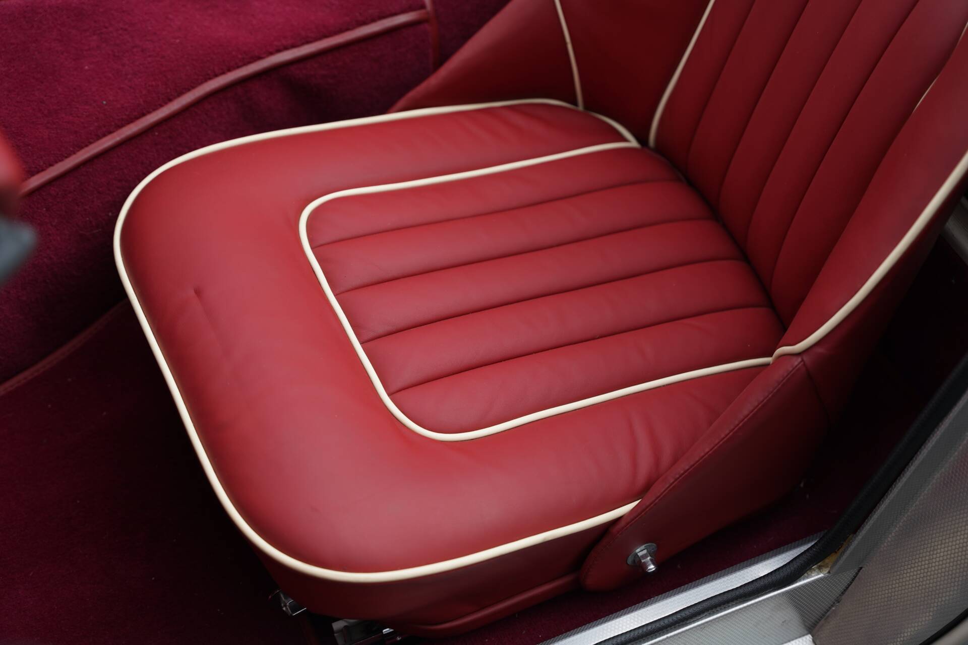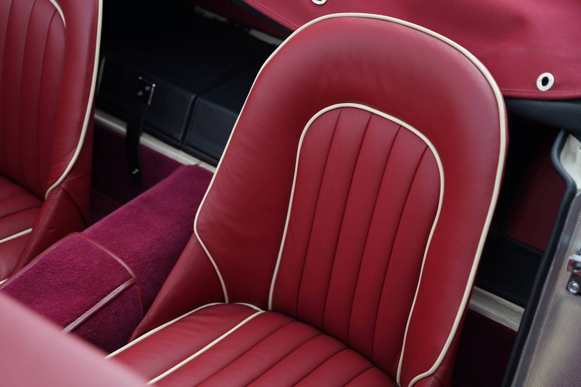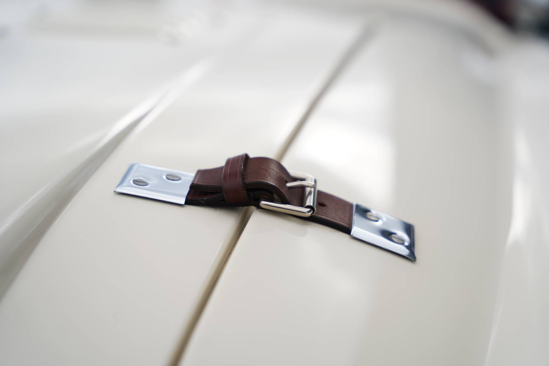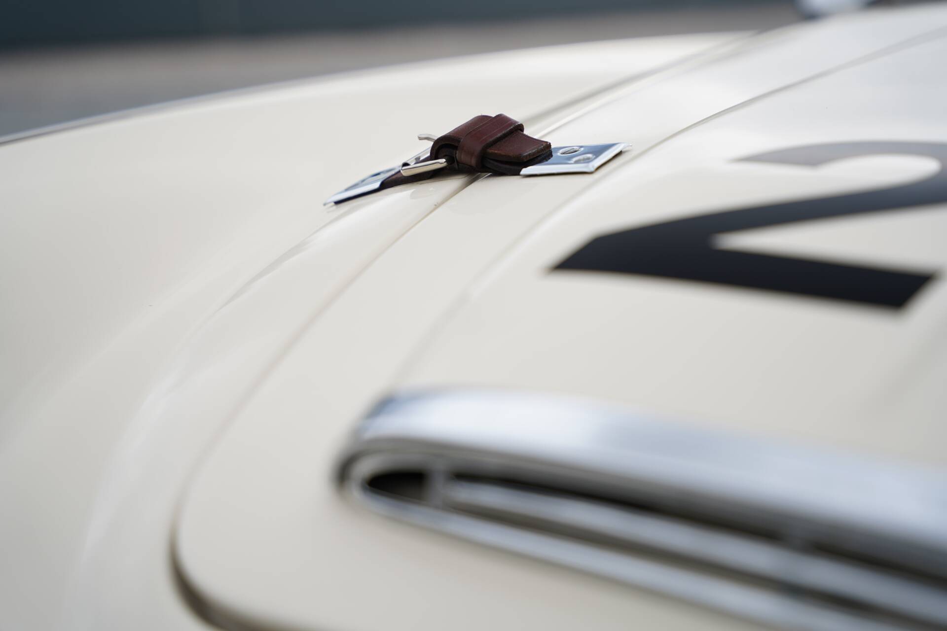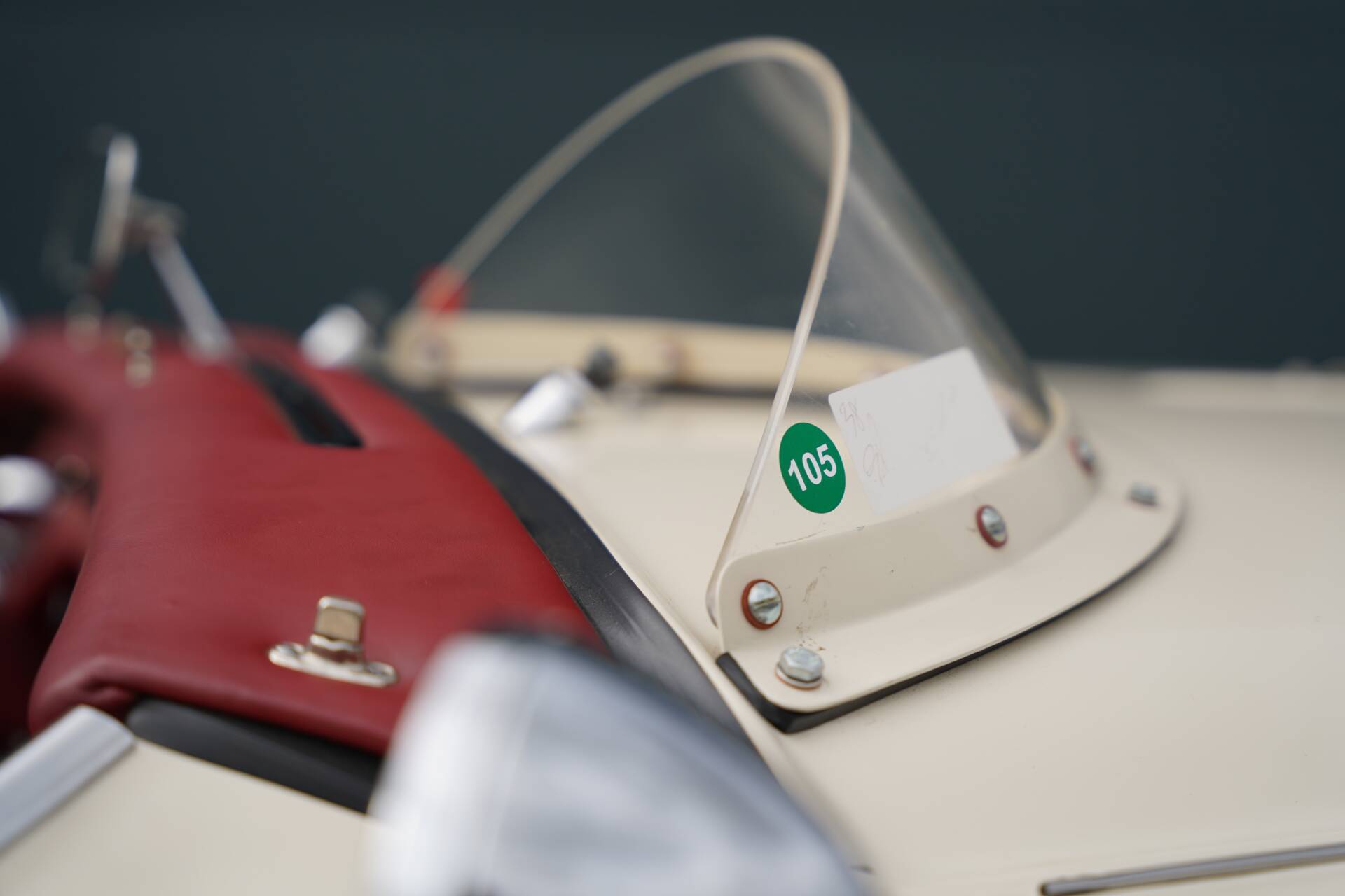 As the car sits today it has been comprehensively restored to a near concours show finish in its factory Ivory white over red trim by the talented team at CKL Developments. The restoration included the full preparation, gapping and paint to the all-aluminum bodywork, running gear and engine full overhaul and interior retrim. The car was built and then developed to a very competitive race specification whilst also not being over harsh for road use. In its current ‘aero screen’ format the car competed in the 2024 Goodwood Revival Fordwater Trophy driven by Tim Crighton and crossed the line in first place but subsequently finished second due to ‘red flag countback’. A race immortalised by the Goodwood Revival TV coverage making the car famous around the world.