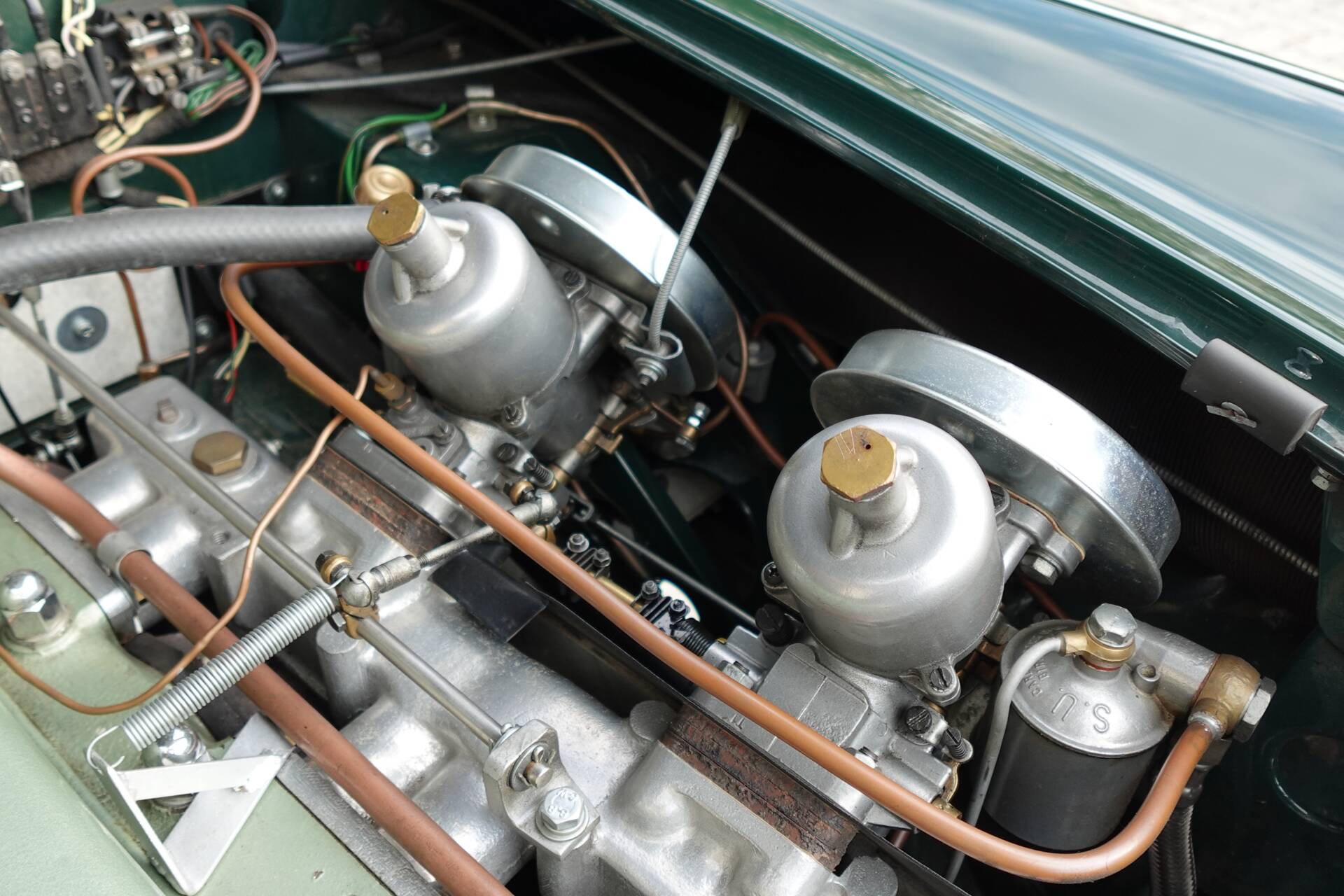 Der 100/6, den wir hier anbieten, ist ein BN6, also der weiterentwickelte 6-Zylinder mit 2.639 ccm und 117 PS Leistung, 4 Gang Schaltgetriebe mit elektr. schaltbarem Overdrive im 3. und 4. Gang. Es handelt sich um die begehrte 2-Sitzer Ausführung - in den meisten Augen wird diese als schöner empfunden, weil das Chassis um ca. 5cm kürzer- und die Linienführung damit etwas sportlicher wirkt, als bei den 2+2 Sitzern. Der 2-sitzige BN6 wurde nur von März 1958 bis März 1959 in gesamt 4.150 Stück produziert - 3.887 davon waren Linkslenker, 3.522 davon wurden nach USA exportiert - also knapp 85% der Gesamtproduktion!