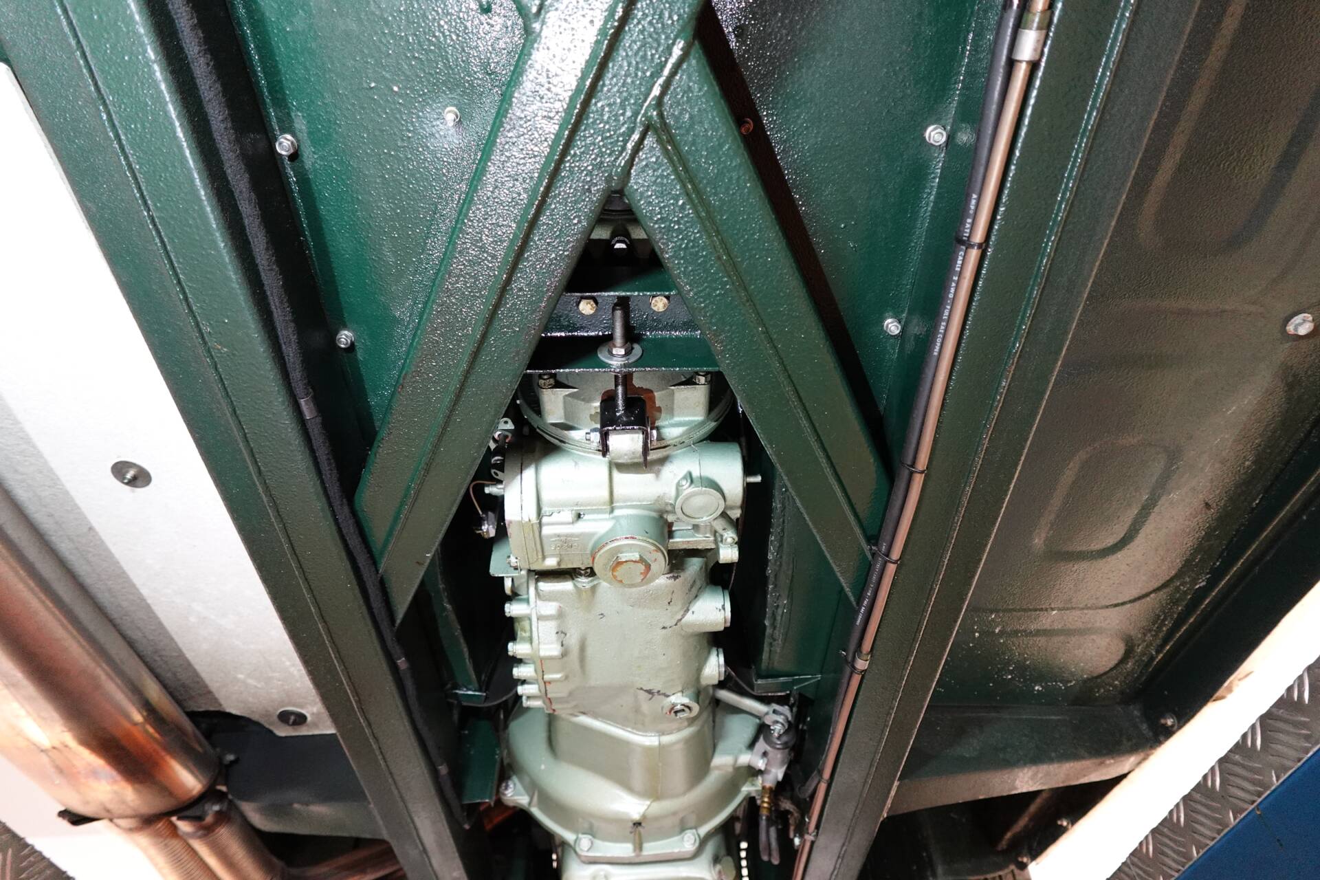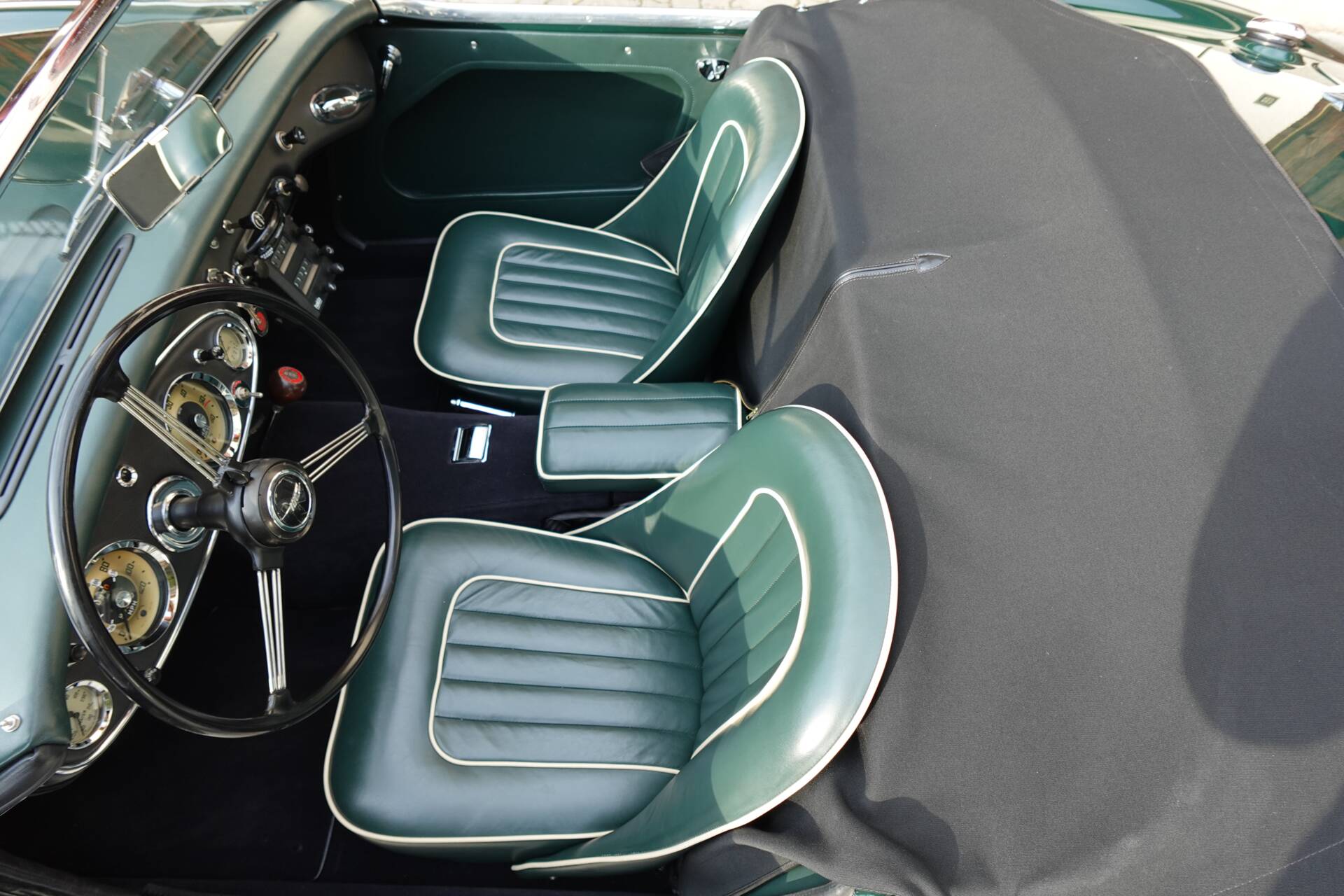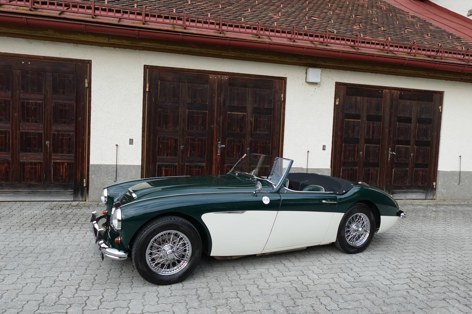 In originaler Zweifarbenlackierung " British Racing Green over Ivory White" lackiert, die Teppiche und Leder in Dark Green mit weissem Piping, wirkt der 100/6 sehr elegant. Im Zuge der Restaurierung wurden die vorderen Trommelbremsen gegen Scheiben getauscht - eine häufig durchgeführte Massnahme, die der Bremsleistung und Fahrsicherheit dient. Der Healey hat aktuell eine österr. historische Zulassung.