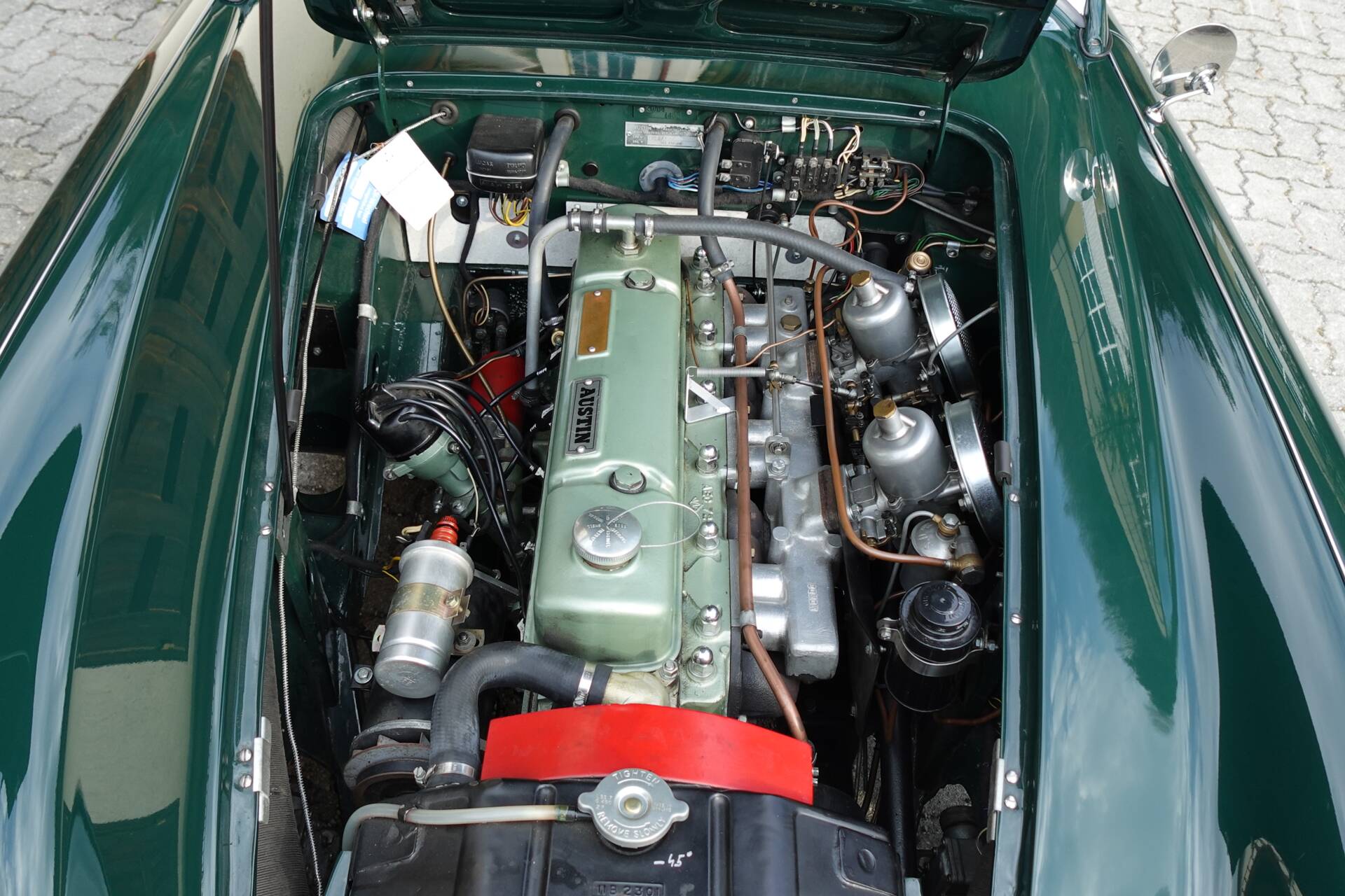 Gegenständlicher Healey wurde 1958 in die USA erstausgeliefert. Zur Historie des Fahrzeugs ist uns leider wenig bekannt. Jedenfalls wurde er von 2013 bis 2015 in Tschechien sehr aufwändig und professionell Frame-off restauriert. Karosserie, Rahmen, alle Technik Komponenten, Motor, Getriebe, Achsen, Bremsen, Elektrik, Interieur wurden komplett überholt. Diese Arbeiten sind mit vielen Bildern belegt, und die Qualität der Restauration spricht für sich, da sich der Healey auch nach über 10 Jahren seit Fertigstellung, in hervorragendem Zustand befindet - ich denke die Bilder sprechen für sich.