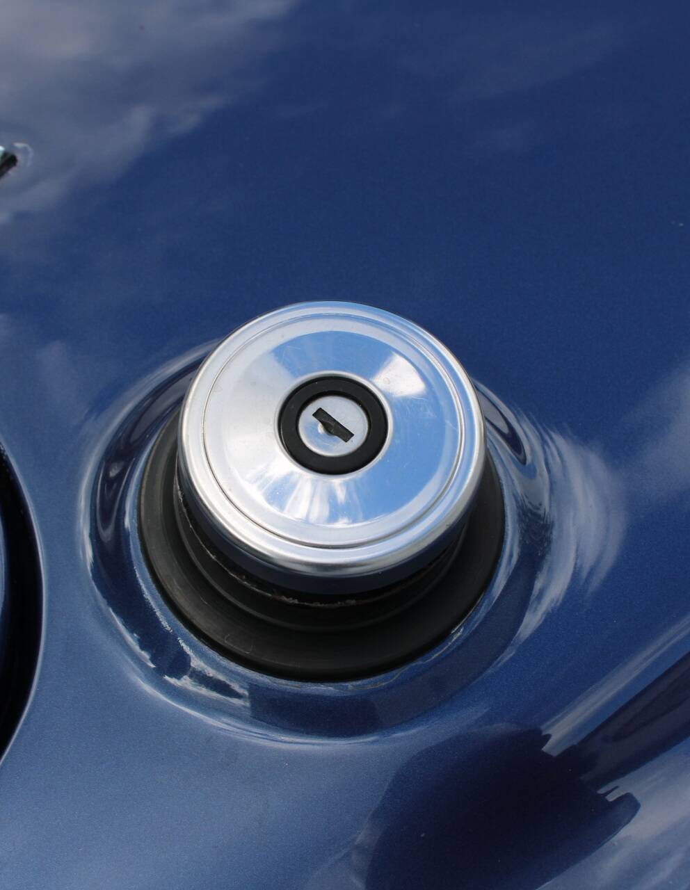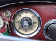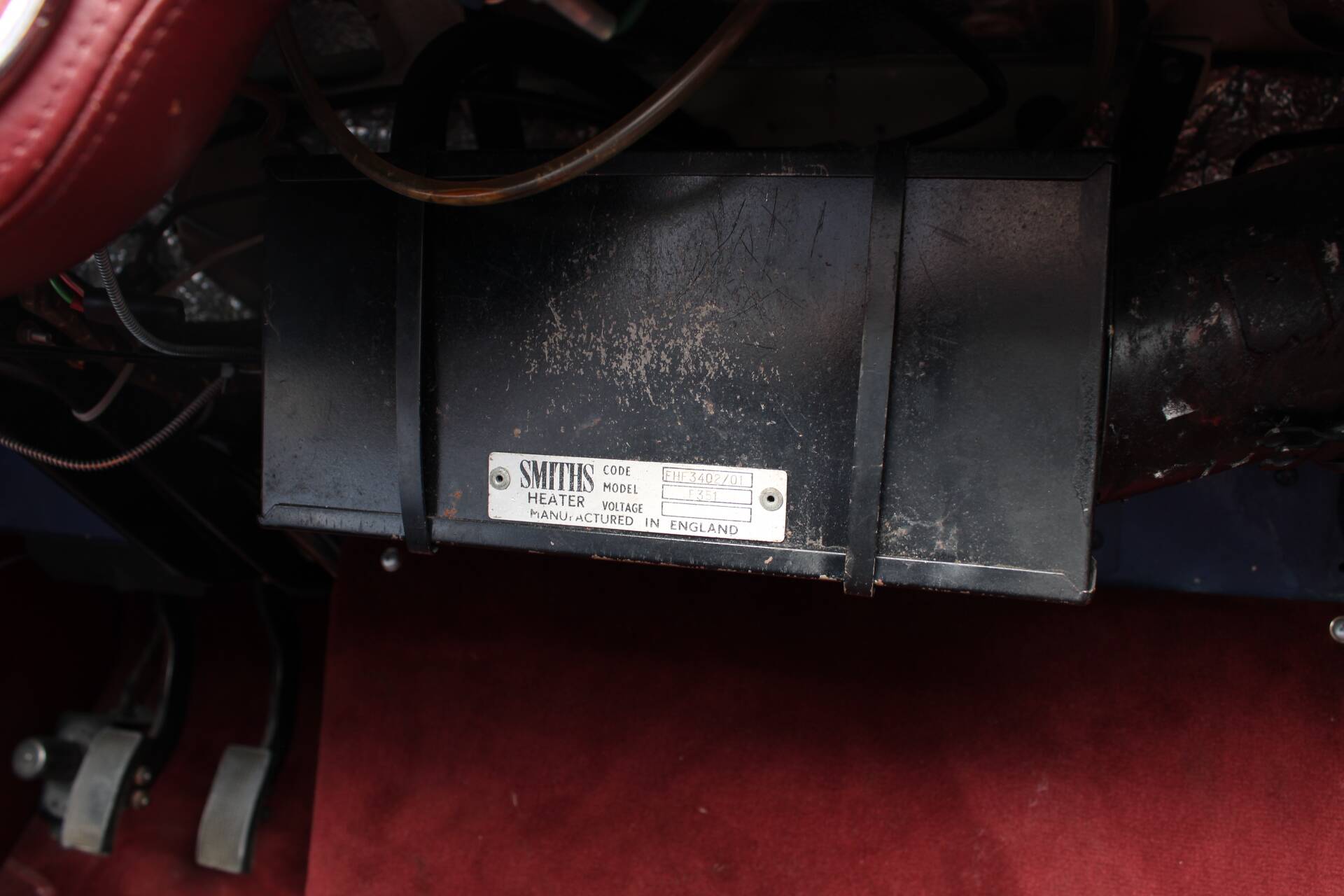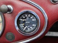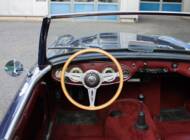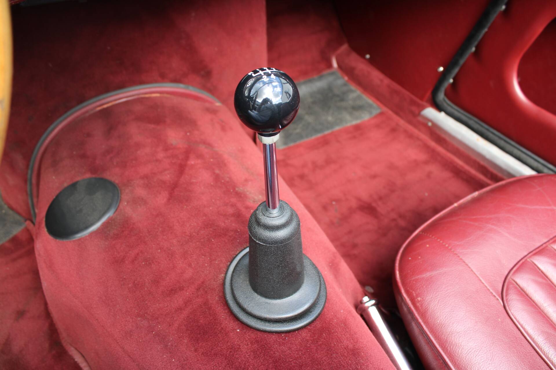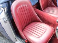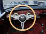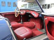 As this is a purist English sports car from the 1960s, the features are rather spartan. Passengers take their seats on high-quality red Connolly leather seats. The English car is steered via a three-spoke wooden steering wheel and has a manual gearbox, in this case a retrofitted Getrag sports gearbox with shortened five gears. The built-in heating allows for a convertible experience even on cooler days.