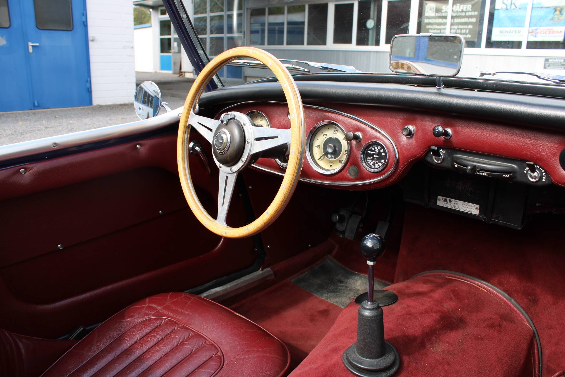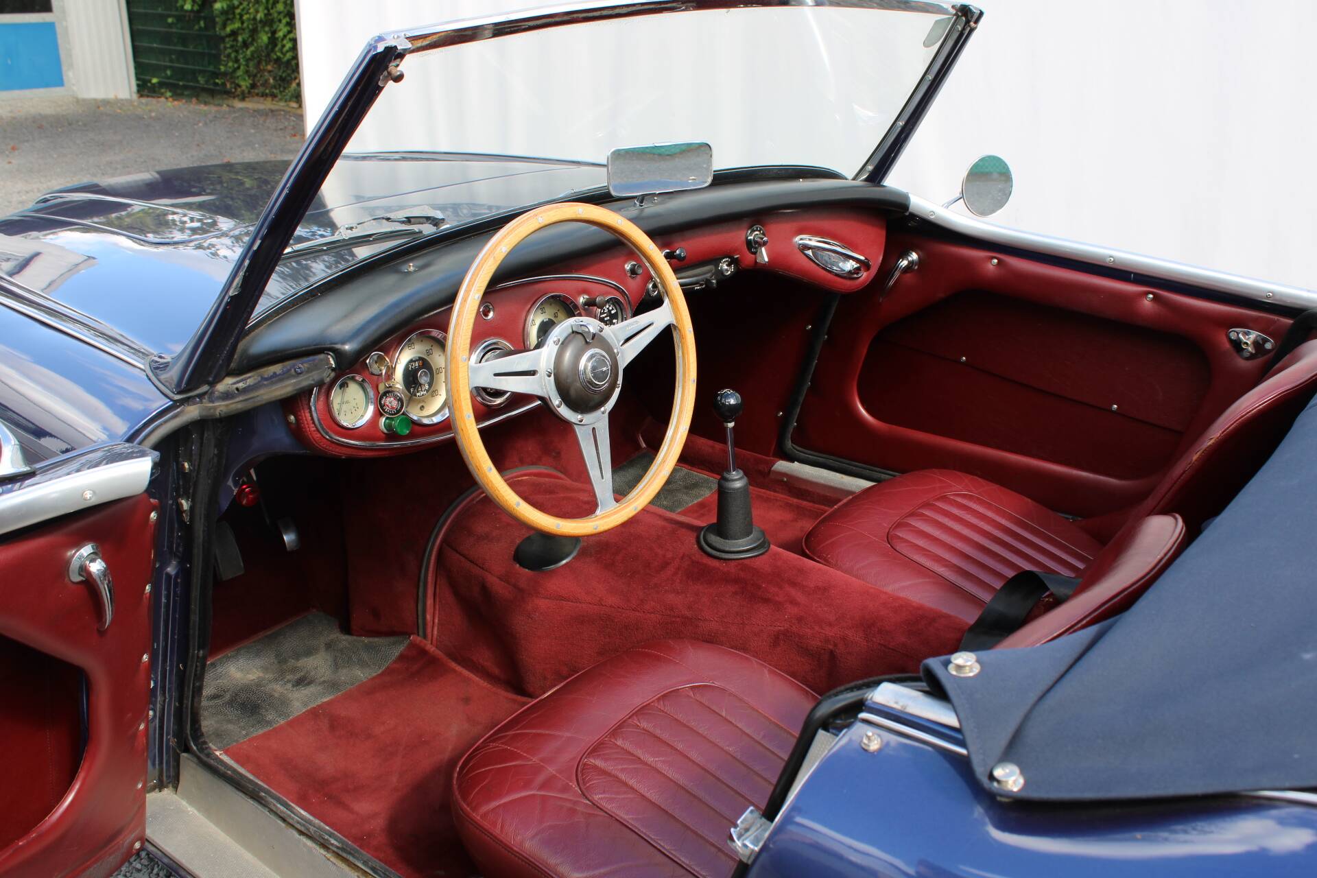 The model offered here was first registered in July 1960, making it one of the first vehicles produced. It has been owned by the current owner since 2022. In the 1990s, it underwent an extensive overhaul, which included the installation of a different engine: an early original Austin-Healey engine with 2,616 cubic centimetres, which was only installed for a little over a year. This engine is registered and H-compliant. As part of this overhaul, a 5-speed Getrag gearbox with shorter shift travel was also installed. The mileage is approximately 61,500 miles (99,000 km). The current owner last had the following service work carried out in 2022.