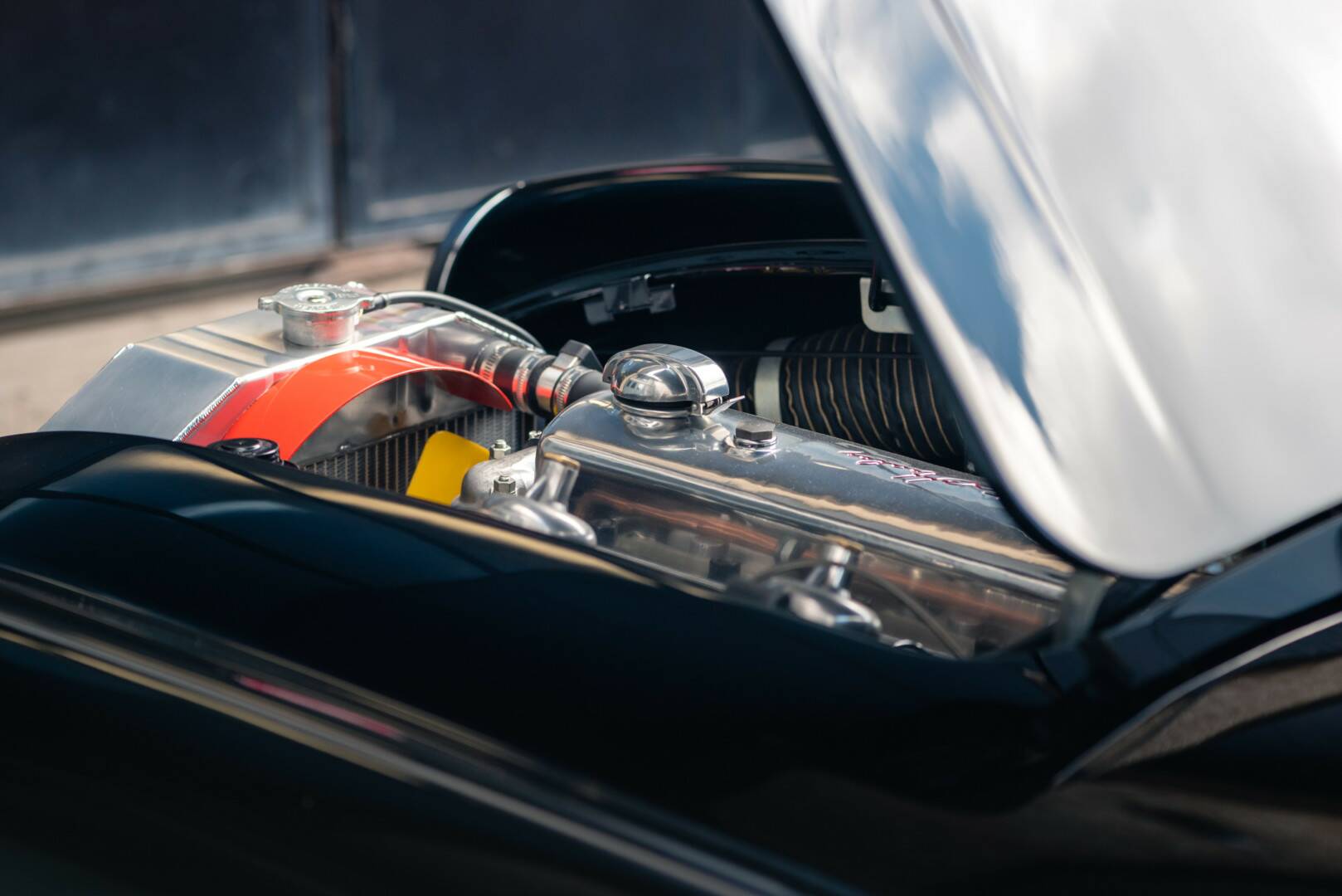 La voiture, initialement livrée en Colorado Red, a été restaurée en noir. Aujourd’hui, elle se présente en parfait état, avec des ajustements de caisse précis et des portes et capots parfaitement alignés.