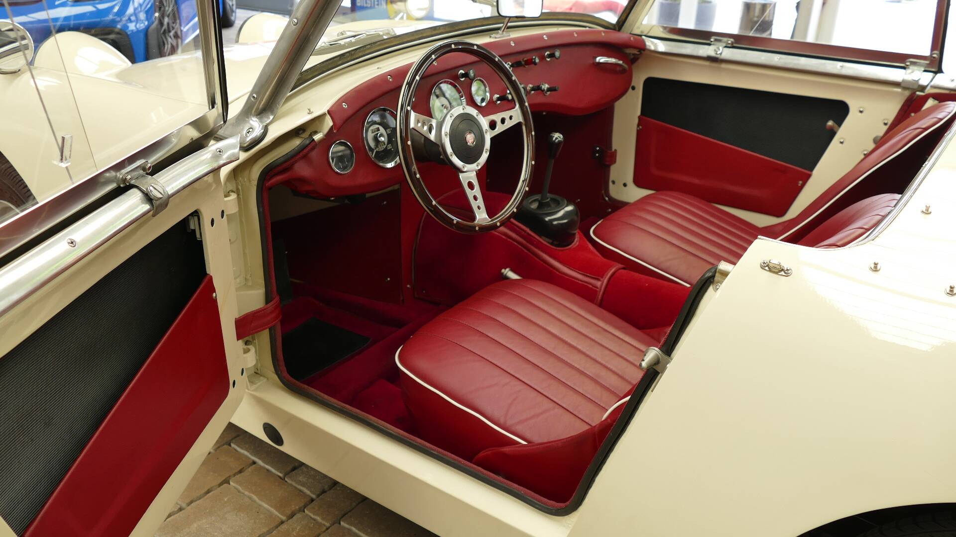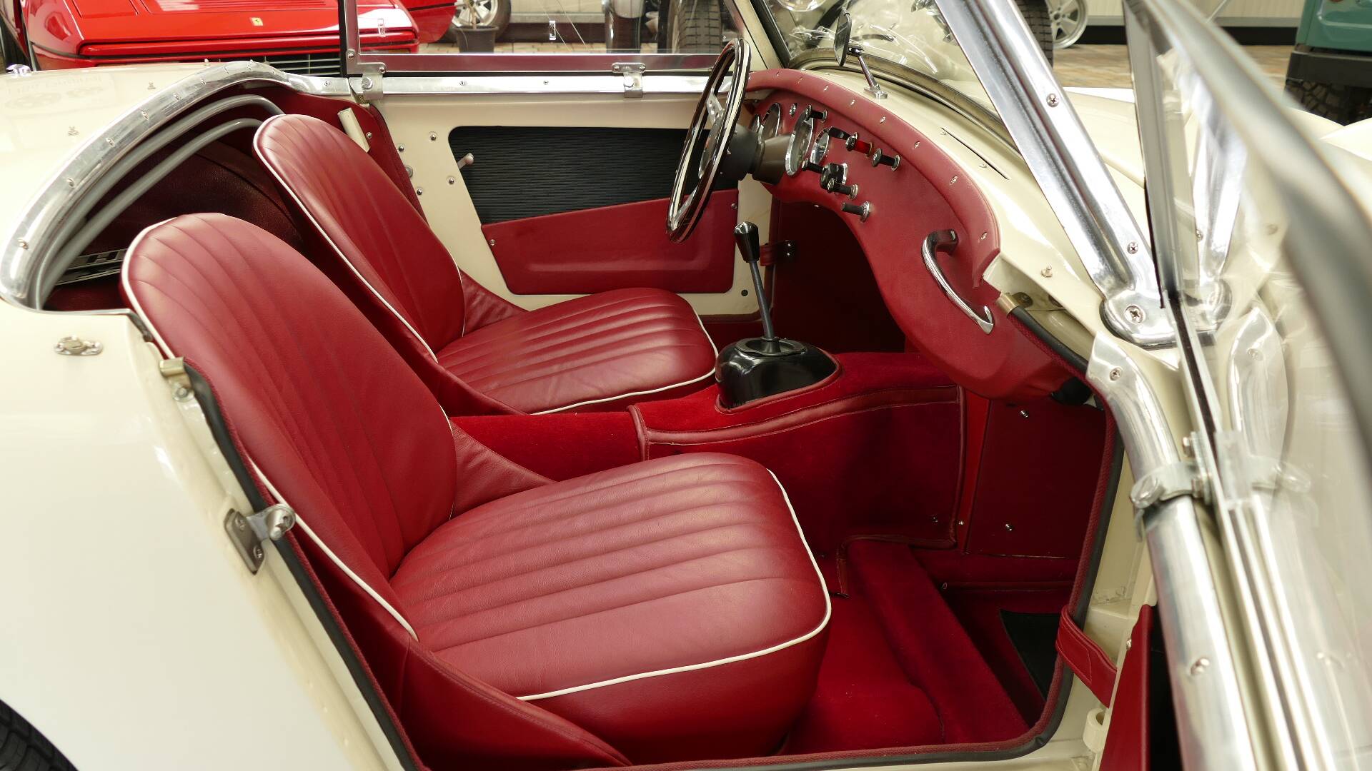 Lundtauto Classic bietet im Kundenauftrag einen wunderschönen und super gepflegten Austin Healey Sprite MK1 an. Das Fahrzeug besitzt eine sehr klassische Farbkombination: cremeweiß mit schwarzem Verdeck und roter Innenausstattung (Original Grün mit dunkelgrüner Innenausstattung). Der Healey wurde 1959 in Amerika ausgeliefert und ist seit 2002 in Deutschland. Das Fahrzeug wurde zwischen 2002 und 2013 restauriert. Die aktuelle Halterin besitzt den Wagen seit 2016.