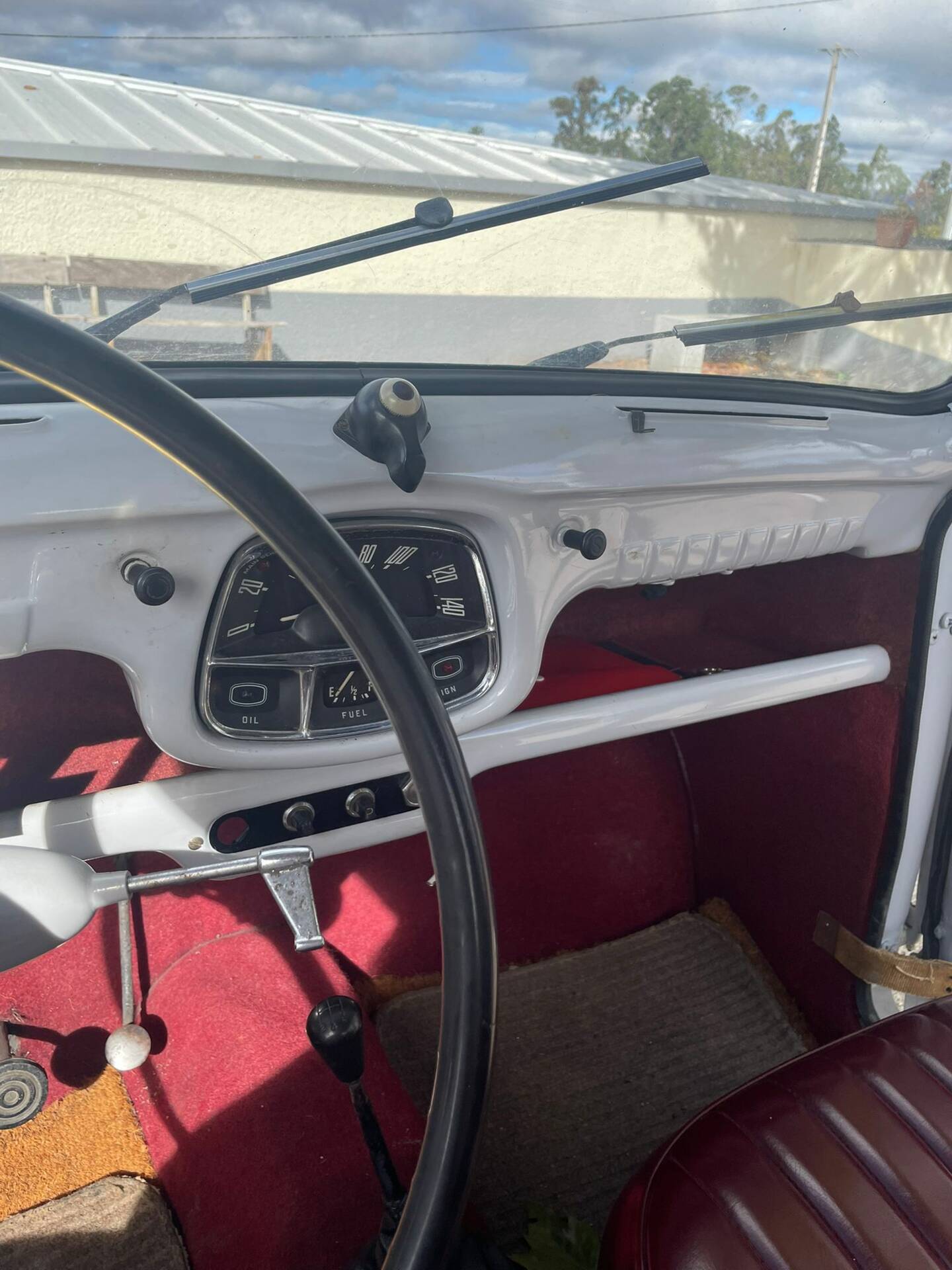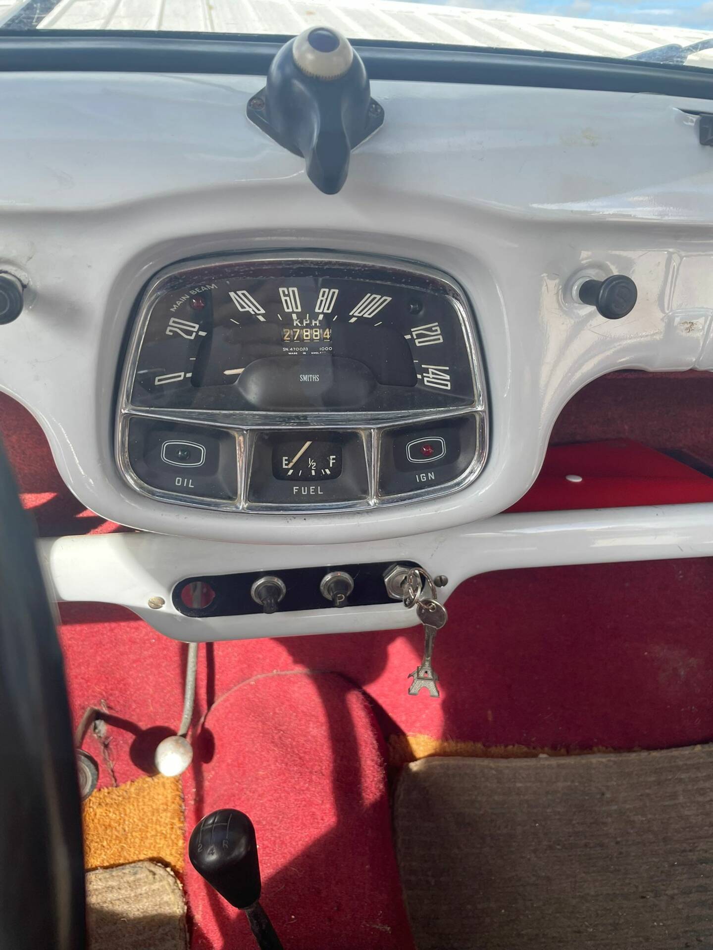 ✅ Year 1959 – officially older than many of its owners ✅ Original look with patina and character ✅ No flashy British Racing Green – just honest paint and classic chrome ✅ Interior lovingly preserved with period vinyl, body-coloured steering wheel, and a gear lever that looks like a teaspoon ✅ Technically sound, regularly serviced, and ready for any Sunday drive