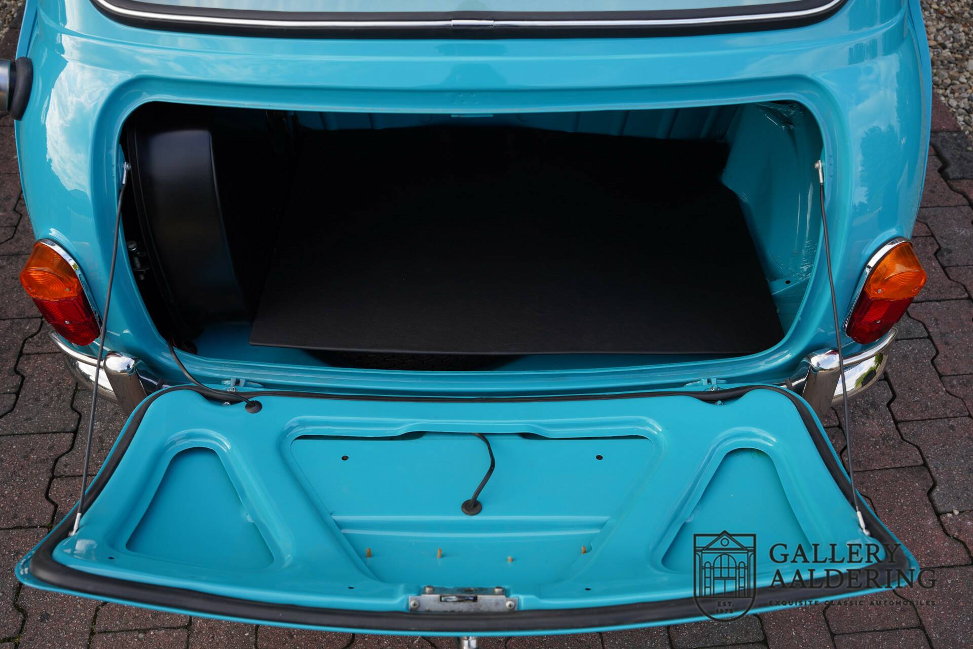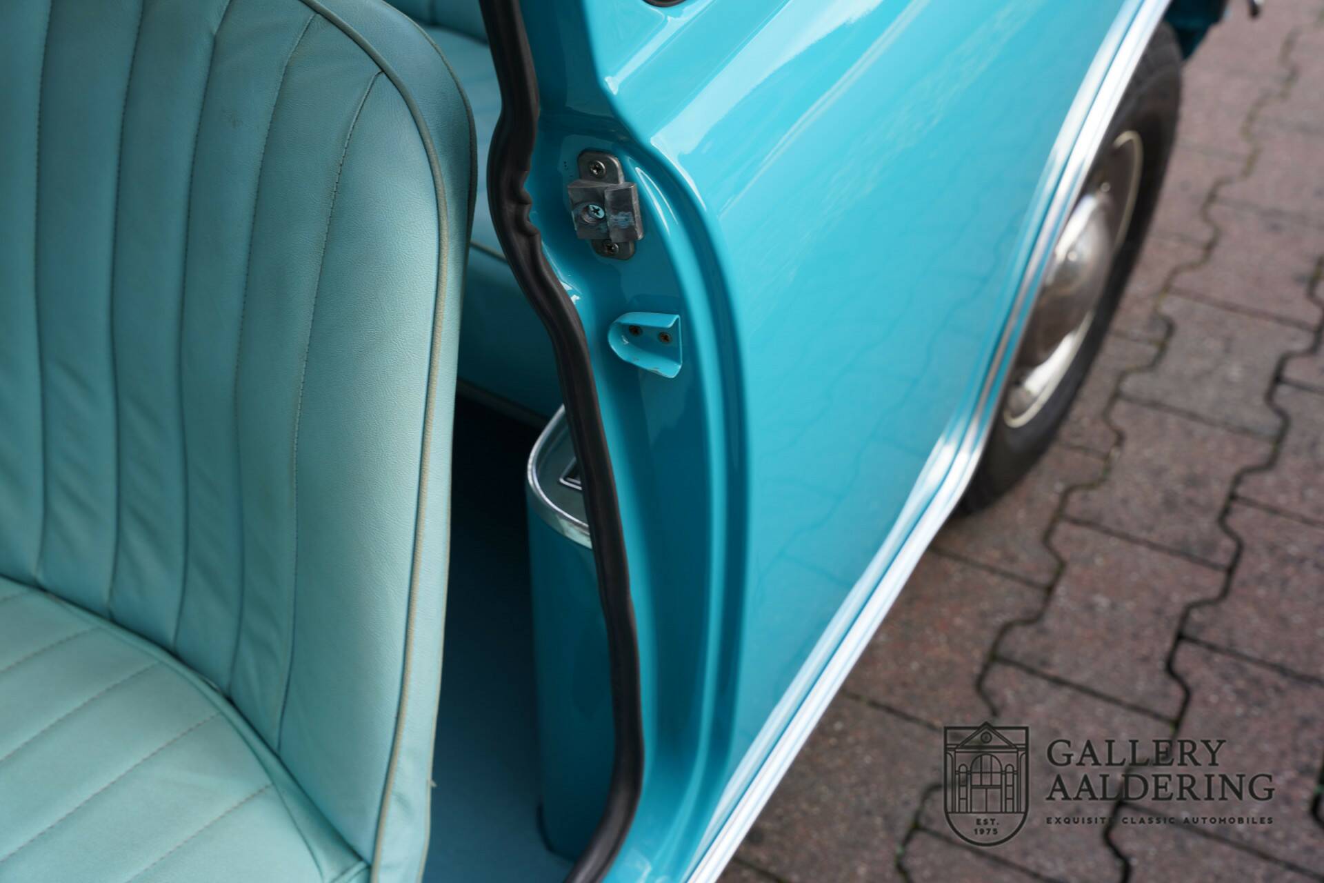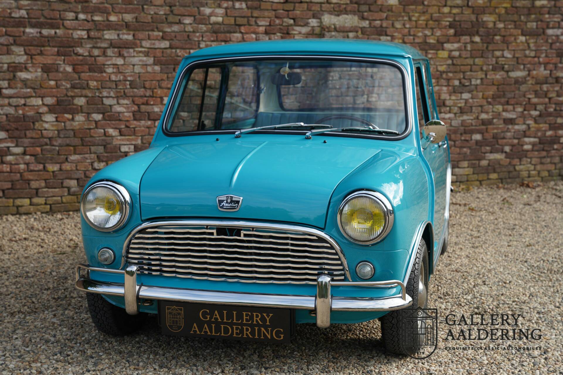 This beautiful Gulf blue Austin Mini De Luxe left the factory in January 1964 and went straight to France. There the car was eventually completely and very professionally restored. The restoration was so professional that he made it to the Swedish car magazines with the Mini. An extensive restoration which, years later, can still be determined to have been expertly carried out. The paint is still beautiful, and measures these wonderful values. In addition, the body and underside of the Mini are in very good condition.