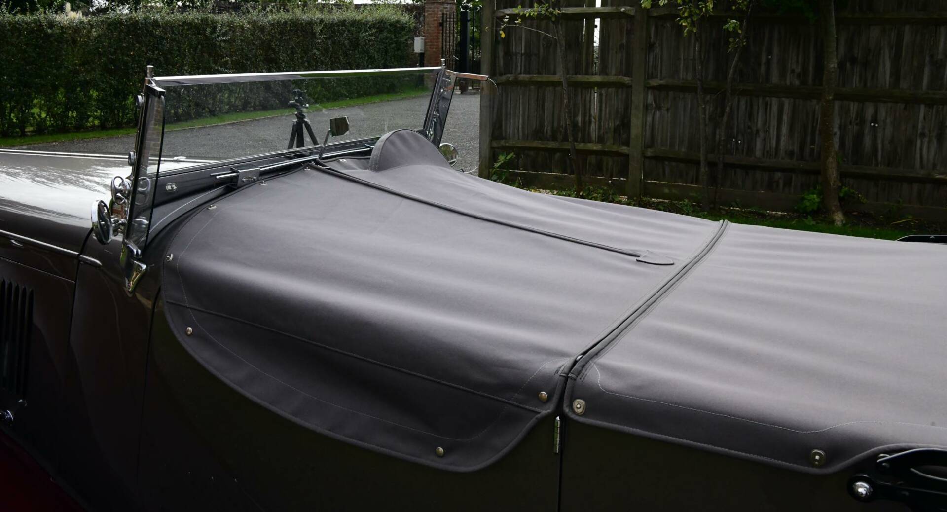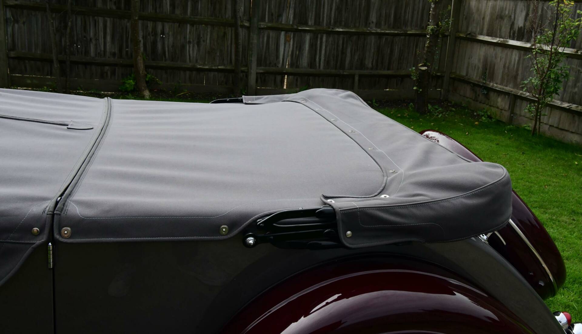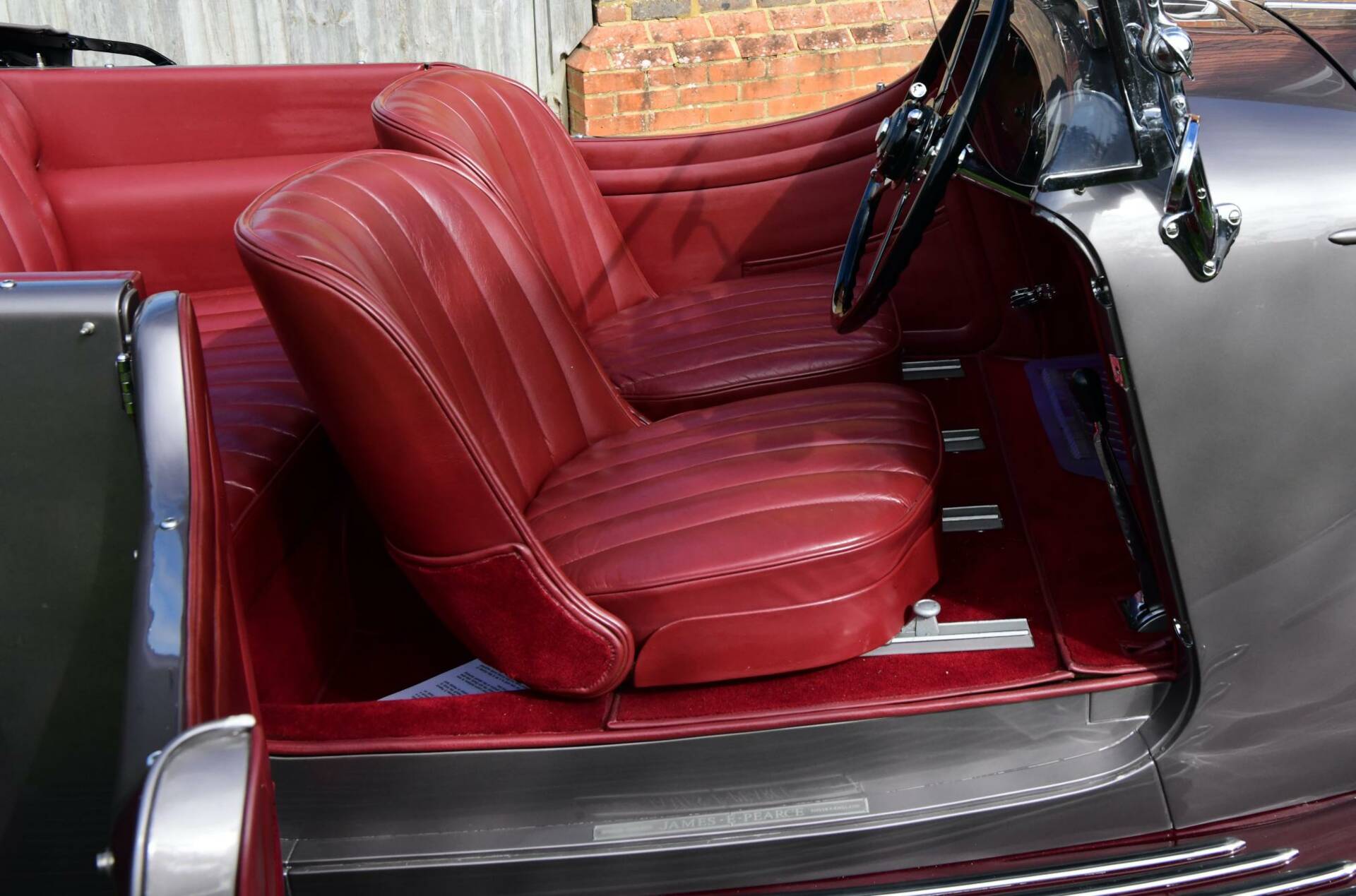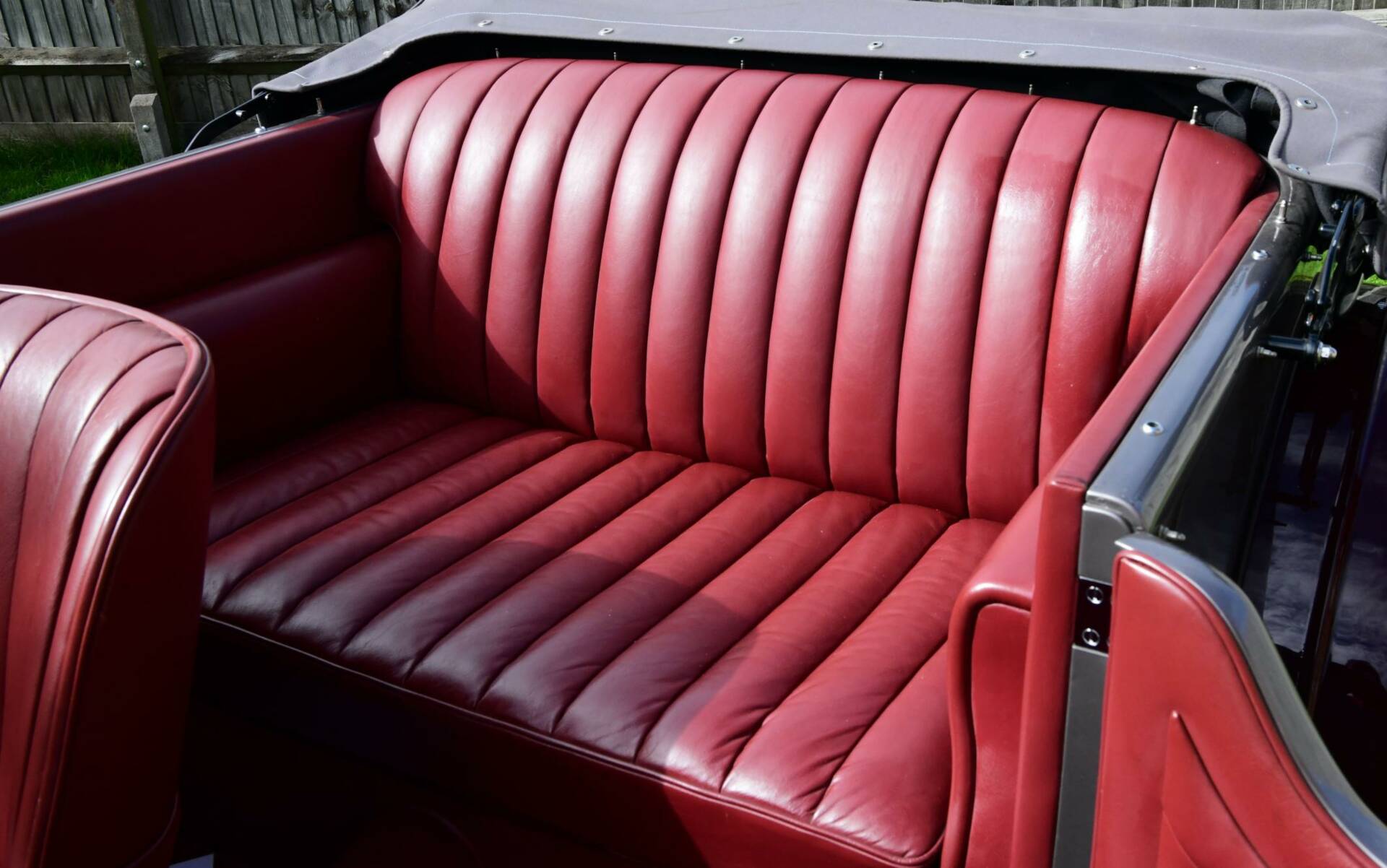 Body Work was entrusted to well known expert in the field of coachbuilding; James Pearce who did a masterful job of constructing an open tourer body with Vanden Plas being the inspiration for the design. Construction is a traditional Ash frame, itself a thing of beauty, overlaid with aluminium panels in the traditional manner. Drawing upon their extensive experience they got the lines just right producing a pretty car that looks wonderful from any angle. The car was then painted in burgundy with pewter as a secondary colour. The interior was beautifully upholstered in maroon leather along with matching carpets. A very high quality grey hood & matching tonneau cover were installed to complete the car.