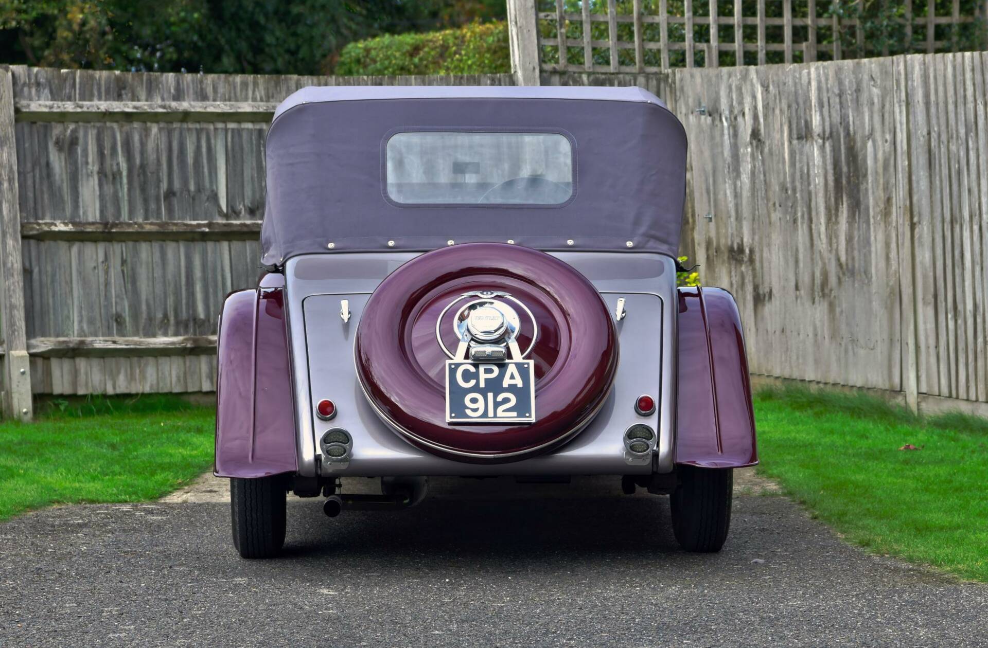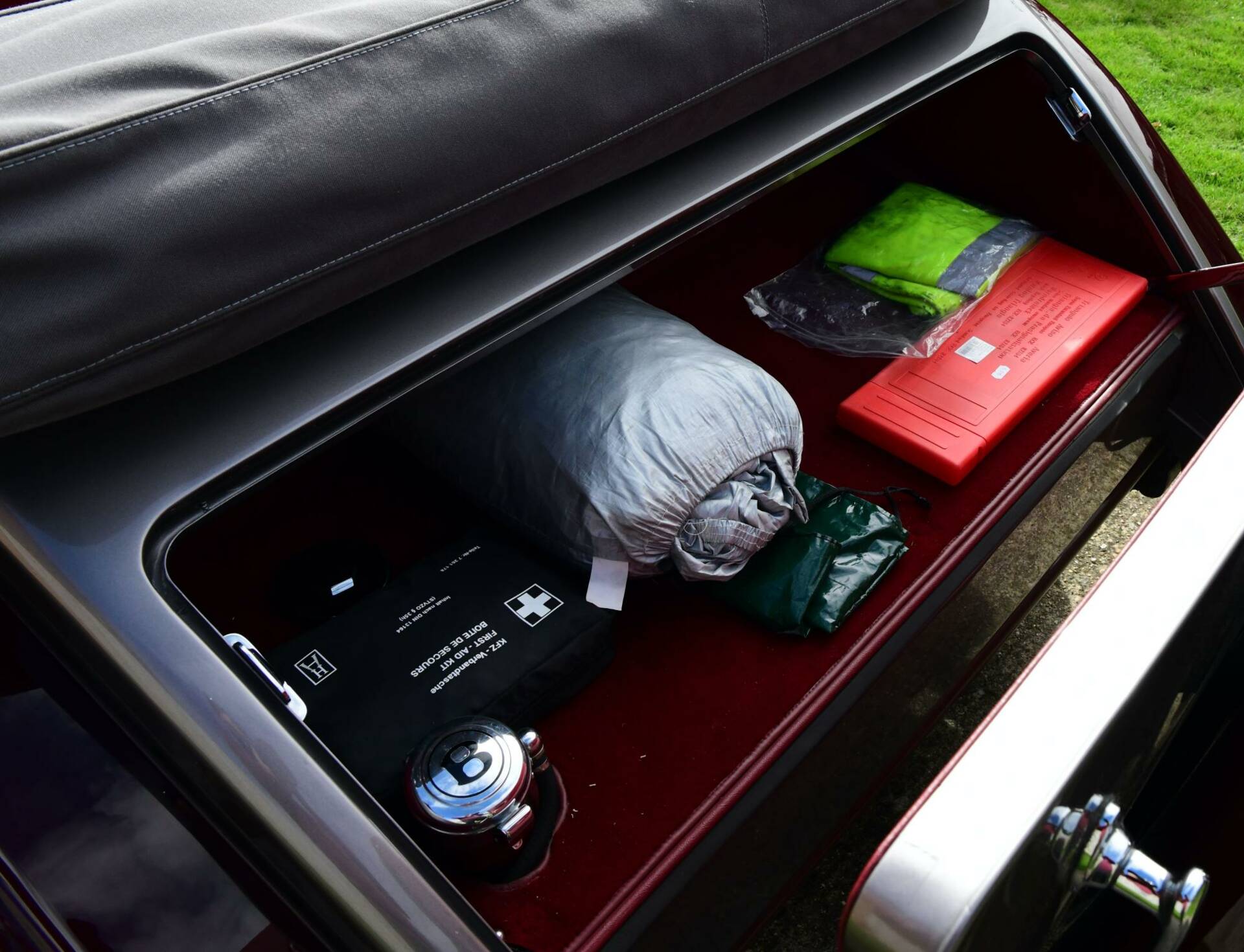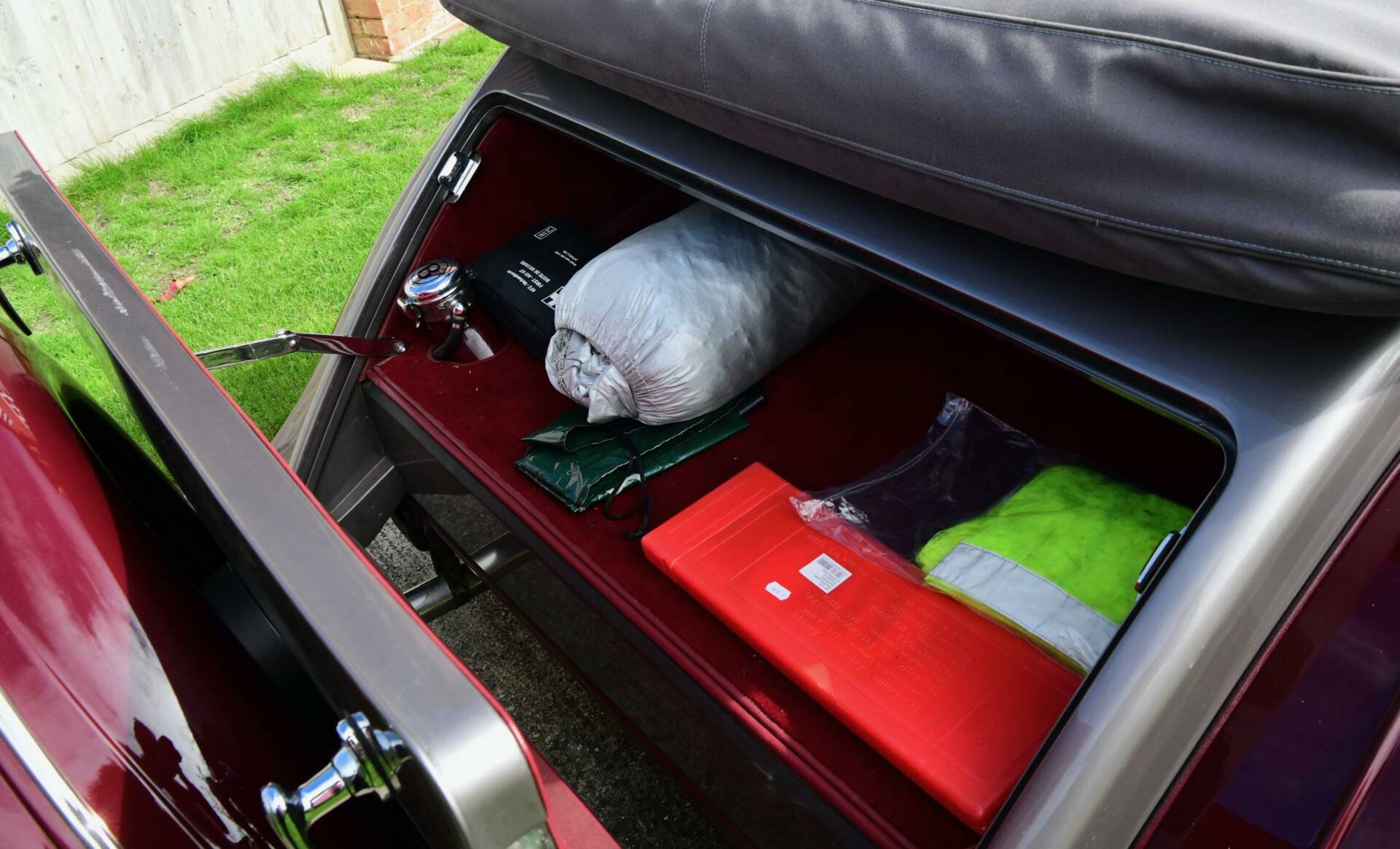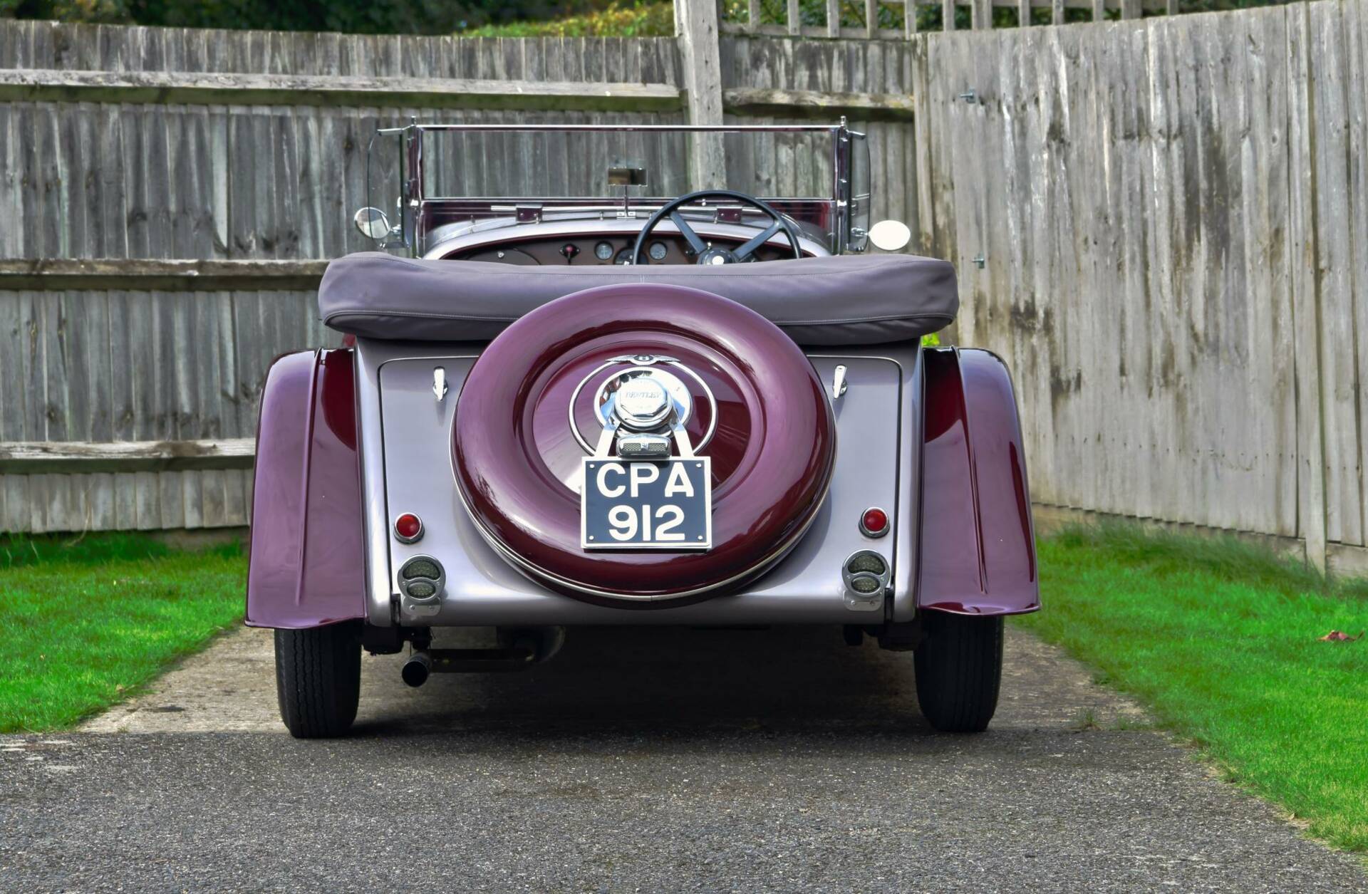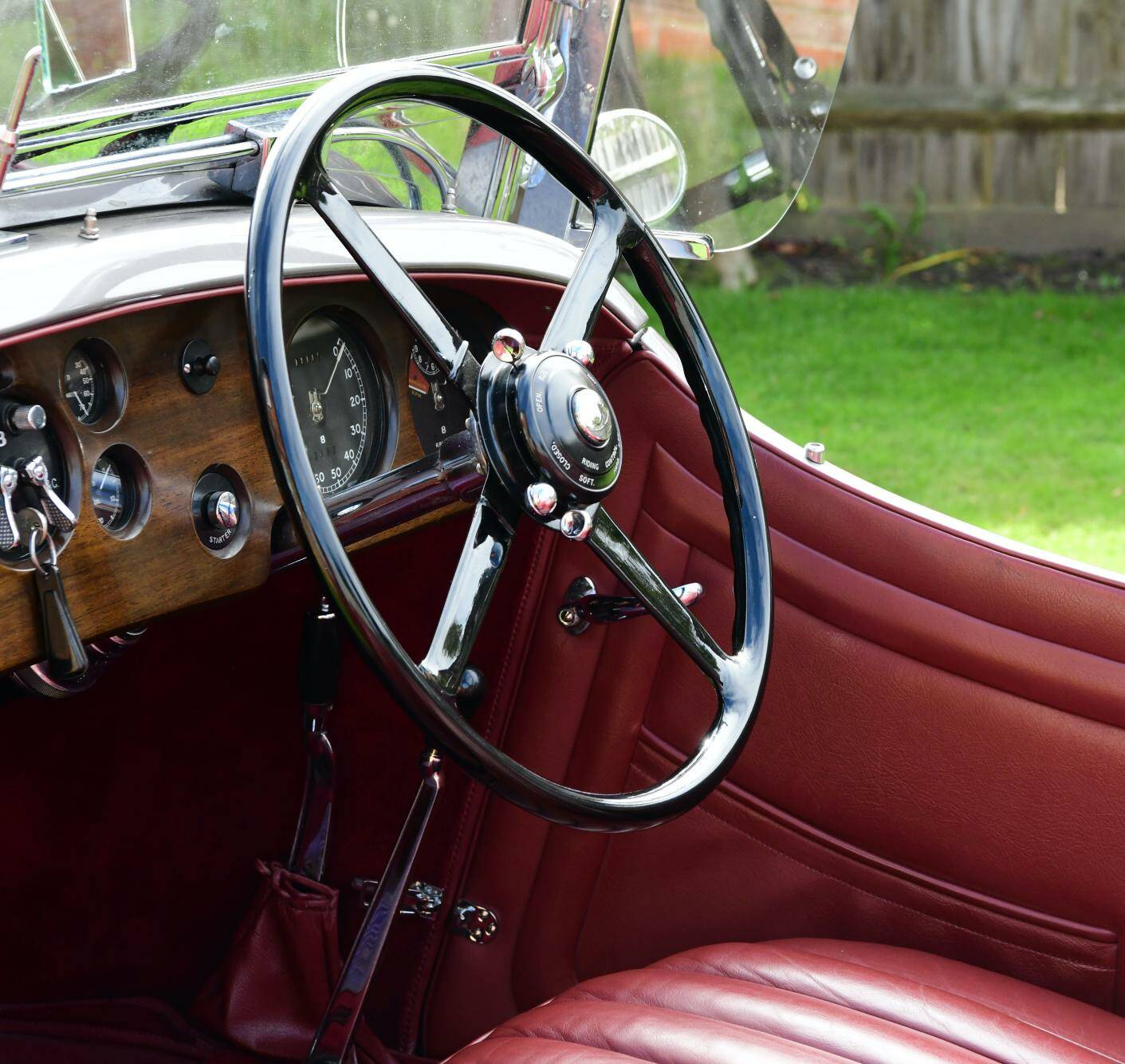 Body Work was entrusted to well known expert in the field of coachbuilding; James Pearce who did a masterful job of constructing an open tourer body with Vanden Plas being the inspiration for the design. Construction is a traditional Ash frame, itself a thing of beauty, overlaid with aluminium panels in the traditional manner. Drawing upon their extensive experience they got the lines just right producing a pretty car that looks wonderful from any angle. The car was then painted in burgundy with pewter as a secondary colour. The interior was beautifully upholstered in maroon leather along with matching carpets. A very high quality grey hood & matching tonneau cover were installed to complete the car.