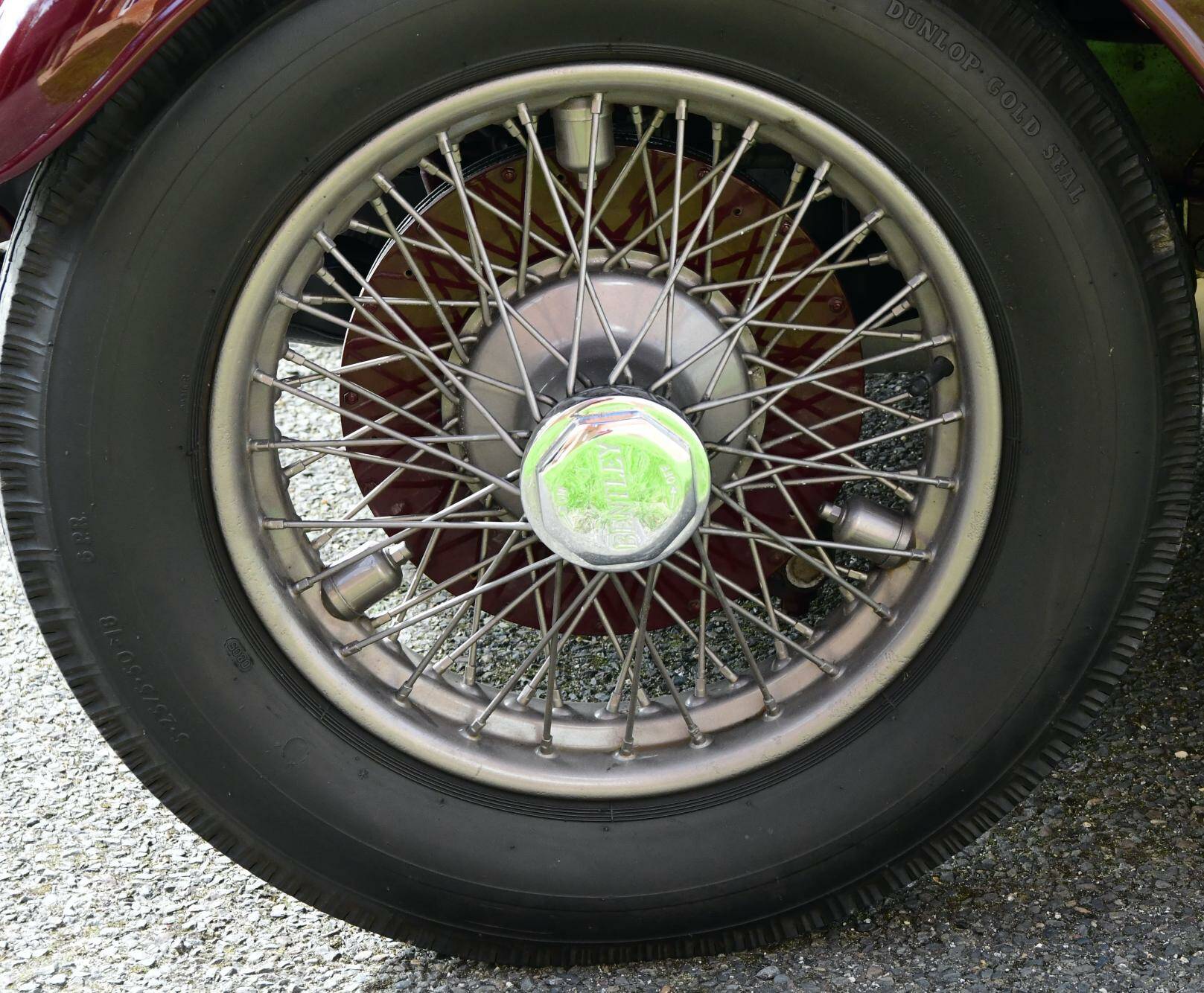 Once finished the car was offered for sale some 11 years ago with 89529 recorded miles on the odometer. The car has now covered 94000 miles so has seen very little but regular use since it was finished. A good file of bills & restoration pictures from Seargeants comes with the car. The chassis was powder coated to maroon prior to the body being installed & the wheels in Pewter grey. Recently a new wheel cover, Overdrive and signle wing Flying B have been fitted, really completing the look of the car; the overdrive makes it a lot more relaxed on motorway journeys making it a great car for long distance touring.