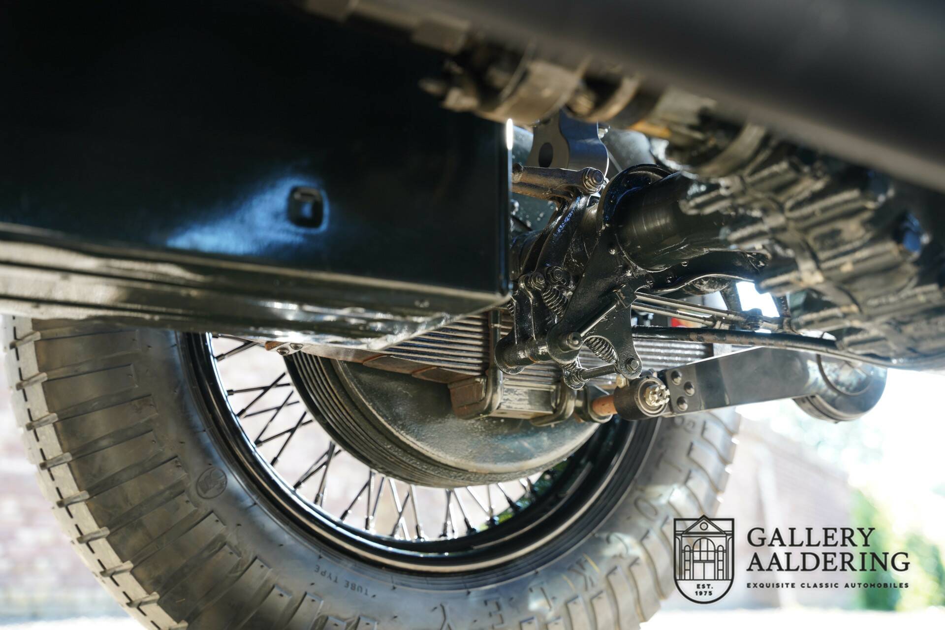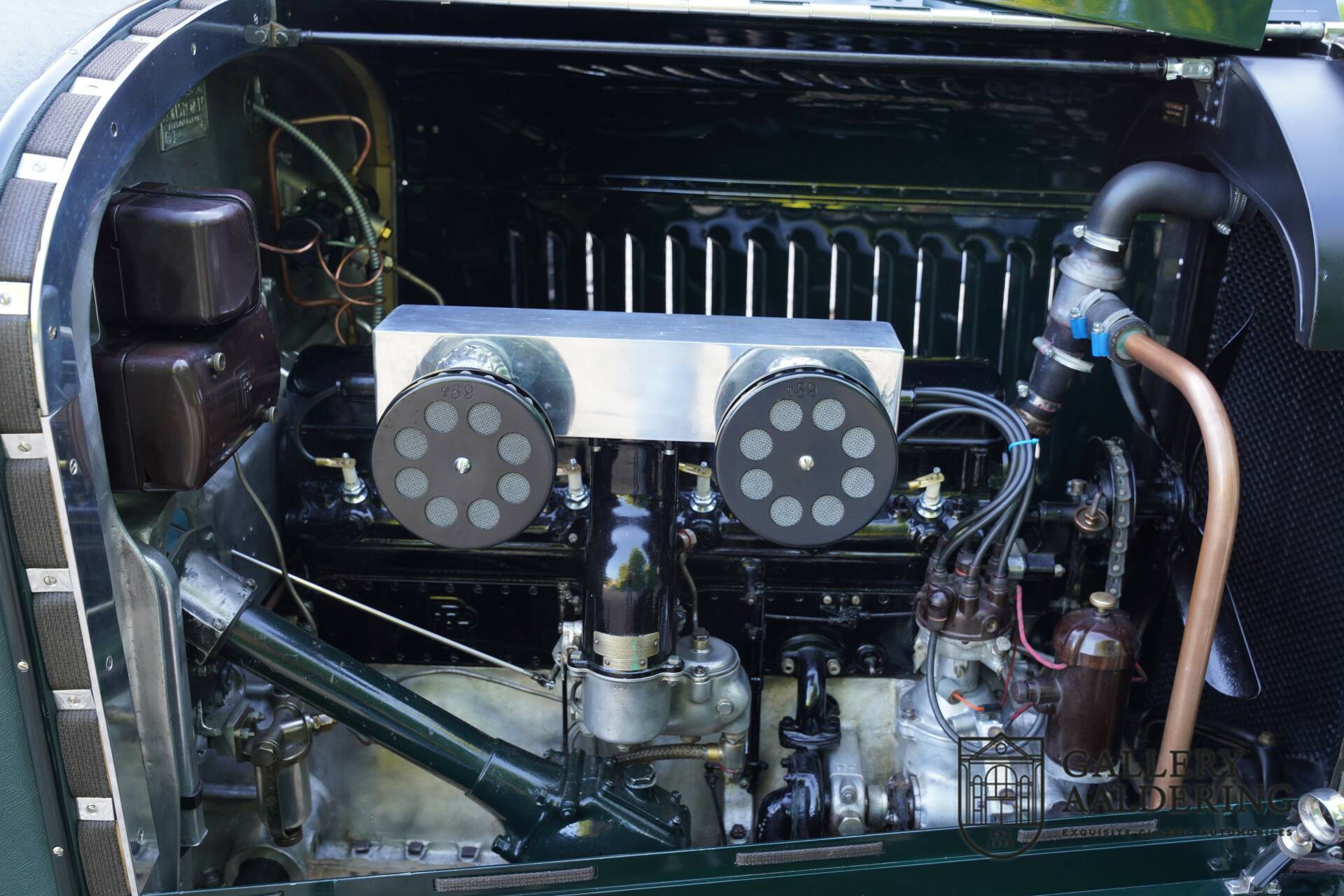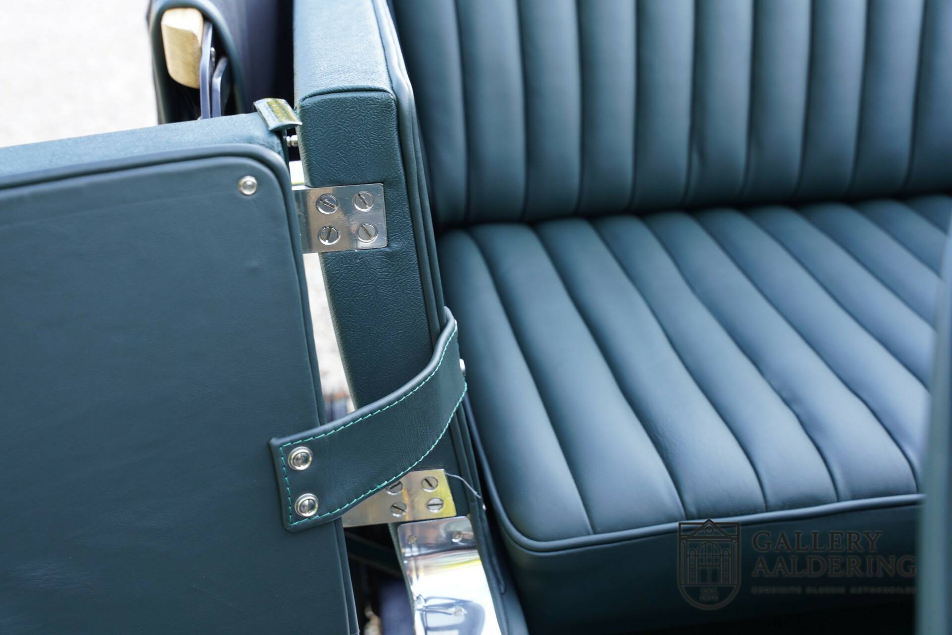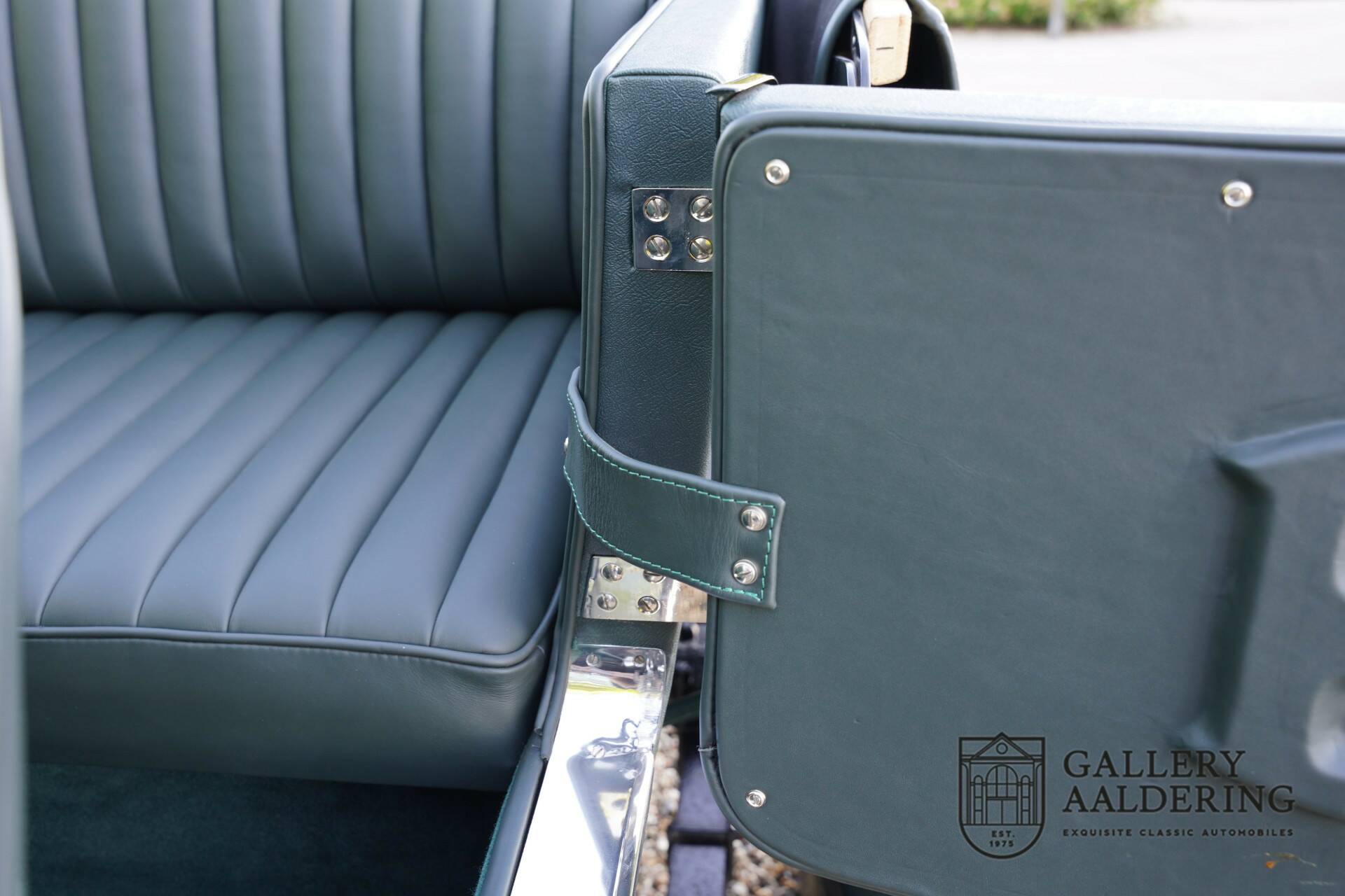Originally, this car might have been a spacious, luxurious saloon, but now it has been transformed into a stunning classic racing machine, reminiscent of the beautiful Pre-war Bentley Le Mans racers. The bodywork is gorgeous and in optimal condition. The fantastic brightwork details beautifully contrast with the dark green paint and partially green leather-clad body.