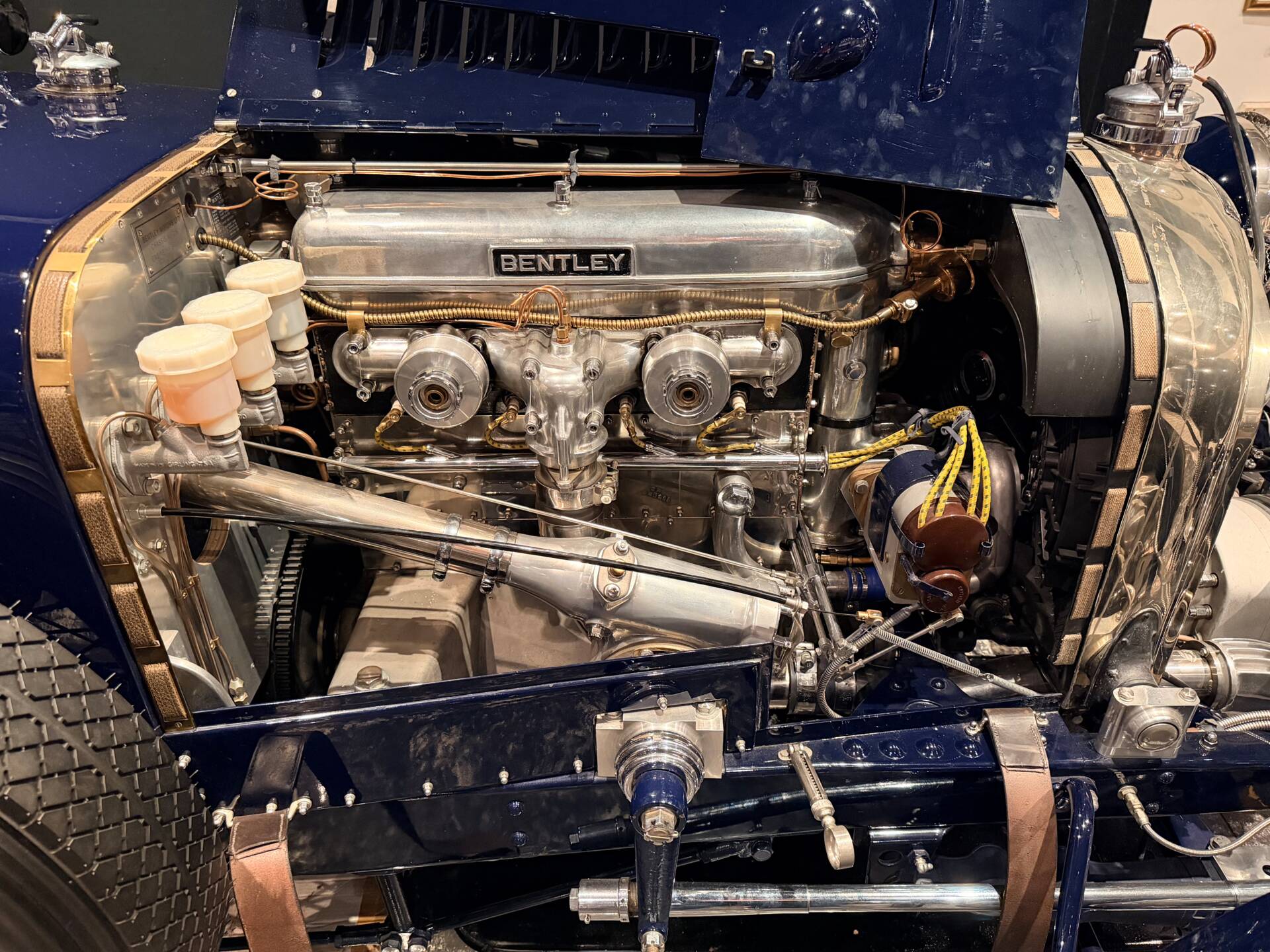 This car is based on the short standard 9' 9½" wheelbase chassis no. 216, which left the factory in April 1923 fitted with engine number 217 and was originally supplied new to Mrs Gilbey. The chassis has since been entrusted to respected marque specialists Green Farm Racing (Julian Ghosh), who modified it to incorporate correct Blower cross members. Creating a Blower specification requires the removal of two sections of the original chassis frame, a process carried out correctly and in period style. The chassis is clearly and correctly stamped #216 on the rear dumb-iron, with correspondence on file from Julian Ghosh confirming its identity as a genuine 3-Litre chassis.