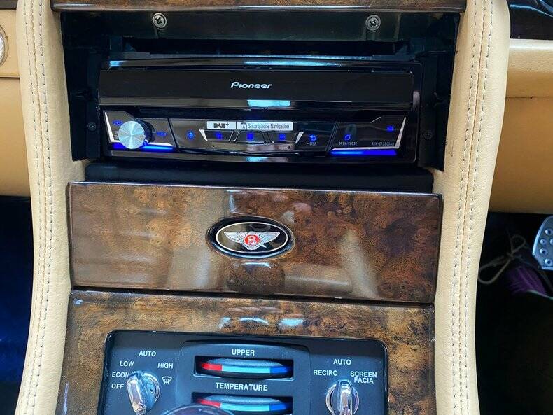The pinnacle of the SZ series of Bentley, the 'R' Mulliner is specified to the hilt, unique 18" alloy wheels, wing vents, bespoke lower front spoiler with stainless steel mesch inserts, single exhaust tail pipe, drilled pedals, chrome bezels to instruments, dark stained walnut veneers, magazine nets to rear of front seats, embossed flying 'B' motifs to seat headrests, split top roll, steering wheel, chrome gear knob top, red starter button and an inlaid 'R' Mulliner badge to the radio flap