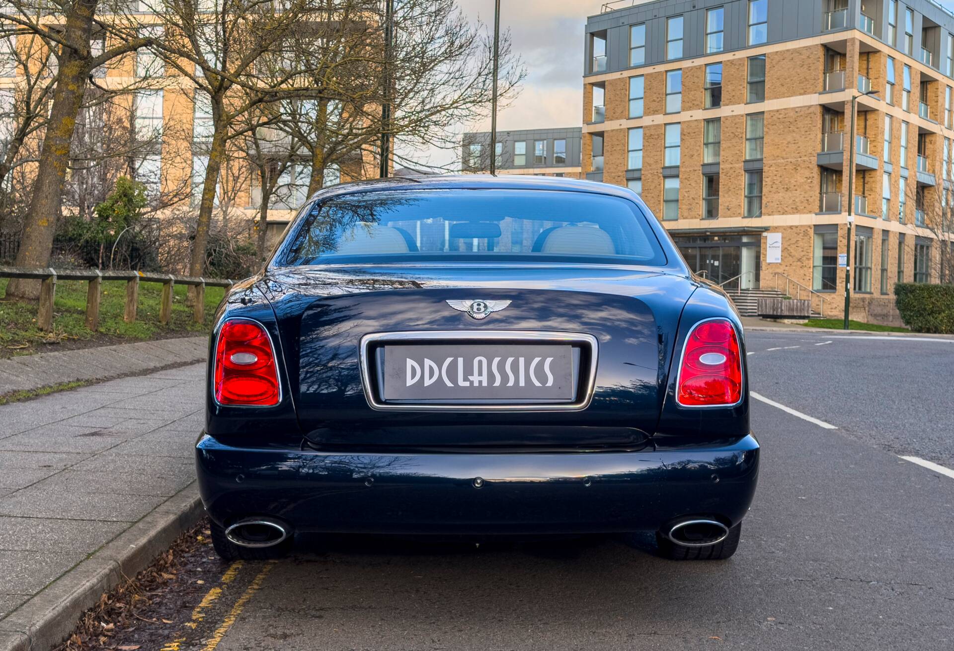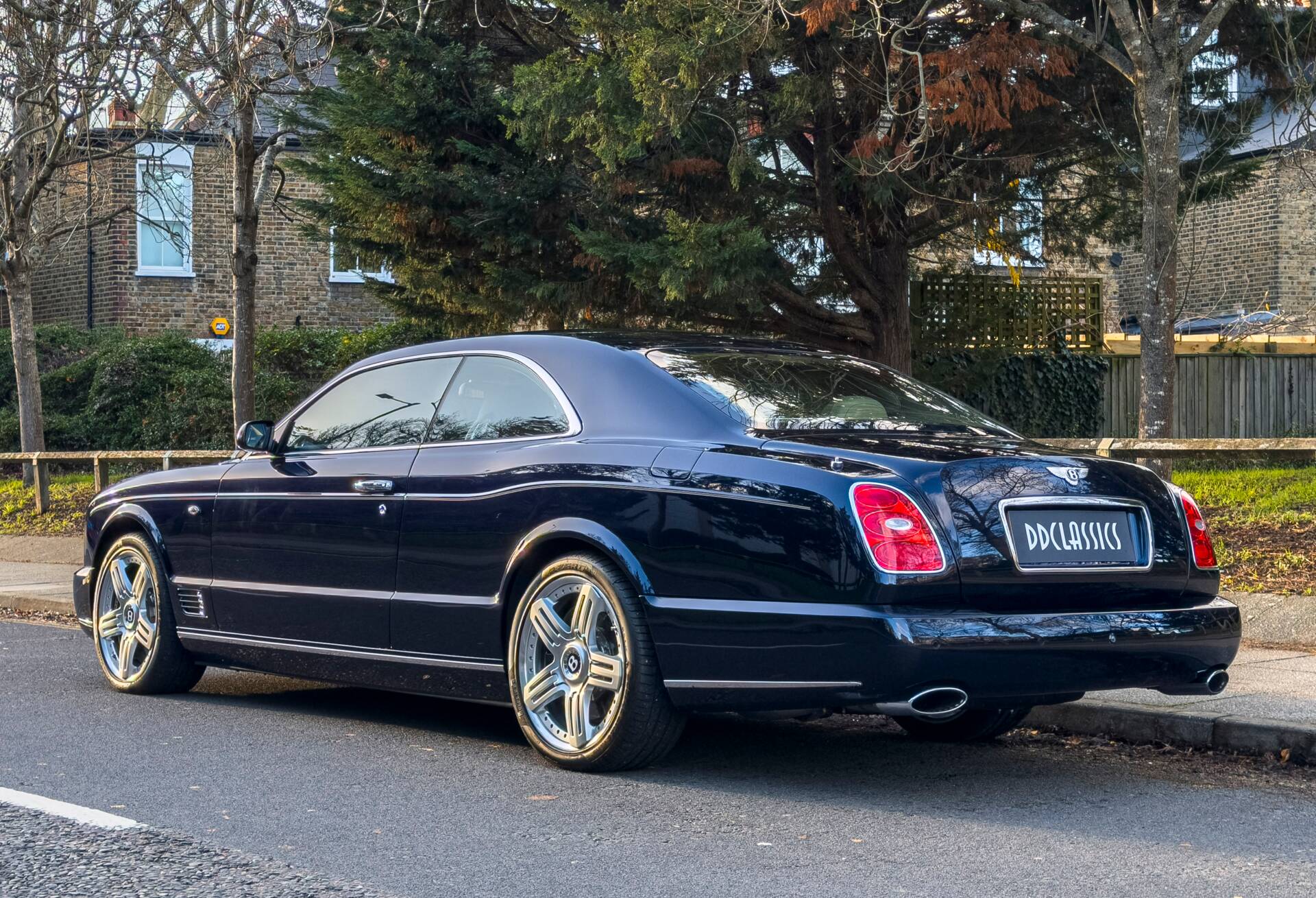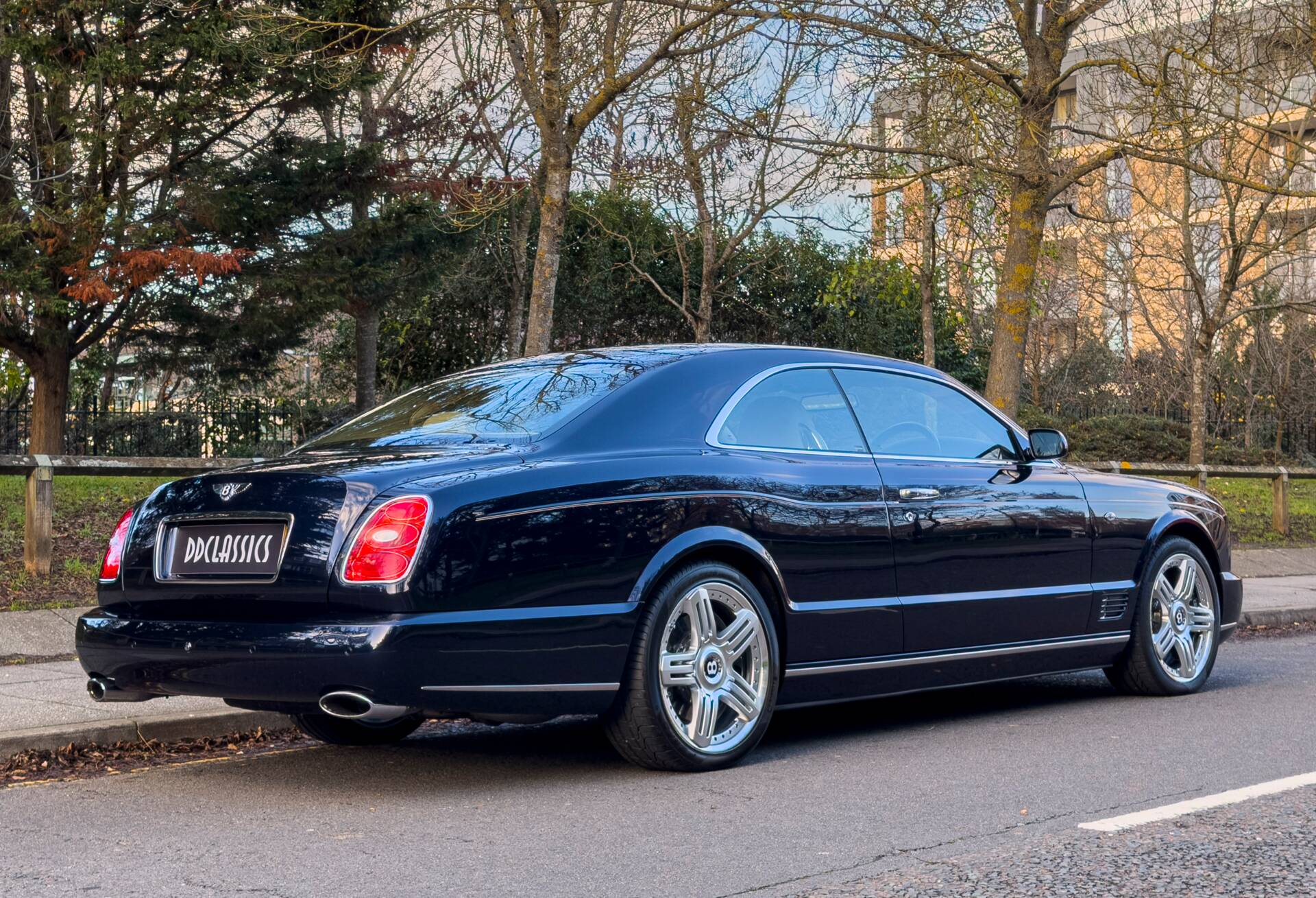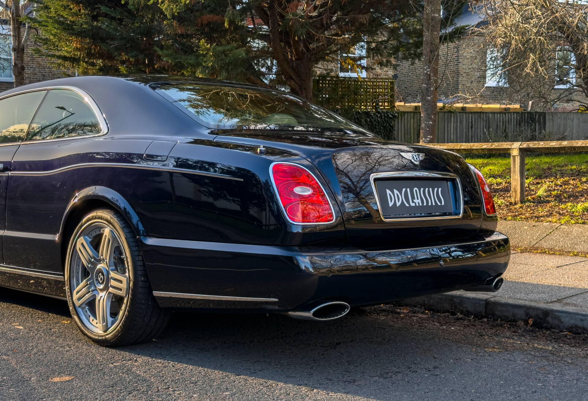 Finished in Special Order Metallic Black Sapphire, this Bentley features Cashew leather upholstery with diamond-quilted seat facings and matching door cards, each embroidered with Bentley Flying B emblems. The carpets and seat belts are colour-matched to the main hide, while the top roll is finished in two-tone leather with contrasting stitching. Dark-stained Burr Walnut veneers add a touch of understated elegance throughout the cabin.