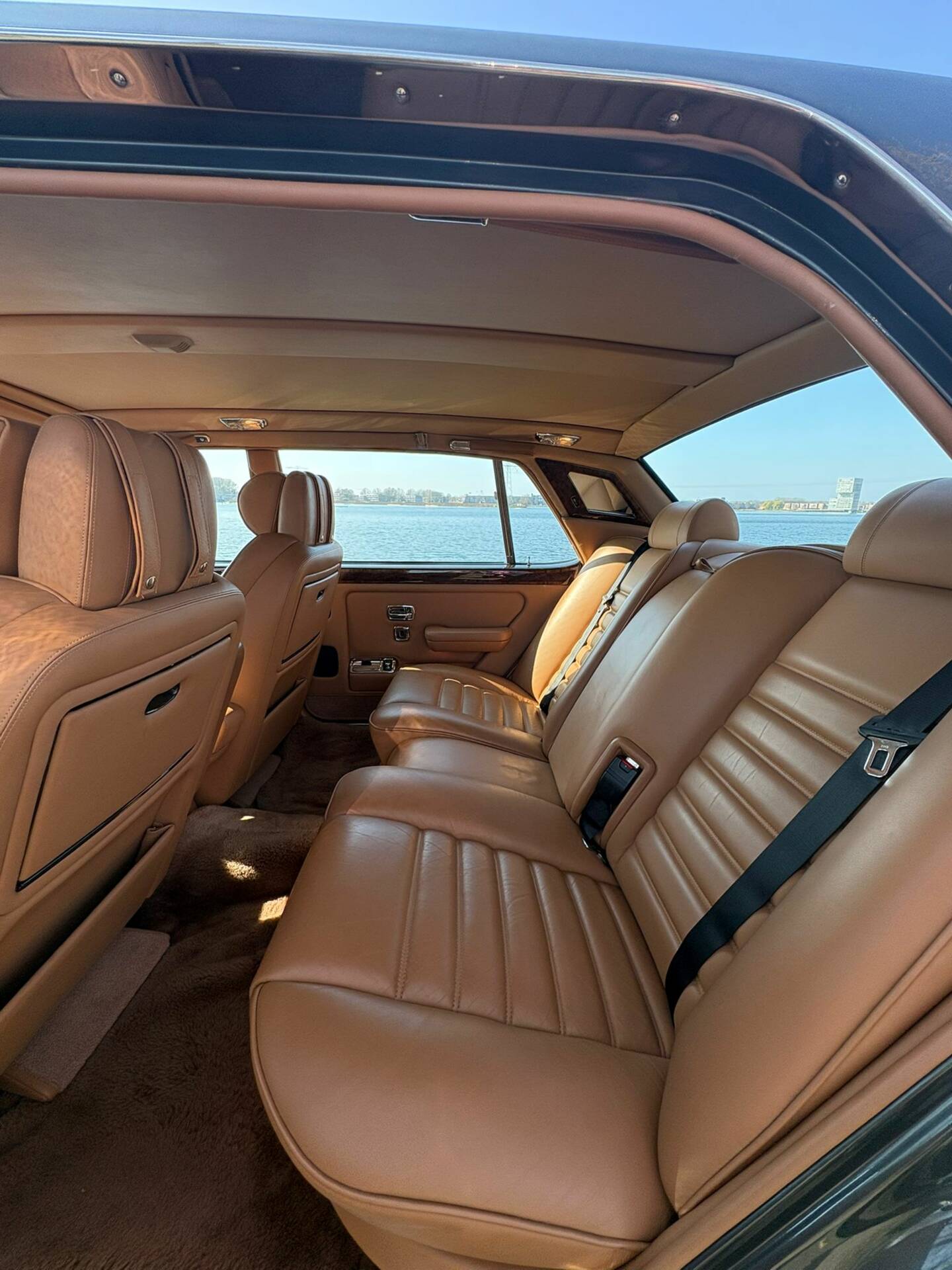 Every Bentley was built by hand in England at the time, using the finest materials. The interior is made entirely of leather with many real wood accents, including on the dashboard, door panels, and center console. It also features extra-thick floor mats. Because it is an RL, it has a longer wheelbase, which also ensures that rear passengers have more legroom.