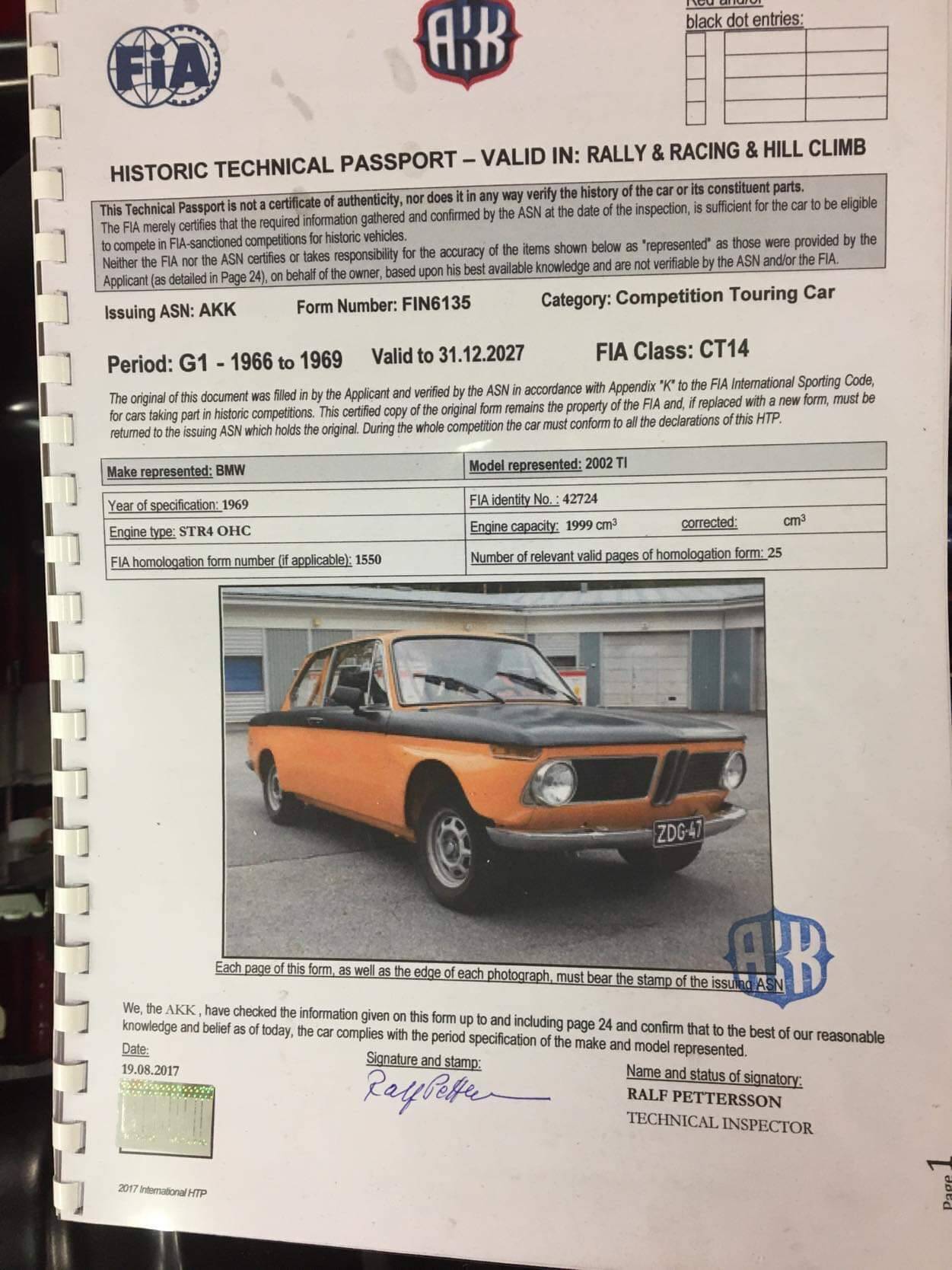 Zum Verkauf steht ein BMW 2002 im Rallye-Umbau, ursprünglich aus Finnland, nun mit deutschen Papieren und zahlreichen Eintragungen. Der Wagen verfügt über eine FIA-Zulassung und wird mit einem baugleichen Ersatzmotor angeboten.