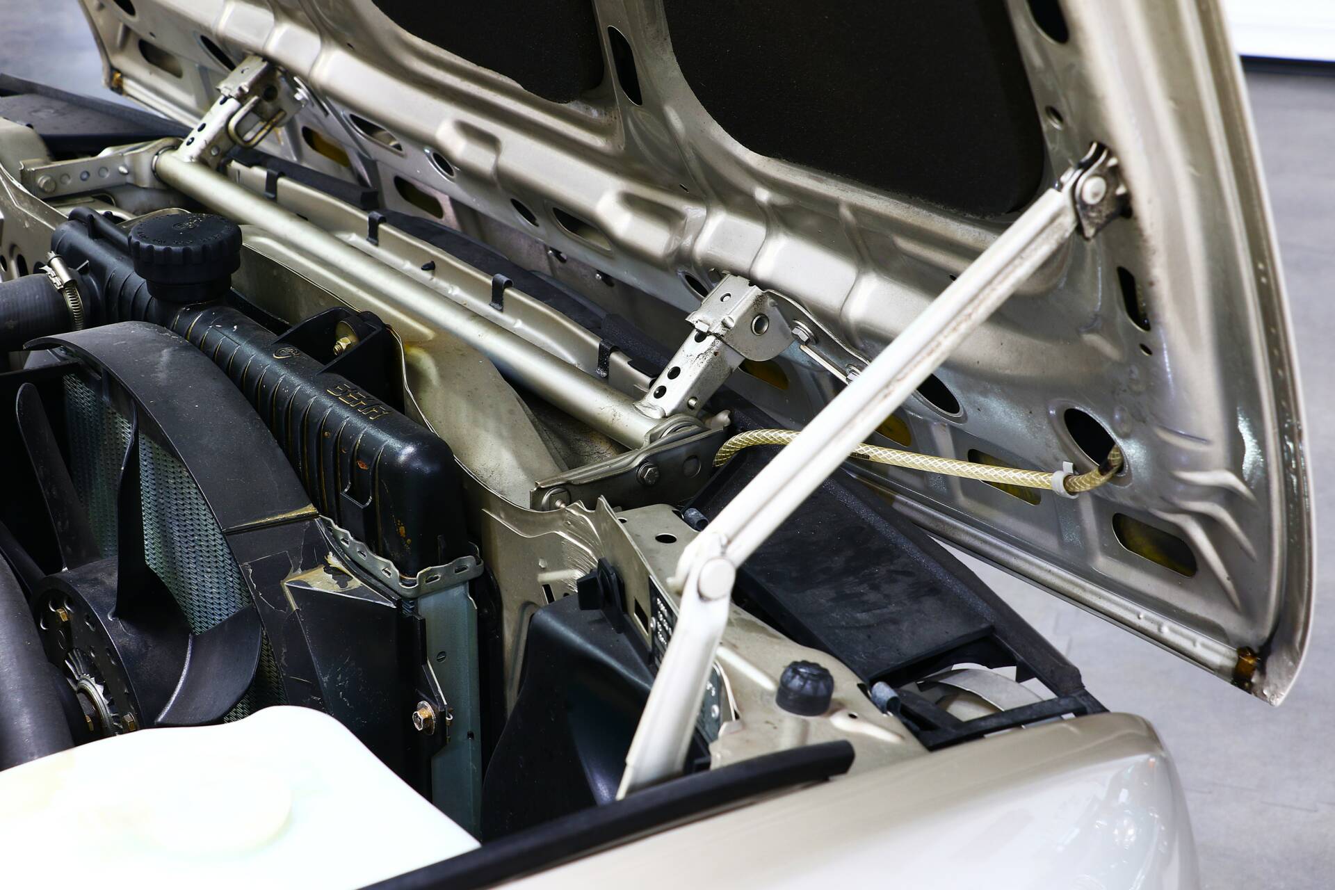 The BMW is visibly completely rust-free, the paintwork is in excellent condition, and the entire body is straight, with perfect surface transitions and panel gaps. The A- and B-pillars, door bottoms, the area around the trunk seal, the trunk and engine compartment, as well as all wheel arches, are clean and look like they belong to a nearly new car.